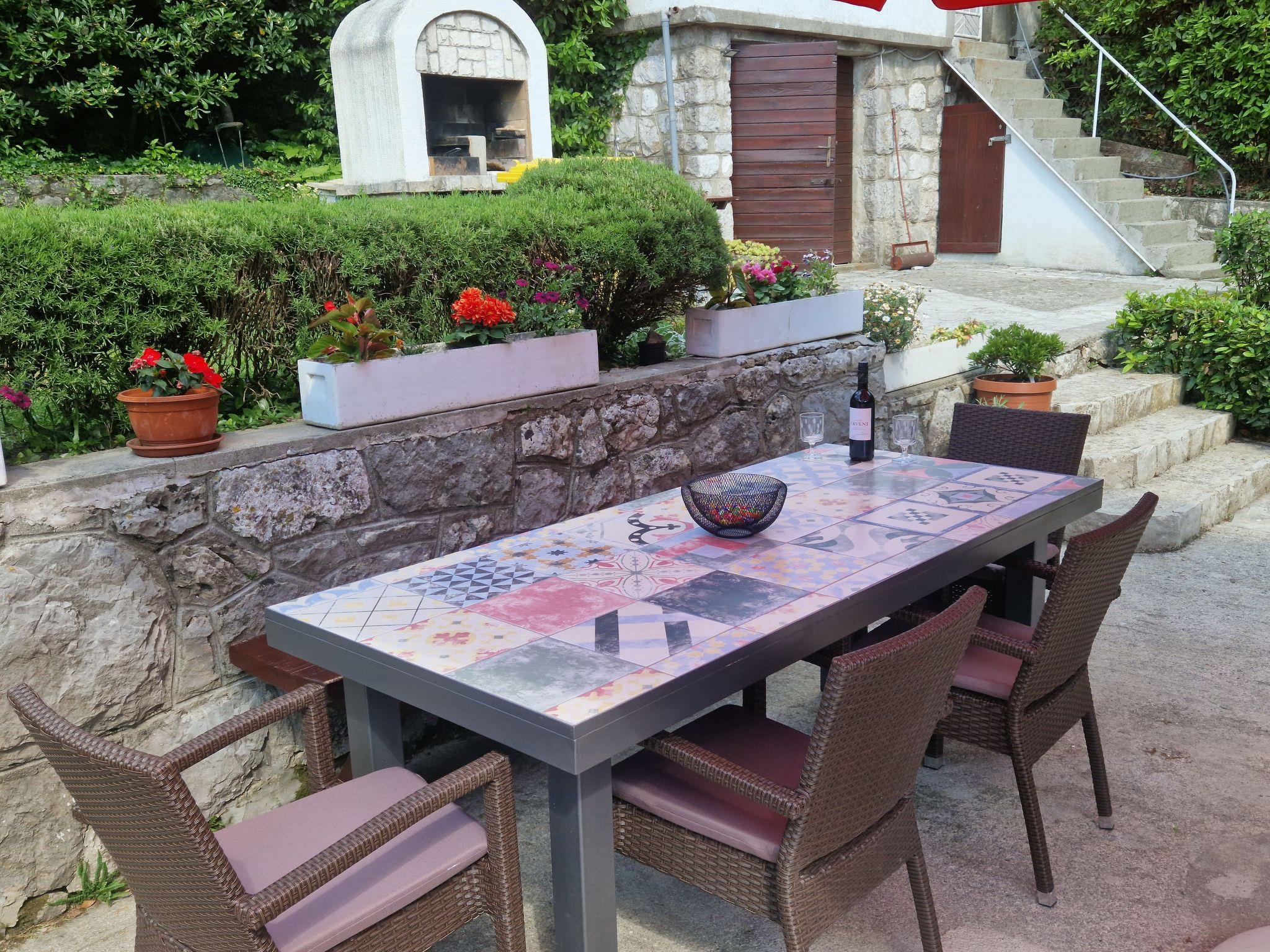 With outside stairs you'll arrive to the ground floor where is a kitchen with all necessary equipment. In front of the kitchen there is a big terrace with dining table and woden garden chairs all covered with a parasol. The shaded garden is ideal for barbecuing and socialising. You can enjoy in the outdoor shower. The owners usually come once in the week for watering gras and flowers. We also asked our guests to watering the flowers and lawns in their free time.