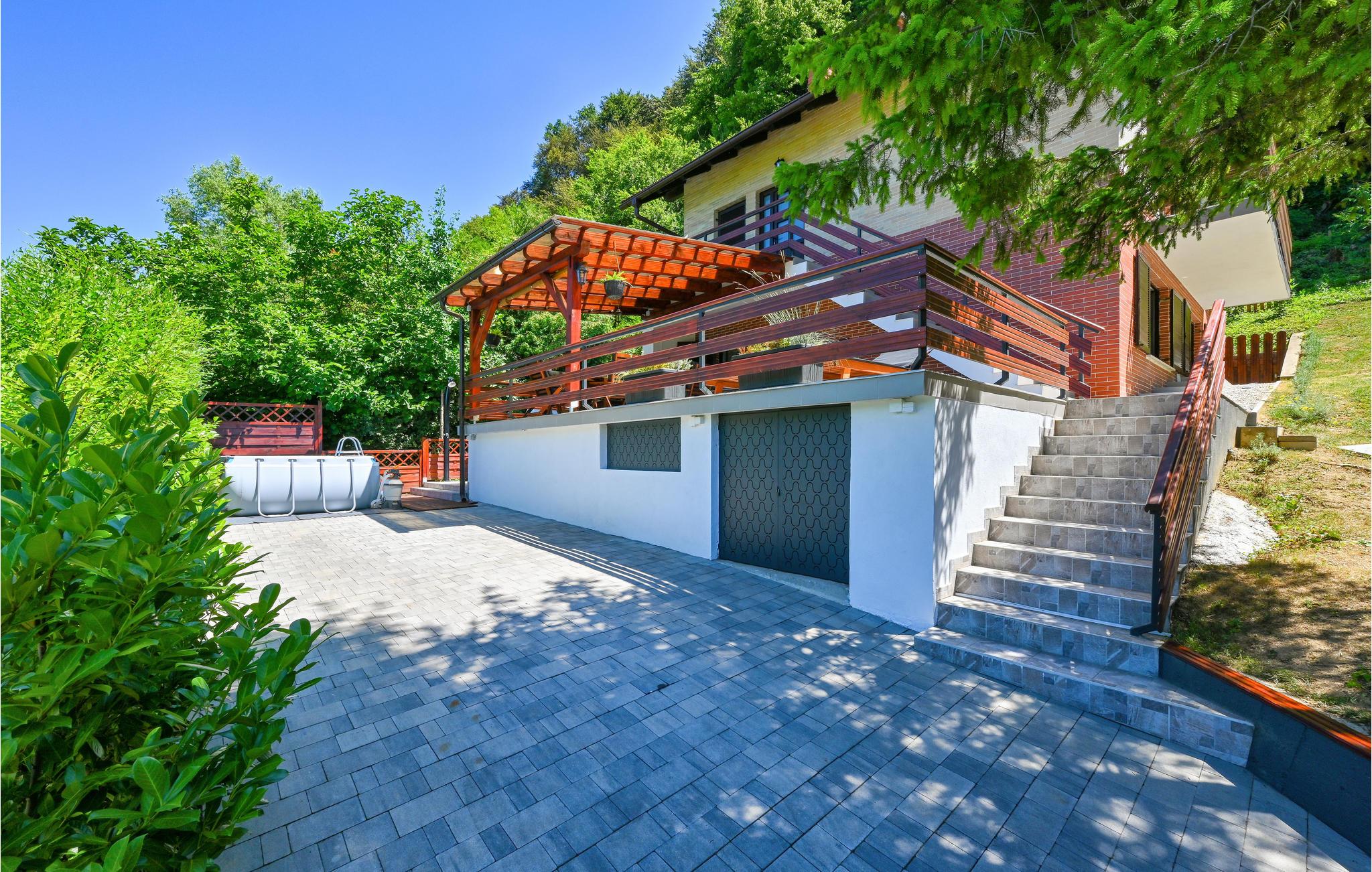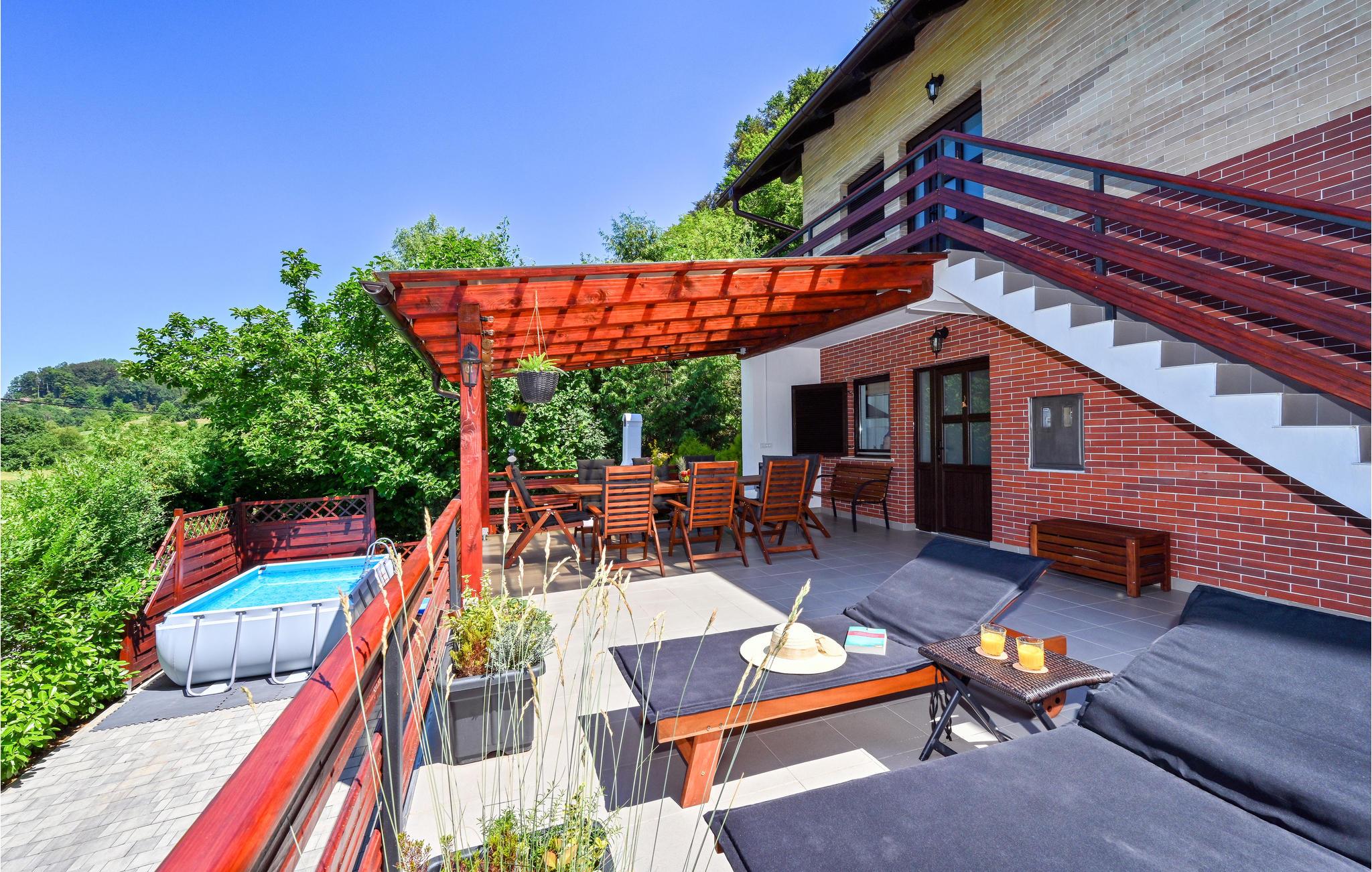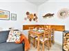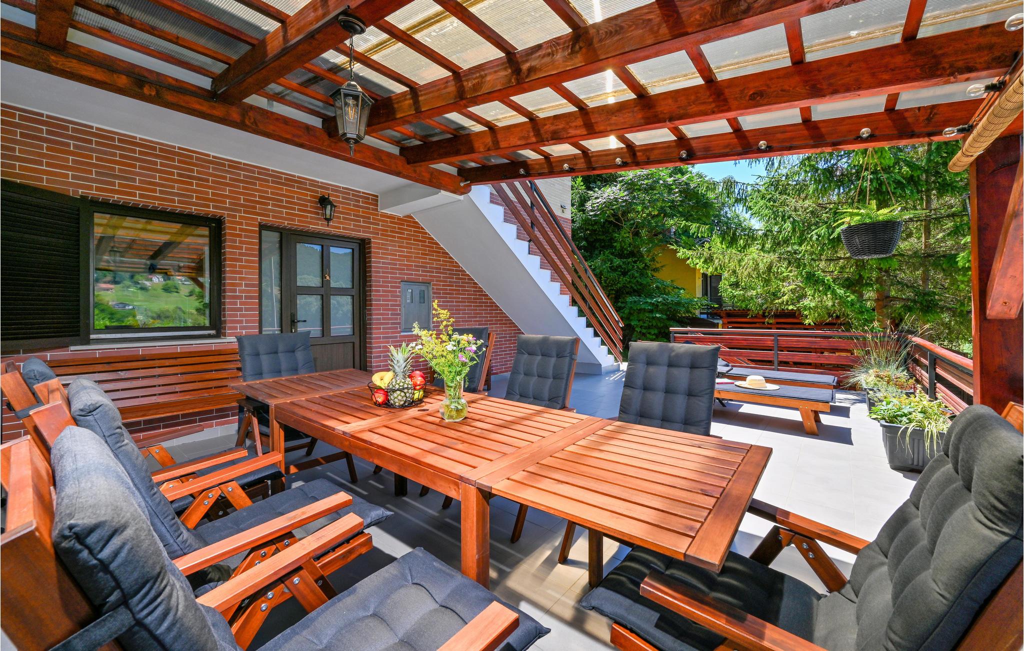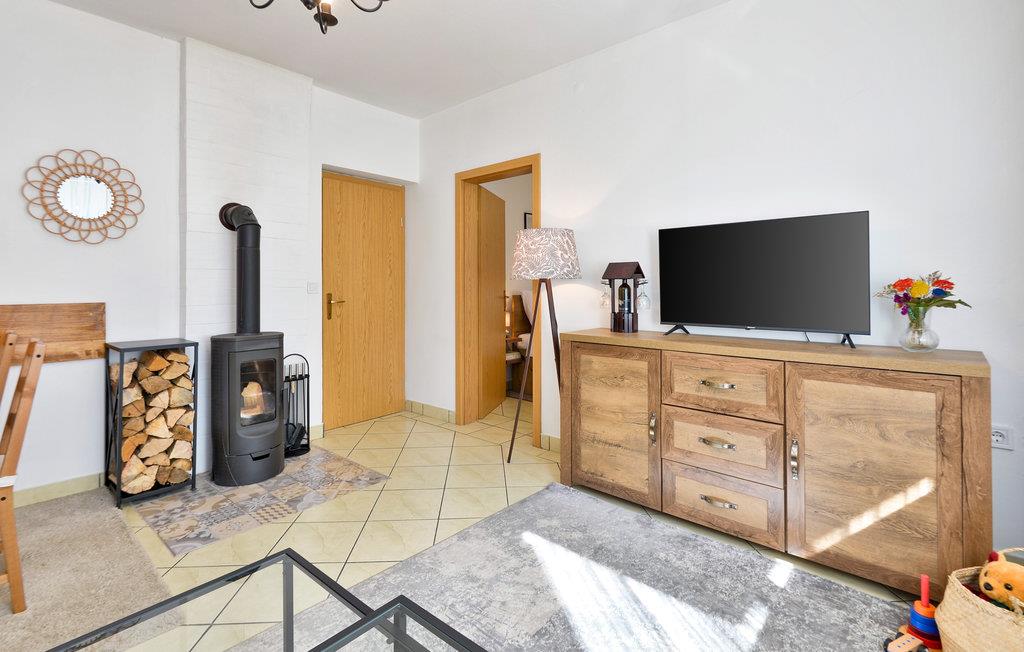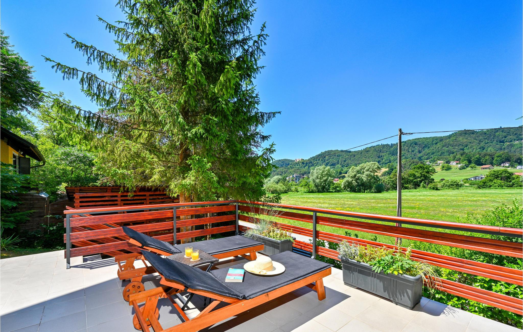 Hvis I søger fred og ro i smukke omgivelser, er I kommet til det rette sted. Dette feriehus er indrettet med to lejligheder, som er forbundet via en udvendig trappe. Huset er derfor optimalt til to familier, der holder ferie sammen. Find jer til rette i stuen og slap af foran brændeovnen. I kan også tage et spil bordfodbold eller konkurrere i aktivitetsrummet. Fra stuen er der udgang til den delvist overdækkede terrasse, hvor I kan sætte jer med en lækker morgenmad ved havebordet eller slappe af på liggestolene. Fra terrassen er der en vidunderlig udsigt til dalen.