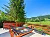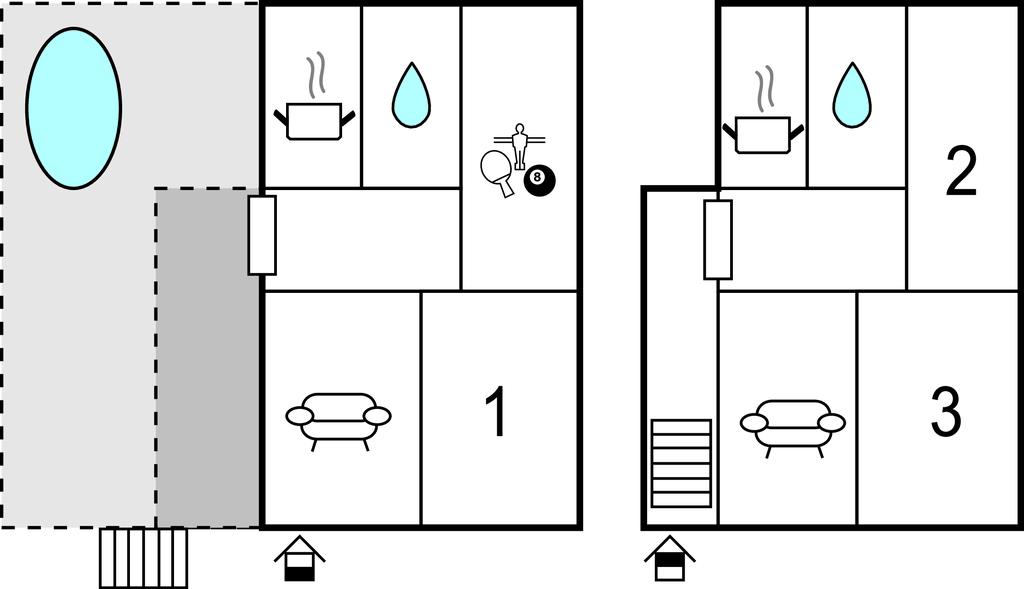 I den indhegnede have har I både adgang til swimmingpool og hyggelige solkroge. For de mindste er der et børnehjørne med bord og en rutsjebane.