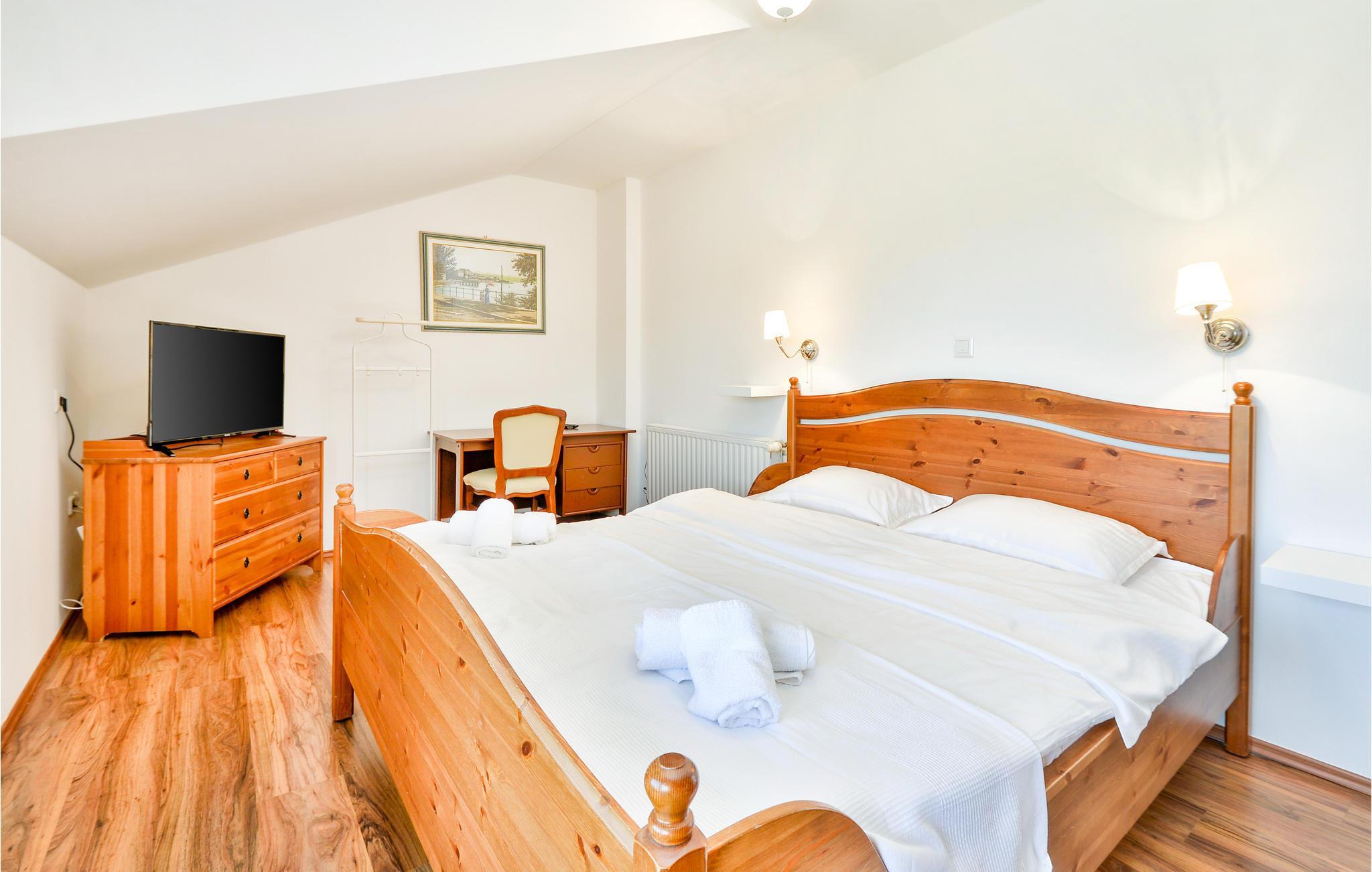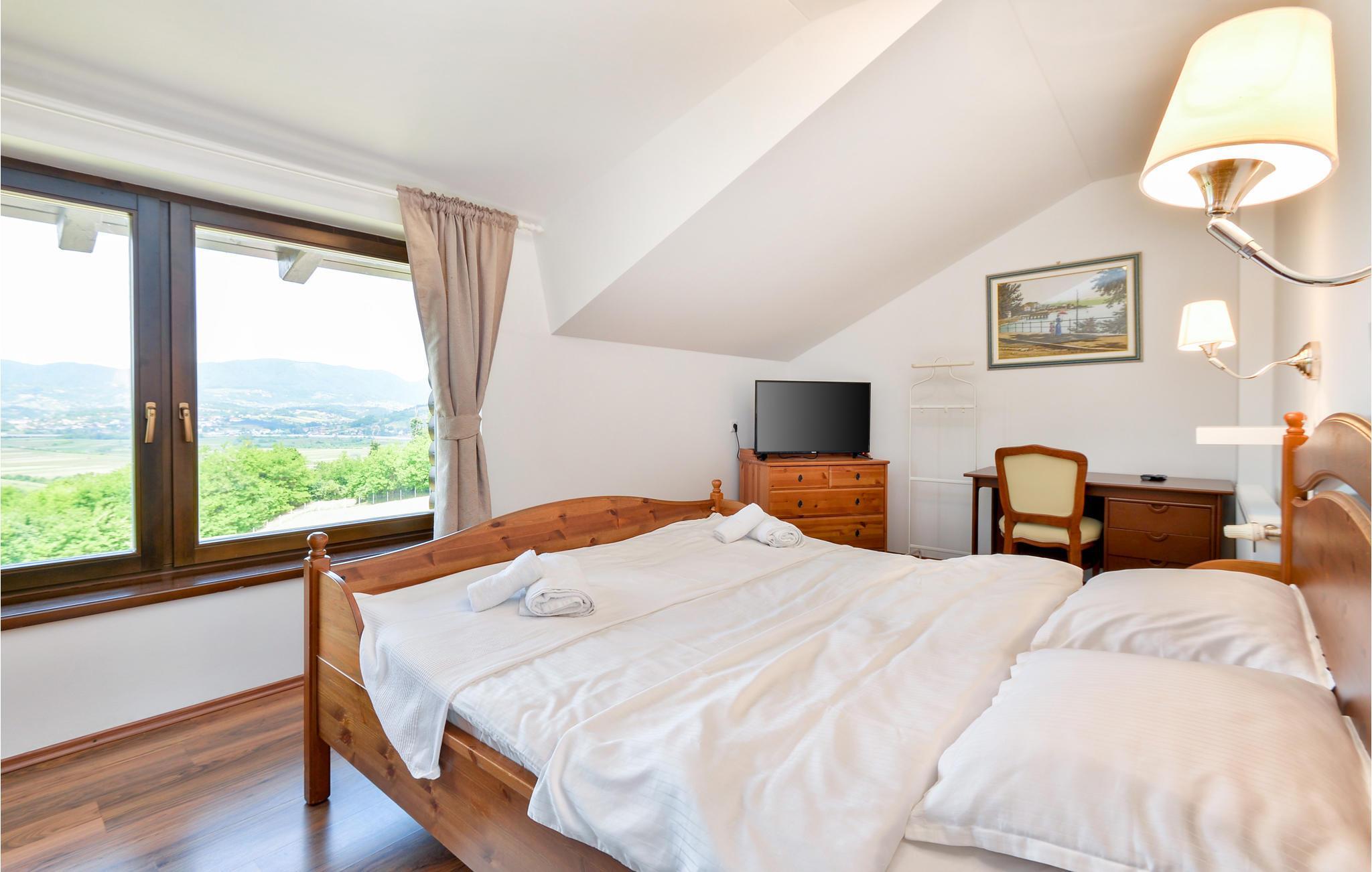 I finder denne topmoderne bjerghytte nær den slovenske grænse. Hytten nyder godt af en storslået panoramaudsigt over landskabet og kombinerer rustikke træ- og stenelementer med moderne bekvemmeligheder. Hyttens hjerte er den hyggelige opholdsstue med pejs og fjernsyn, der indbyder til mange gode stunder. I kan underholde jer med dart og bordfodbold i aktivitetsrummet.