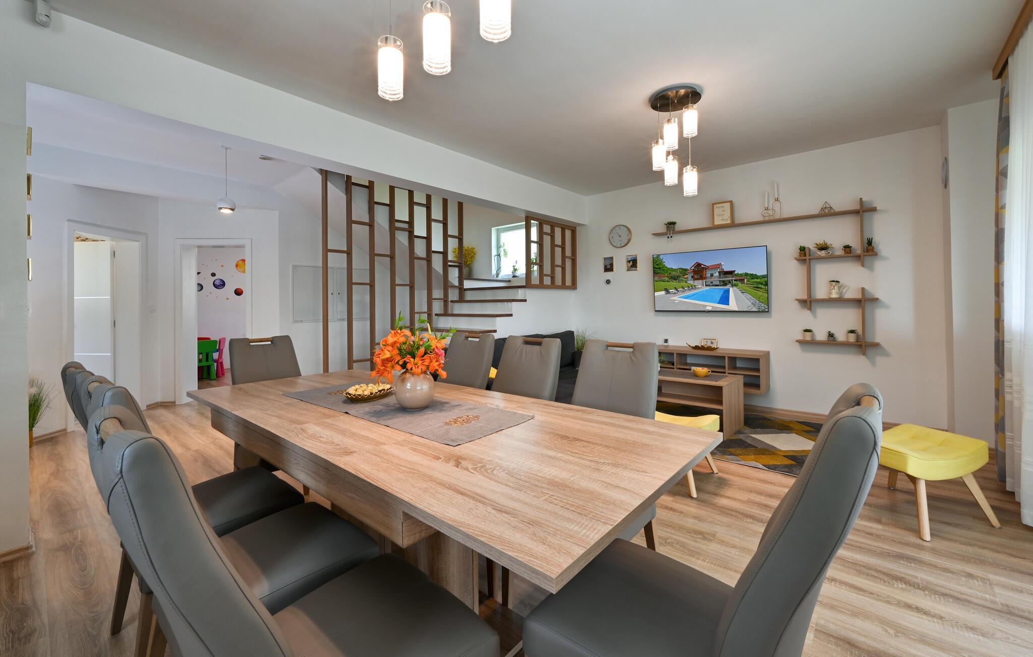 Dette feriehus er særligt familievenligt og derfor ideelt til en ferie med hele familien. Børnene vil elske legerummet, hvor de kan tilbringe mange timer. Huset er moderne og smukt designet og tilbyder en hyggelig atmosfære med smukke møbler. Hjertet i huset er stuen med sofagruppe og tv, hvor du kan samles efter en aktiv feriedag. Der er også 3 soveværelser og 2 badeværelser til rådighed. I det veludstyrede køkken kan feriekokken nemt tilberede måltider til alle gæster.
