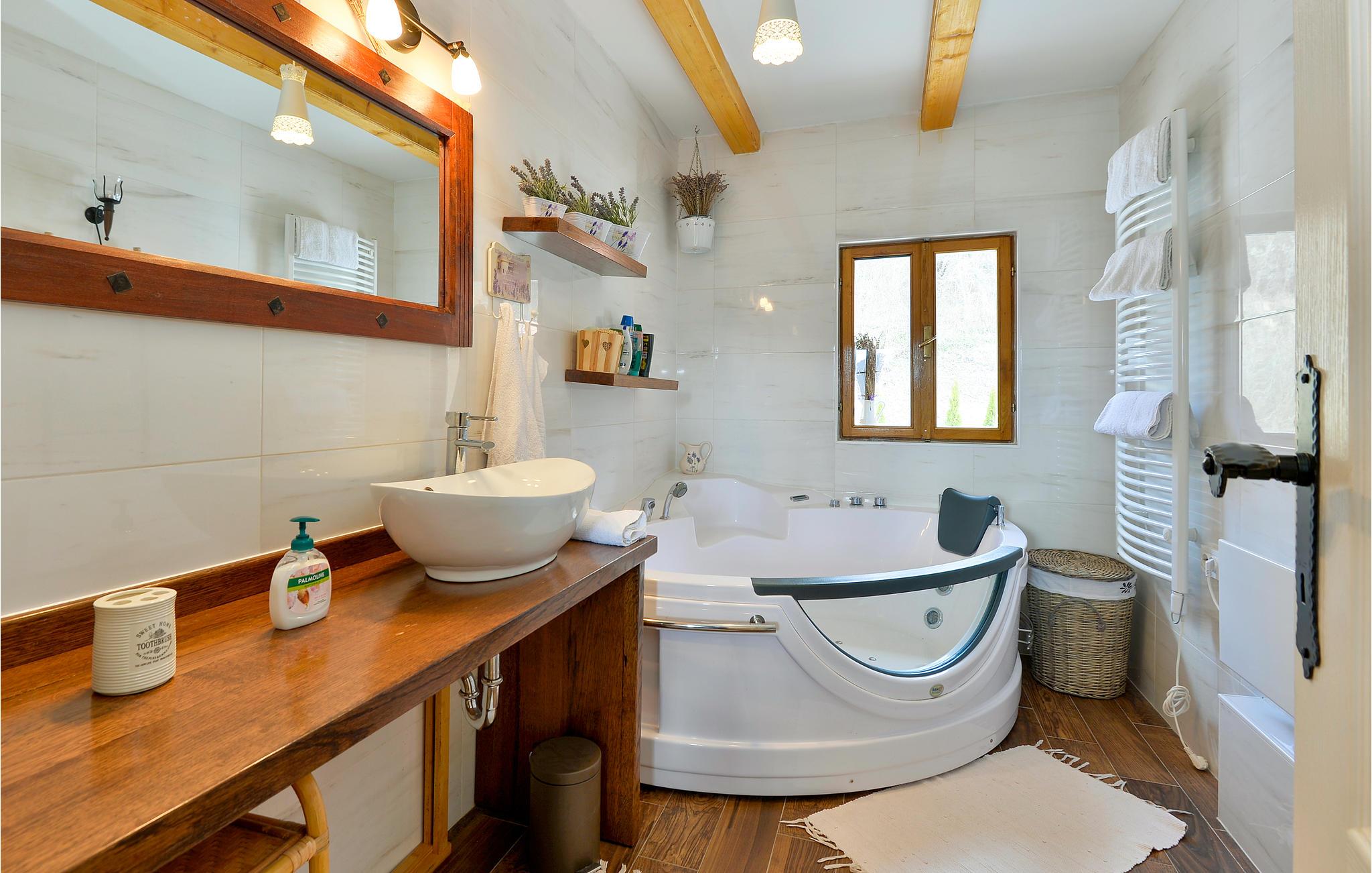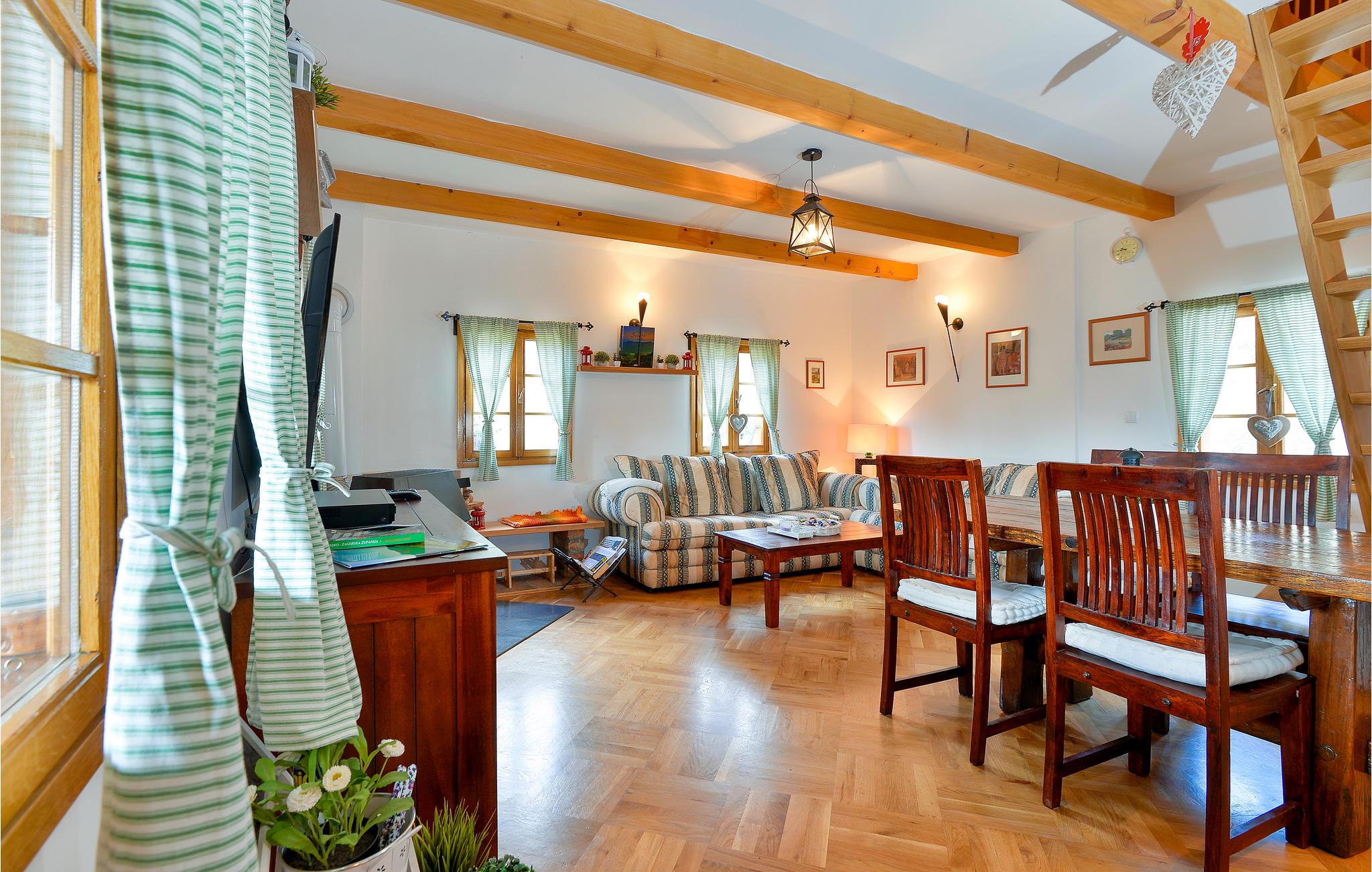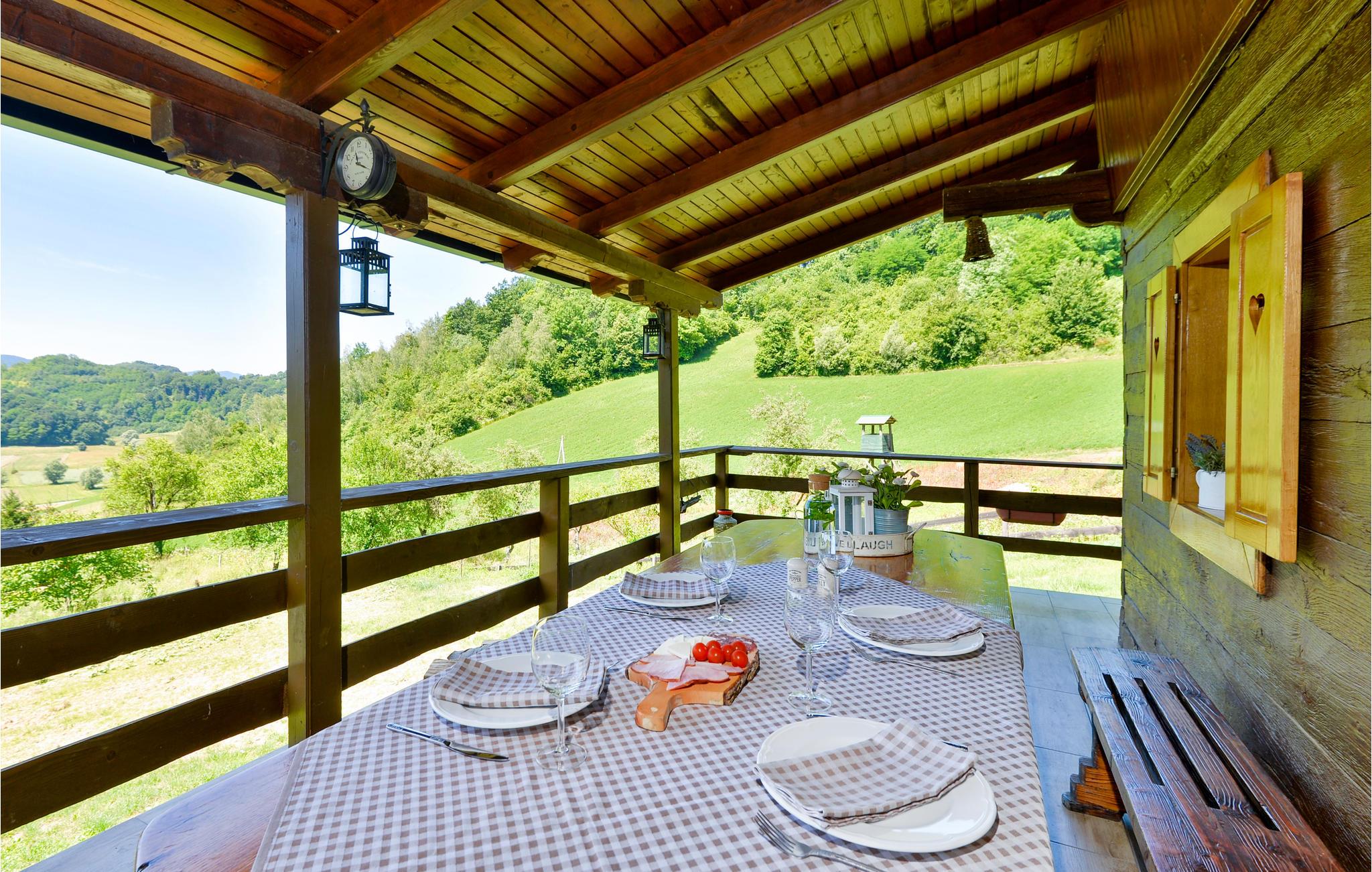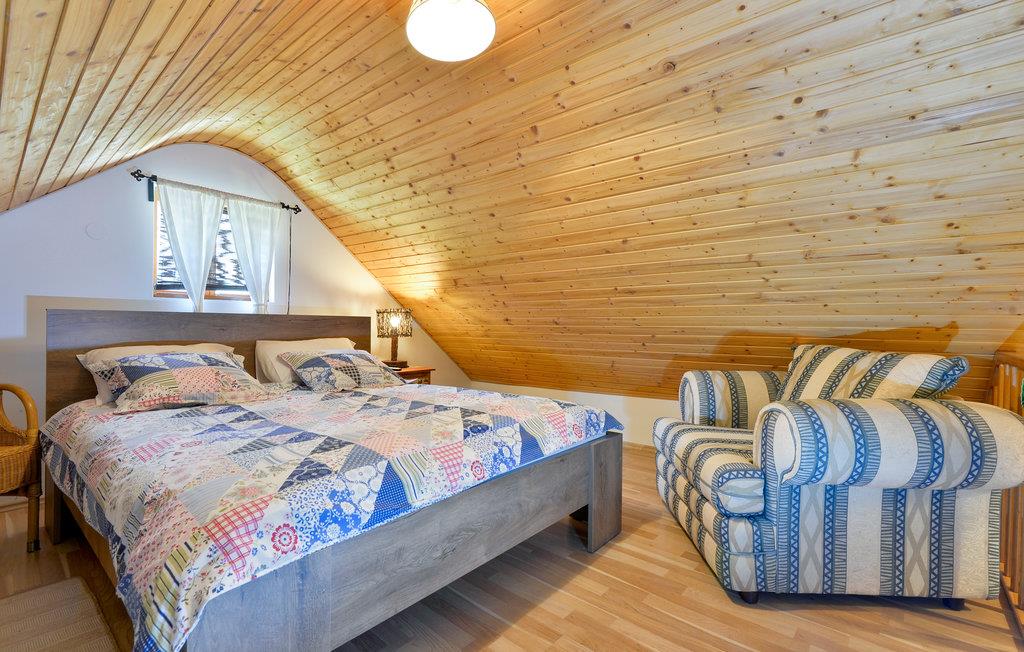 Foran ligger en overdækket terrasse, hvor I kan spise jeres mad med udsigt over det smukke landskab og Zagorje's bakker. I stueplan findes et åbent køkken med spiseplads og opholdsstue samt et badeværelse. På 1. sal ligger 2 soveværelser, hvor det ene er et gennemgangsværelse til det andet. Huset er meget velegnet til en børnefamilie.