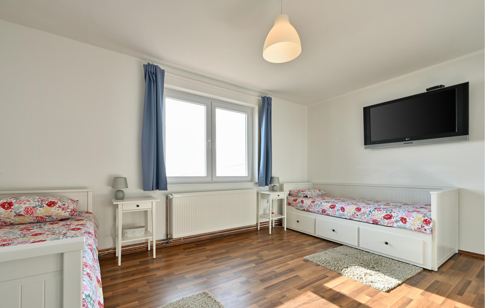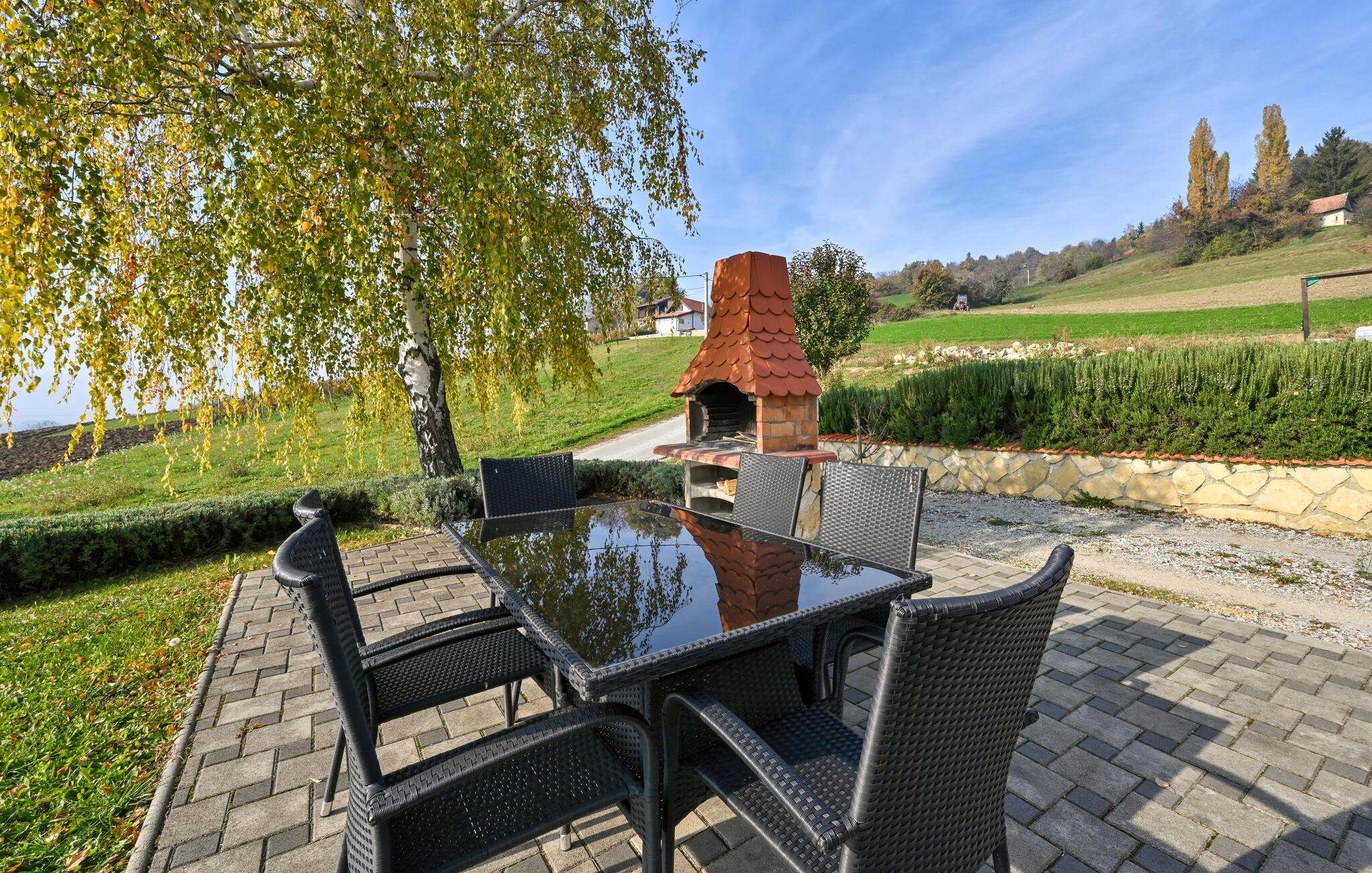 Oplev ro og afslapning i dette store feriehus omgivet af grønne bakker.