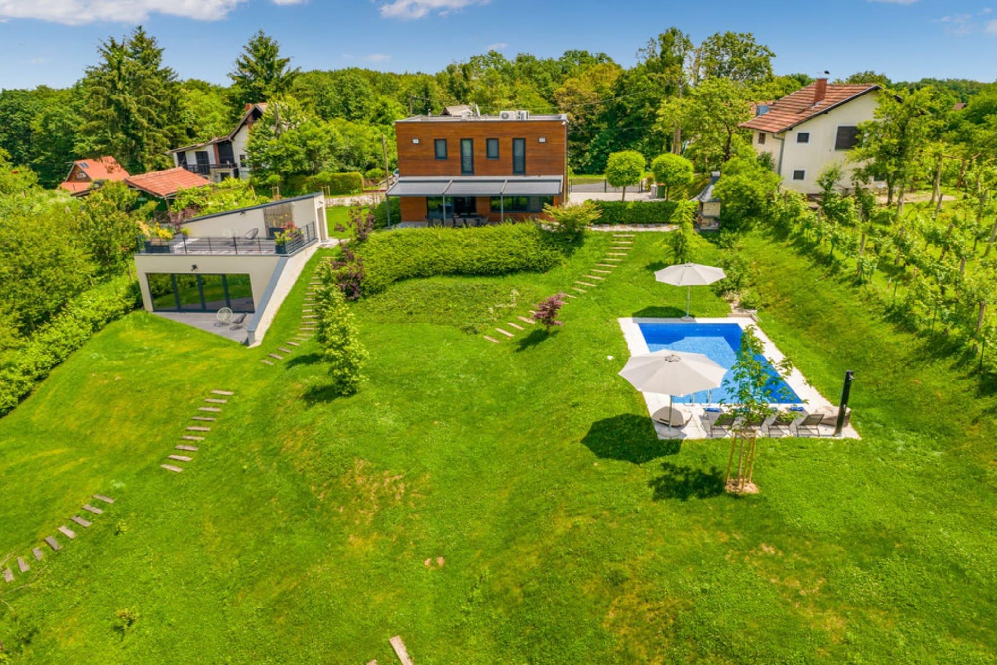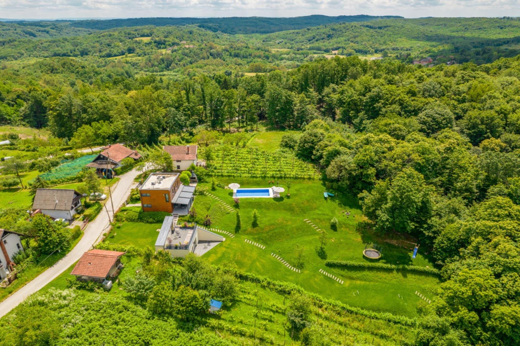 Holiday Home Arbaro, also known as Vila Arbaro, is located in Barbarici Kravarski near Kravarsko in the City of Zagreb, Croatia. The villa accommodates up to six guests across three bedrooms, making it suitable for families or small groups. Pets are welcome at no additional charge. It enforces non-smoking and no-party policies, ensuring a tranquil environment. Note: Private parking is available, reservation is not required. Wi-Fi is available throughout the property. Pets are allowed. Baby cot is available on request This three-bedroom can accommodate up to six guests. It features a Cable TV, Internet enabled TV, Flat screen TV and is combined with a living room and kitchen. The private bathroom is equipped with a shower and toilet. Thanks to its excellent location, everything you'll need for your vacation is just a short walk away from the property. cafes/Bar-500.00 m, restaurants—10.00 km. The airport is 20 km away from the property.