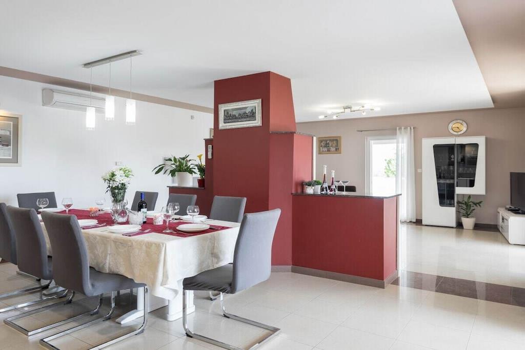 Feriehuset Delic er et rummeligt kompleks med et samlet areal på 400 m2. Gæsterne har adgang til fire soveværelser og en dobbelt sovesofa i stuen, hvilket gør det ideelt til større familier eller vennegrupper. Det har også fire charmerende badeværelser for at give gæsterne maksimal komfort og privatliv. Stueetagen består af et rummeligt køkken, spisestue og stue, der alle tilbyder masser af naturligt lys. Huset har et moderne interiør, en stor have med swimmingpool, grill og udendørs bord, hvor gæsterne kan nyde frisk tilberedte måltider med familie og venner.