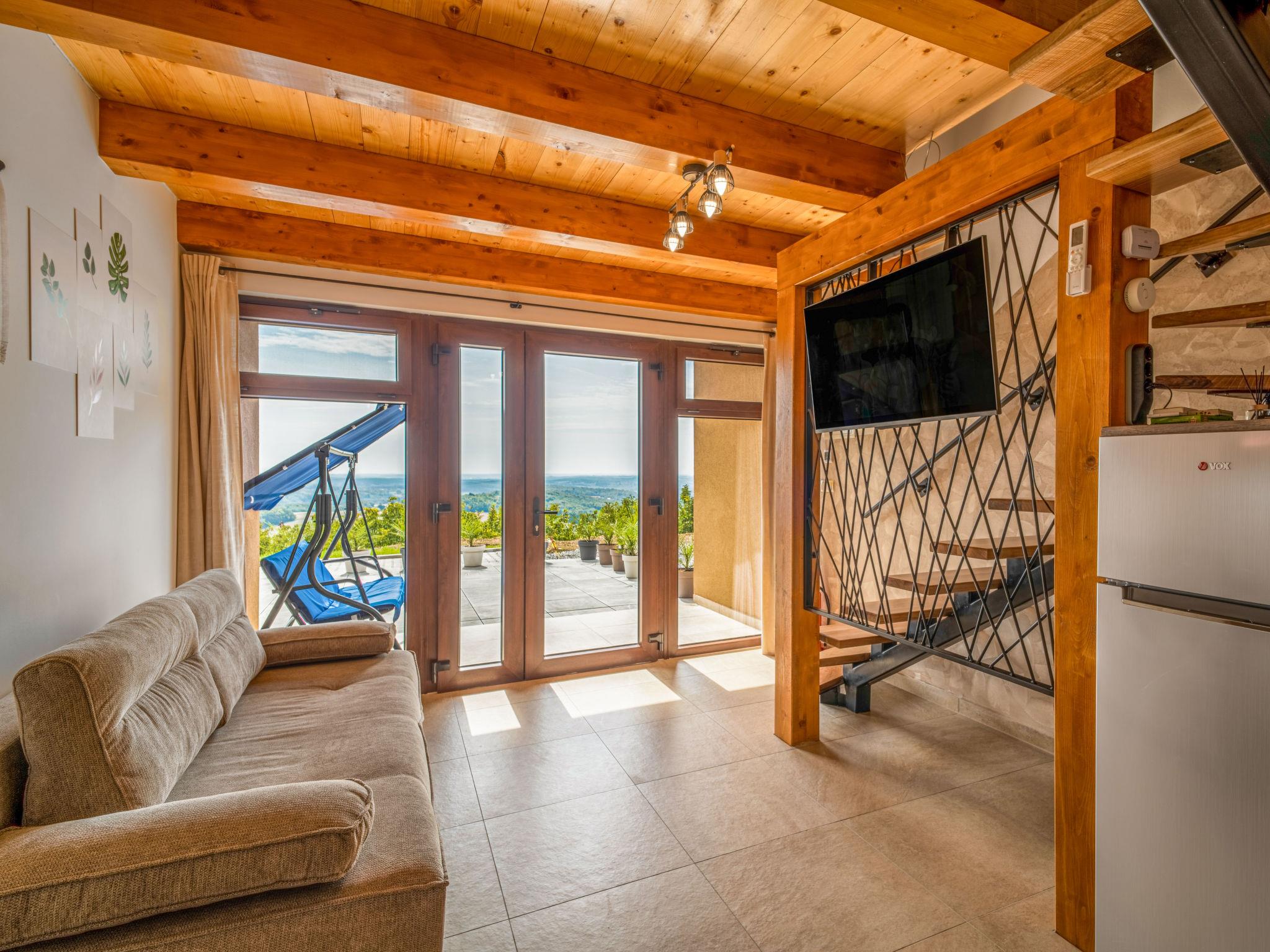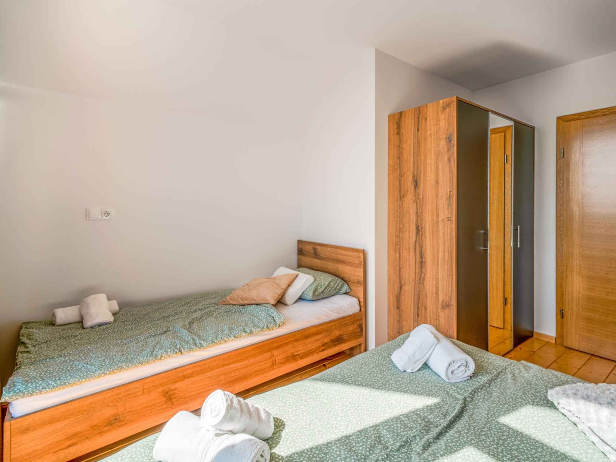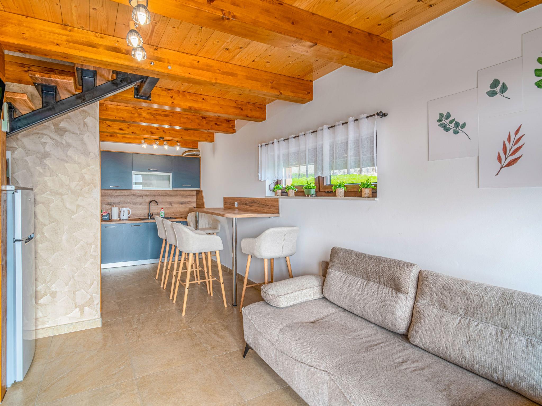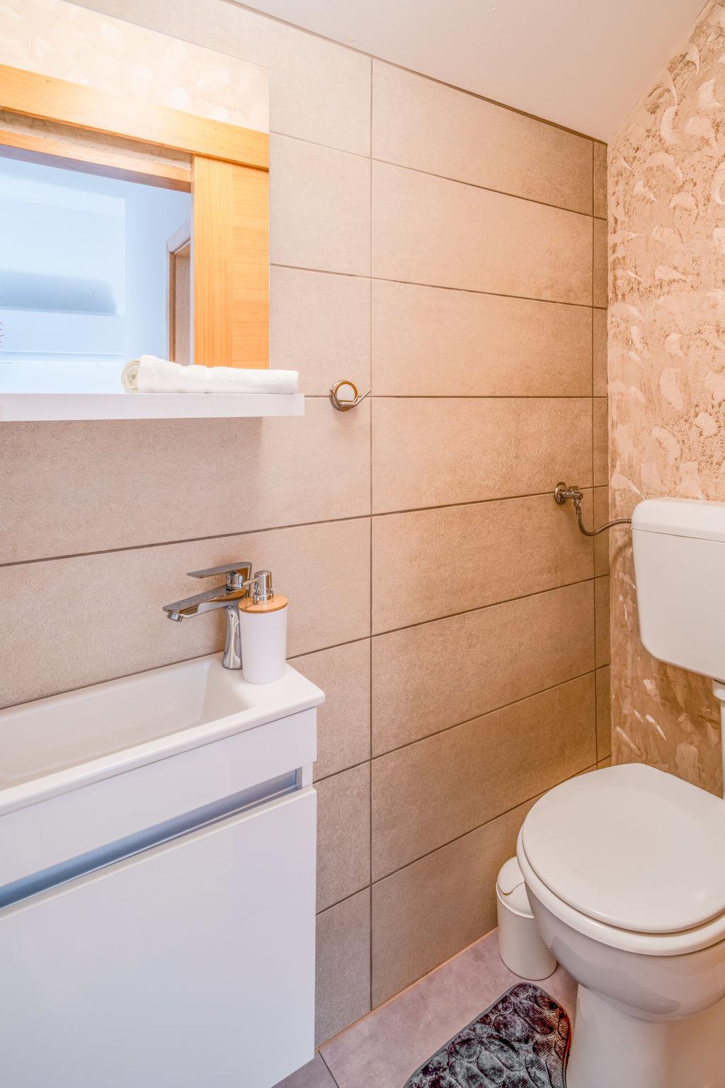 Kalnik 16 km from Križevci: Modern, cosy single-family house "Vila Breg 2", 2 storeys. 42 km from the centre of Varaždin, 69 km from the centre of Zagreb, on a slope. For shared use: property 5'000 m2 with lawn 1'000 m2, trees, swimming pool angular heated (8 x 4 m, depth 145 cm, seasonal availability: 15.Apr. - 14.Oct.) with salt water, internal staircase and salt-electrolysis pool-cleaning system. Shower/WC in the pool area, outdoor shower, hot tub, table tennis, terrace (20 m2), garden furniture, barbecue house, children's playground (slide, swing), pool maintenance by the owner/gardener. In the complex: internet access, sauna, table football. Steep motor access to the house (100 m via unmade road). Parking (for 2 cars) at the house on the premises. Shop 2.5 km, restaurant 3.5 km, café 2.7 km, bicycle rental 3.3 km, bus stop 1 km. Walking paths from the house 50 m. Nearby attractions: Old town Veliki Kalnik 3.6 km, Varaždinske toplice 33 km. Please note: Property ref. HR1740.700.1 is situated on the same property.