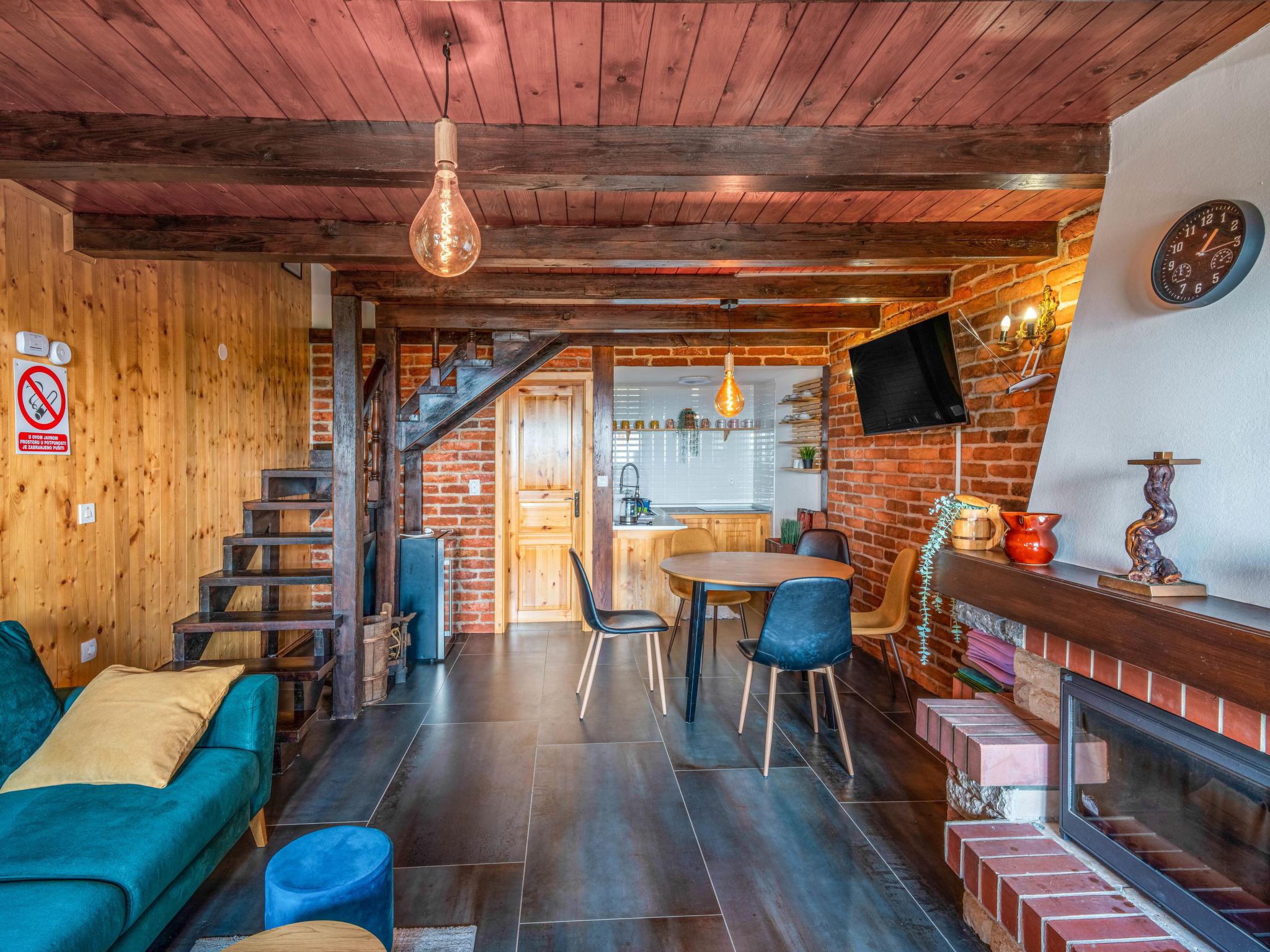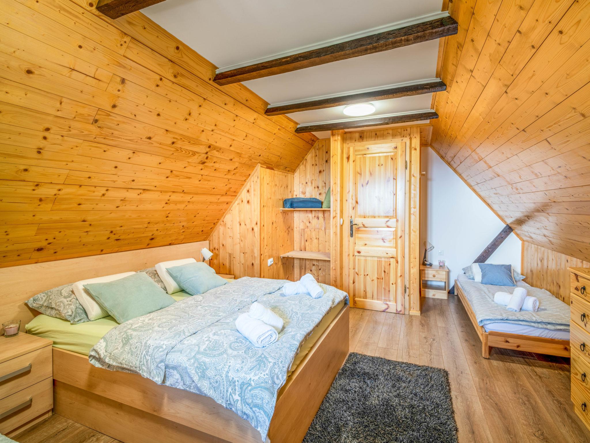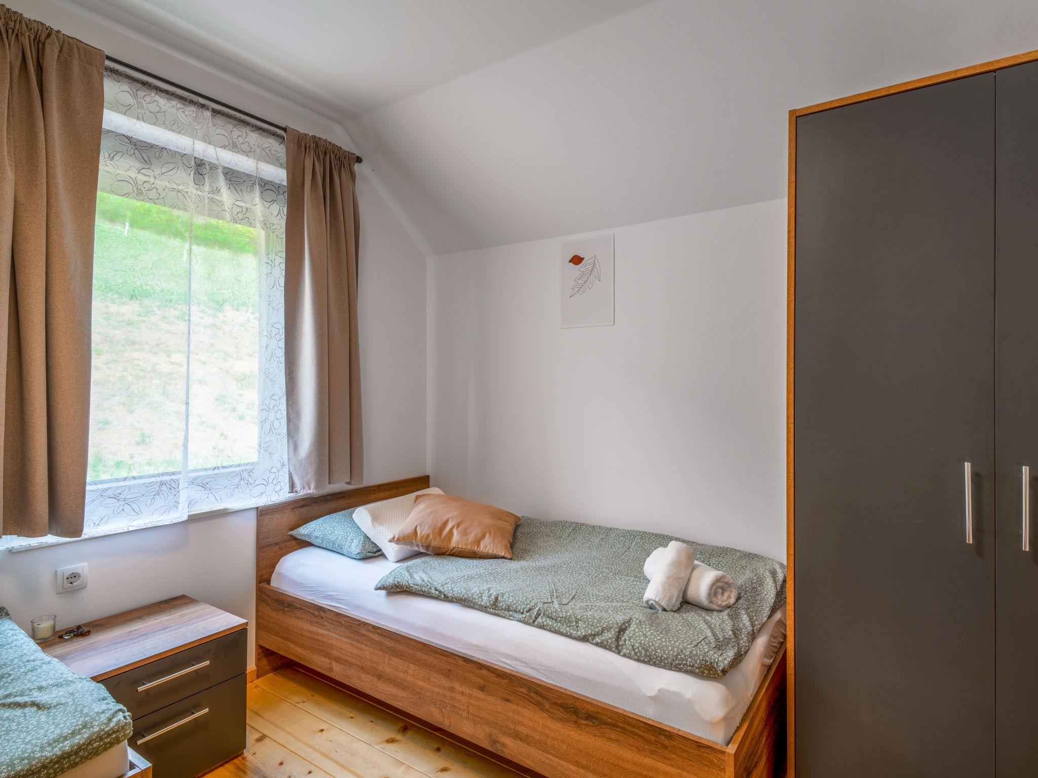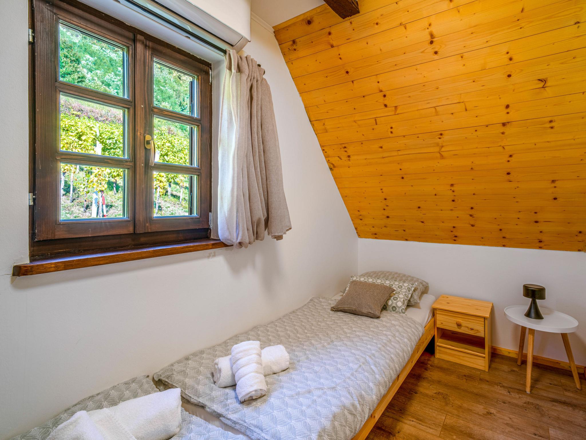 Kalnik 16 km from Križevci: Cosy, rustic single-family house "Vila Breg", 3 storeys. 42 km from the centre of Varaždin, 69 km from the centre of Zagreb, on a slope. Private: property 5'000 m2 with lawn 1'000 m2 trees, swimming pool angular, heated (8 x 4 m, depth 145 cm, seasonal availability: 15.Apr. - 14.Oct.) with salt water, internal staircase and salt-electrolysis pool-cleaning system. Shower/WC in the pool area, outdoor shower, hot tub, table tennis, terrace (20 m2), garden furniture, barbecue house, children's playground (slide, swing), pool maintenance by the owner/gardener. In the complex: internet access, sauna, table football. Steep motor access to the house (100 m via unmade road). Parking (for 4 cars) at the house on the premises. Shop 2.5 km, restaurant 3.5 km, café 2.7 km, bicycle rental 3.3 km, bus stop 1 km. Walking paths from the house 50 m. Nearby attractions: Old town Veliki Kalnik 3.6 km, Varaždinske toplice 33 km. Groups of teenagers on request only. The unit consists of 2 houses rented as one unit.