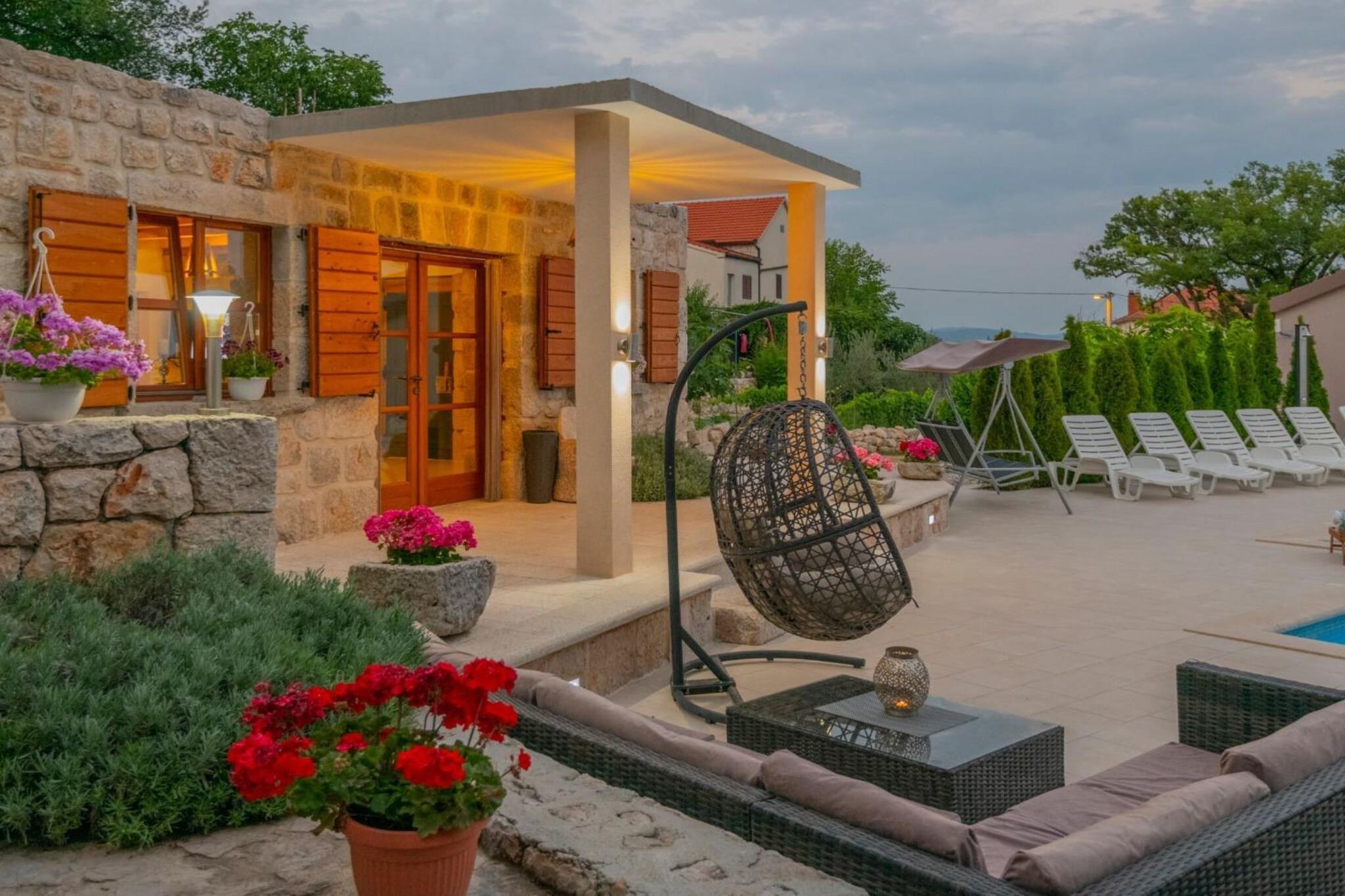Villa Mia 2 in Krividol, Split-Dalmatia County, Croatia, offers modern accommodations with amenities like free Wi-Fi, air conditioning, a fully equipped kitchen, and private parking. It features a private pool, garden, and terrace with scenic views. Located in a serene area, it provides easy access to nearby beaches, historic sites in Split and Trogir, and outdoor activities like hiking and cycling. Ideal for families, couples, and groups seeking a peaceful retreat. Note: Private parking is available, reservation is not required. Baggage drop-off is available before check-in. Wi-Fi is available throughout the property. Pets are not allowed. Baby cot is available on request. This six-bedroom villa can accommodate up to twelve guests. It features an SAT/flat-screen TV, Billiards, and Table tennis, and is combined with a living room seating area, sofa, and kitchen. The private bathroom is equipped with a shower and toilet. Free toiletries are available on request. Thanks to its excellent location, everything you'll need for your vacation is just a short walk away from the property. Grocery stores, cafes, restaurants—everything is within a 10.00 km radius. The beach is 18.00 km away from the property. The airport is 95 km away from the property.