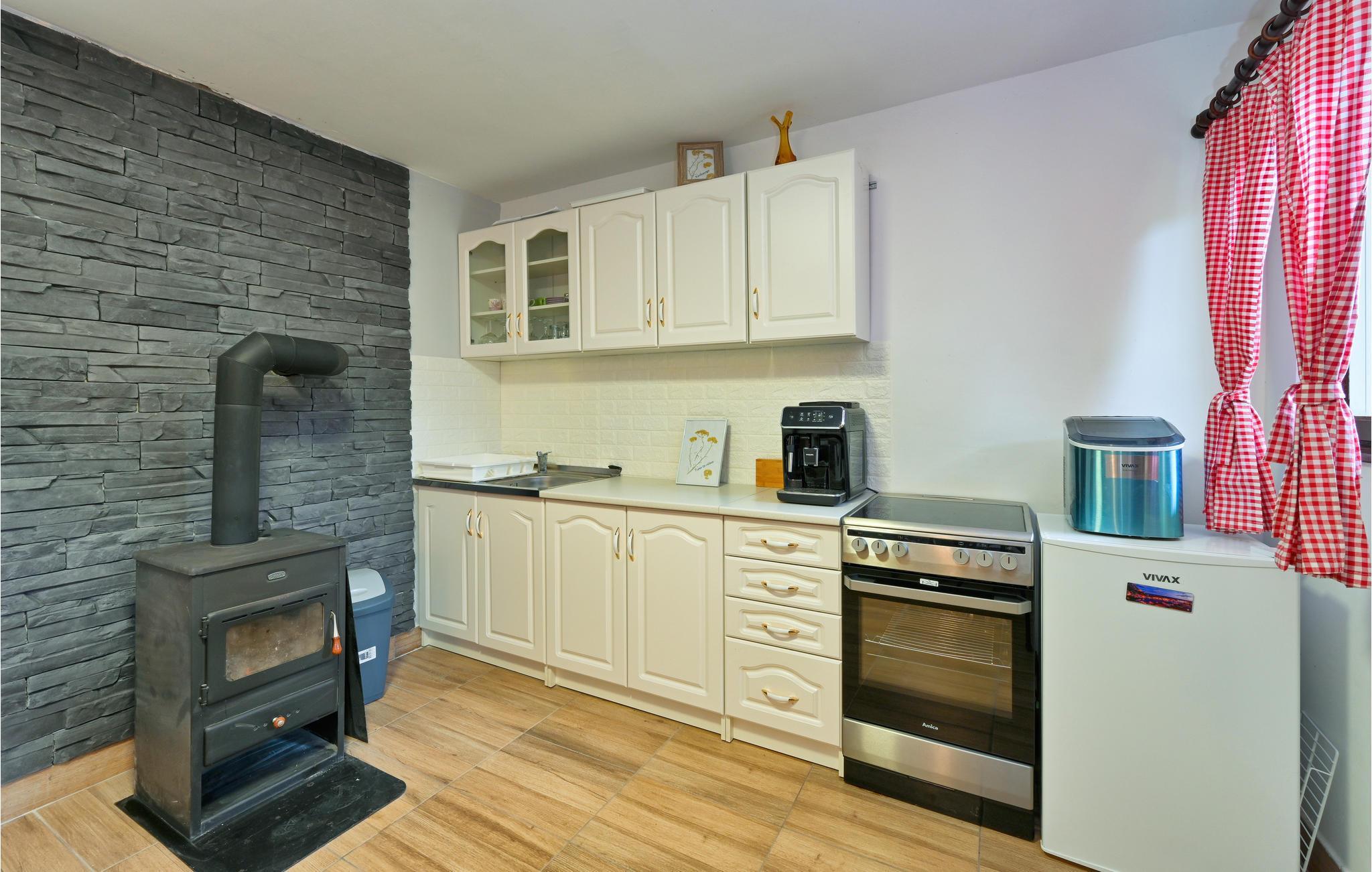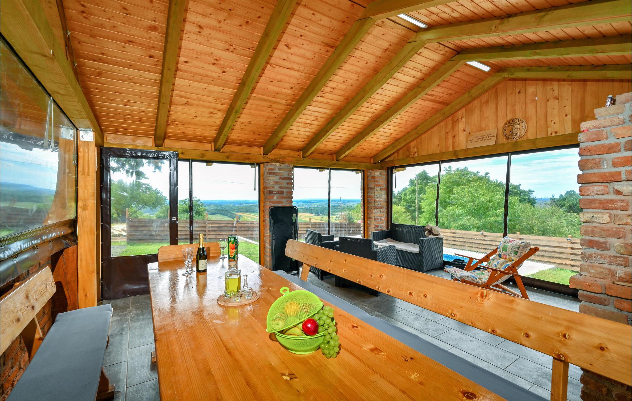 Glæd jer til jeres praktiske sommerhus med mange faciliteter. Fra soveværelsets altan har I en vidunderlig udsigt over det grønne omkringliggende landskab. Den store stue byder på en hyggelig oplevelse med udsigt, selv på køligere dage, med åben pejs. På varme dage kan I slappe af i swimmingpoolen med liggestole og komme helt ned i gear.