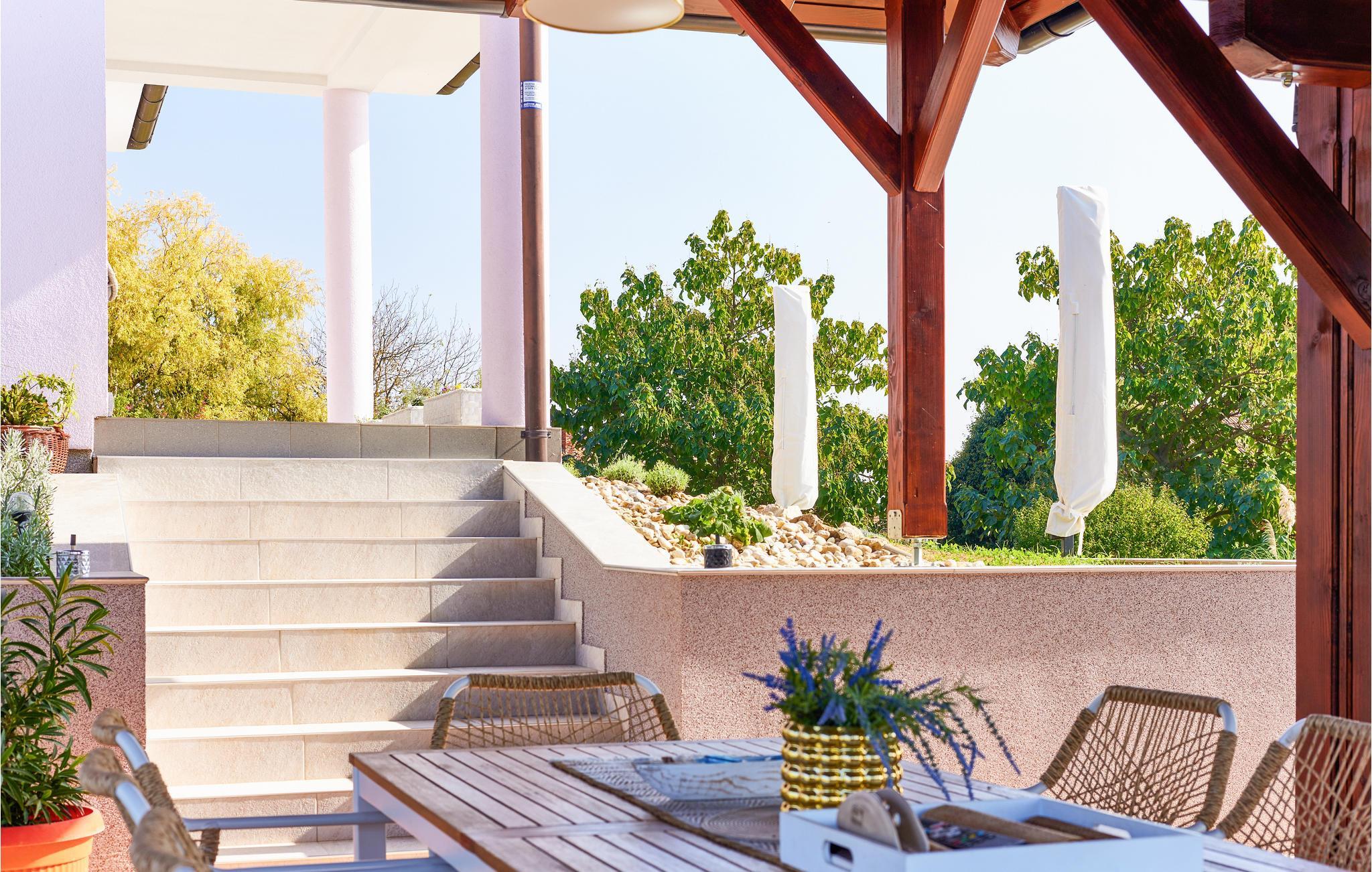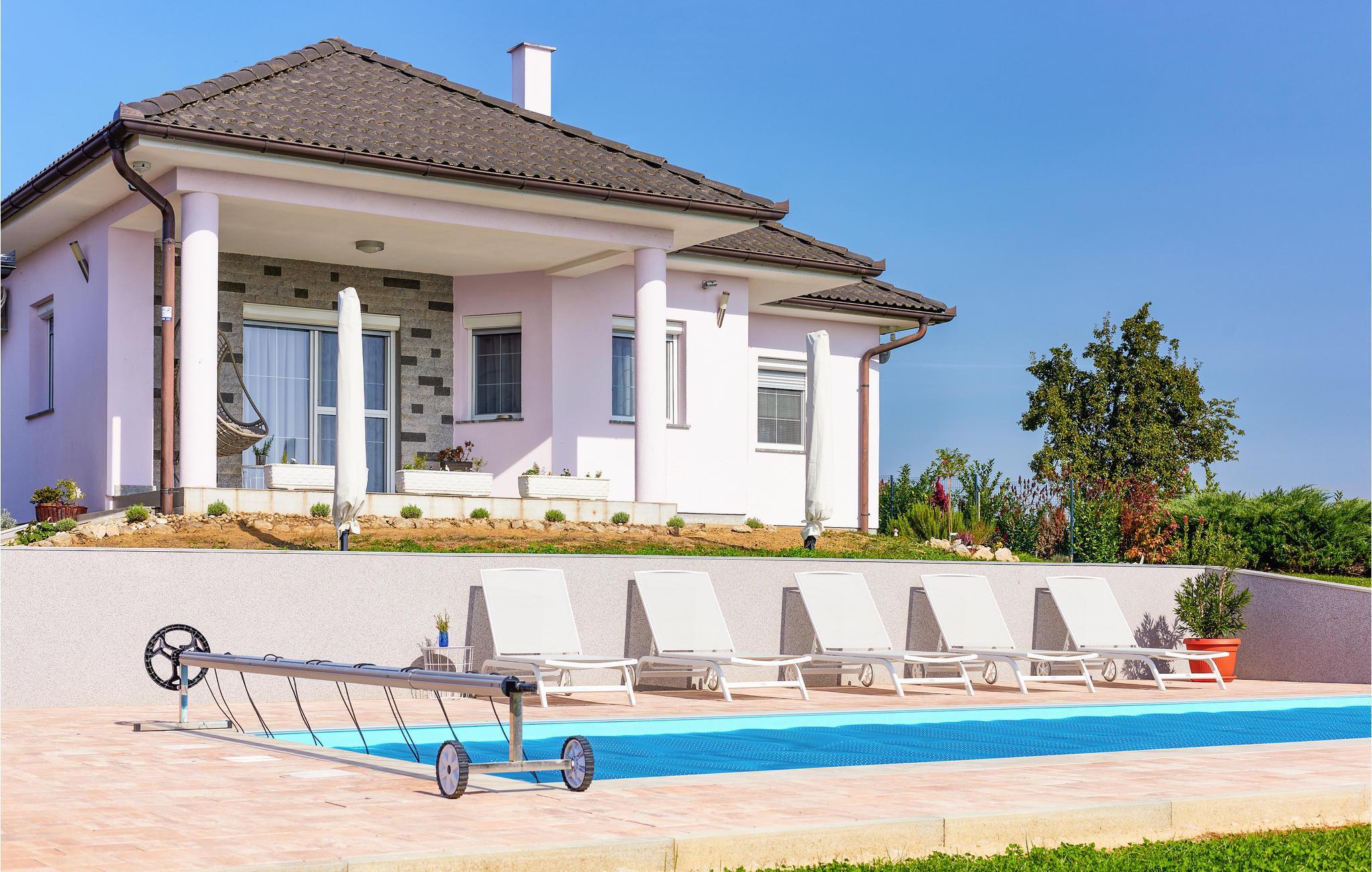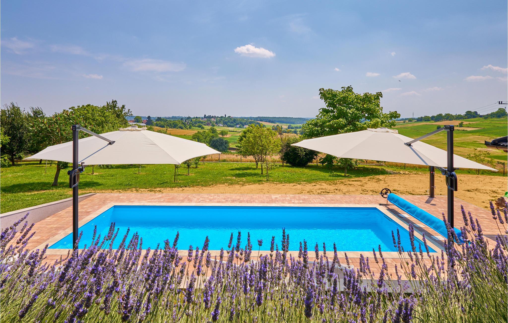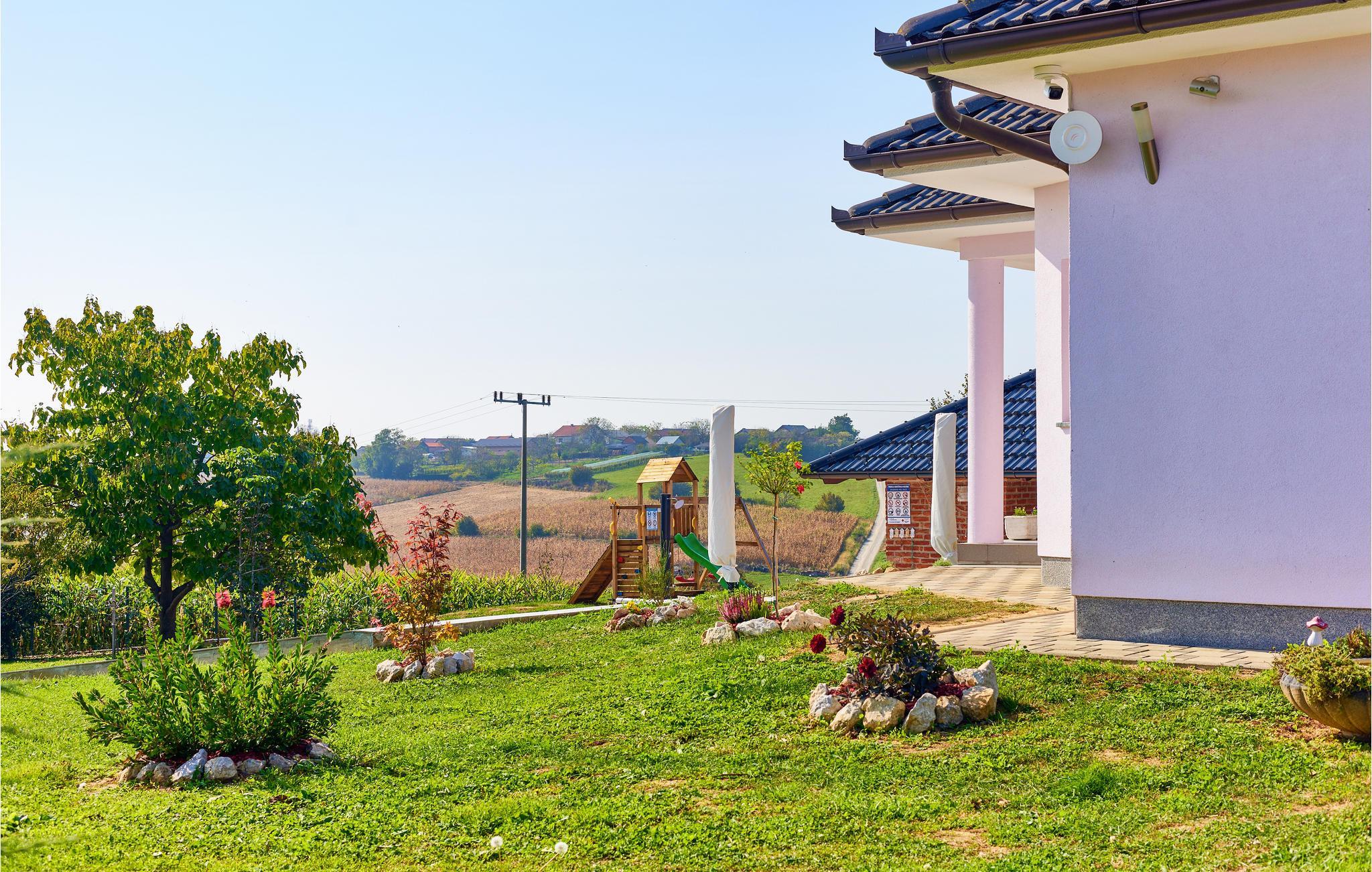 Oplev det perfekte tilflugtssted i dette komfortable feriehus med pool. Kom væk fra det hele og slap af i dette attraktive feriehus, som ligger smukt og byder på en vidunderlig udsigt over landskabet. Det er det helt rigtige sted for en afslappende pause med familien. De lyse lokaler fortryller med et hjemligt interiør med dristige farveaccenter og masser af plads til fælles aktiviteter. Stuen indbyder til at nyde aftenerne sammen. Føl dig godt tilpas på terrasserne med kolde drinks og nyd et par hyggelige timer i solen, mens dine børn svinger sig glade. Forfrisk dig selv i poolen eller nyd stilheden i den komfortable loungestol. Det omkringliggende område har også meget at byde på: gratis klatring på Kalnik-bjerget 10 km væk, cykelruter og gode restauranter inden for kort afstand. Mens du udforsker, kan du prøve de fremragende lokale råvarer, såsom honning, ost og grøntsager. Byen Zagreb er værd at anbefale til en dagstur, den er kun 45 minutter væk fra feriehuset. Glæd dig til en afslappende ferie i dette komfortable feriehus.