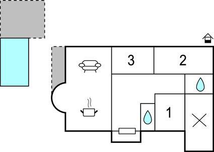Opholdsstue/køkken 70m2 - 1 Soveplads. (Sofa, madras eller lignende).