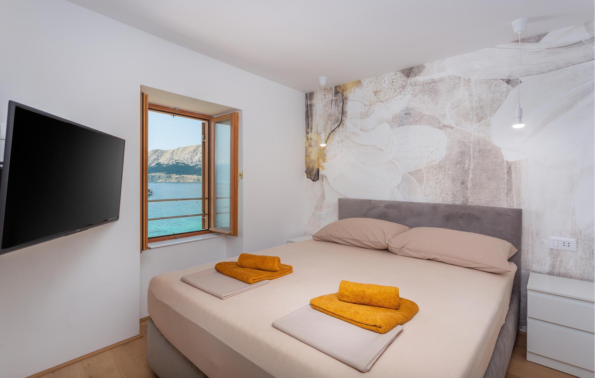 Lige ved strandpromenaden i Baska på øen Krk ligger denne smukke lejlighed, som giver jer privat adgang ned til stranden, så I kan nyde det krystalklare vand og den maleriske kyst til enhver tid. Disse lejligheder er ideelle for et par eller en familie med små børn og har den perfekte blanding af komfort og bekvemmelighed. Lejligheden ligger i en stille gågade, som giver jer mulighed for at nyde et afslappet og bilfrit miljø. Placeringen er perfekt til at opleve den lokale atmosfære og faciliteter i Baska.
