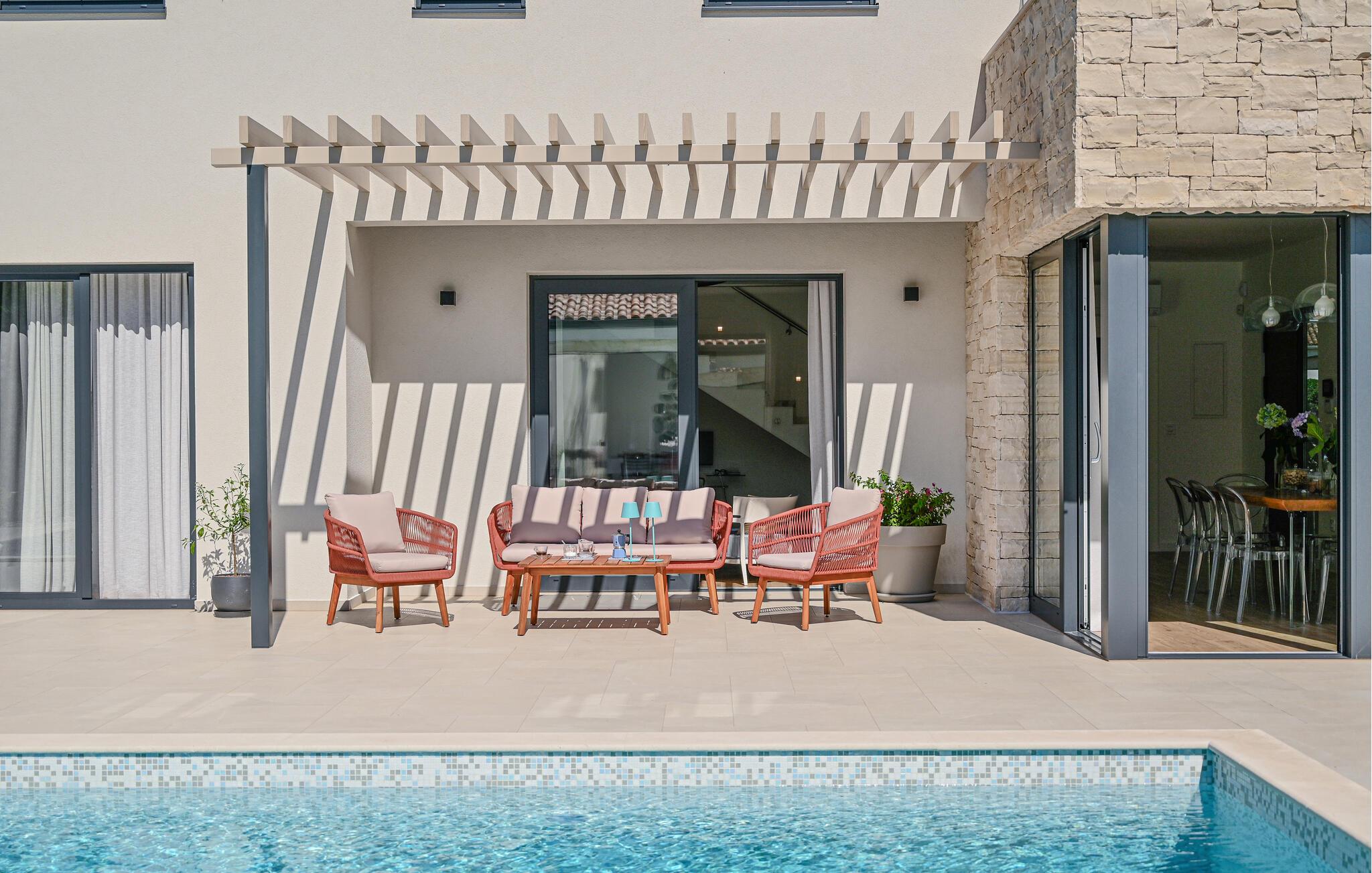 Der er lagt op til nogle herlige dage i dette komfortable feriehus med pool.