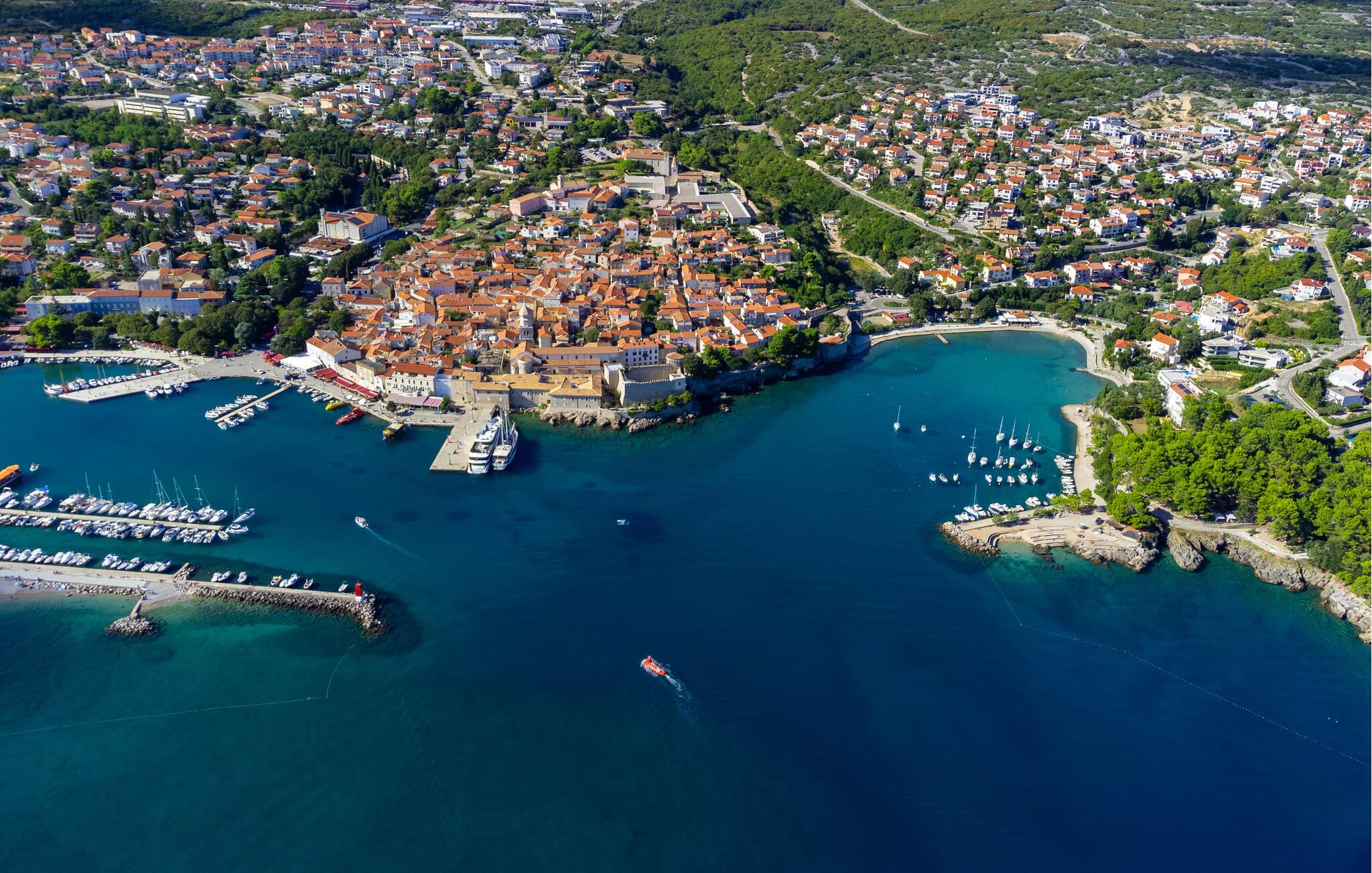 Tag en kort tur til stranden og nyd det klare vand omkring øen Krk. Fra Kras kan I opdage den rolige, landlige side af øens vinmarker, olivenlunde og små landsbyer. Udforsk nærliggende byer som Vrbniks berømte gamle bydel og regionens vine. Nyd regionale specialiteter i traditionelle konobas og oplev Krk fra dens autentiske side.
