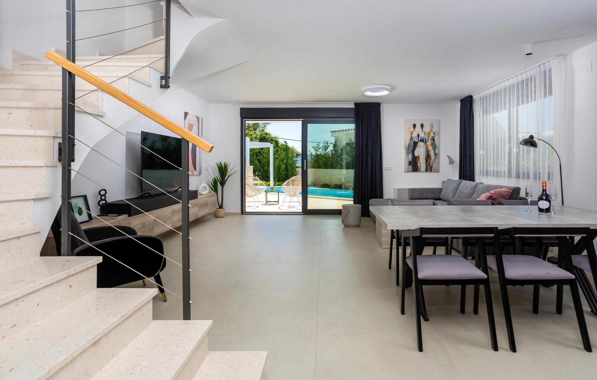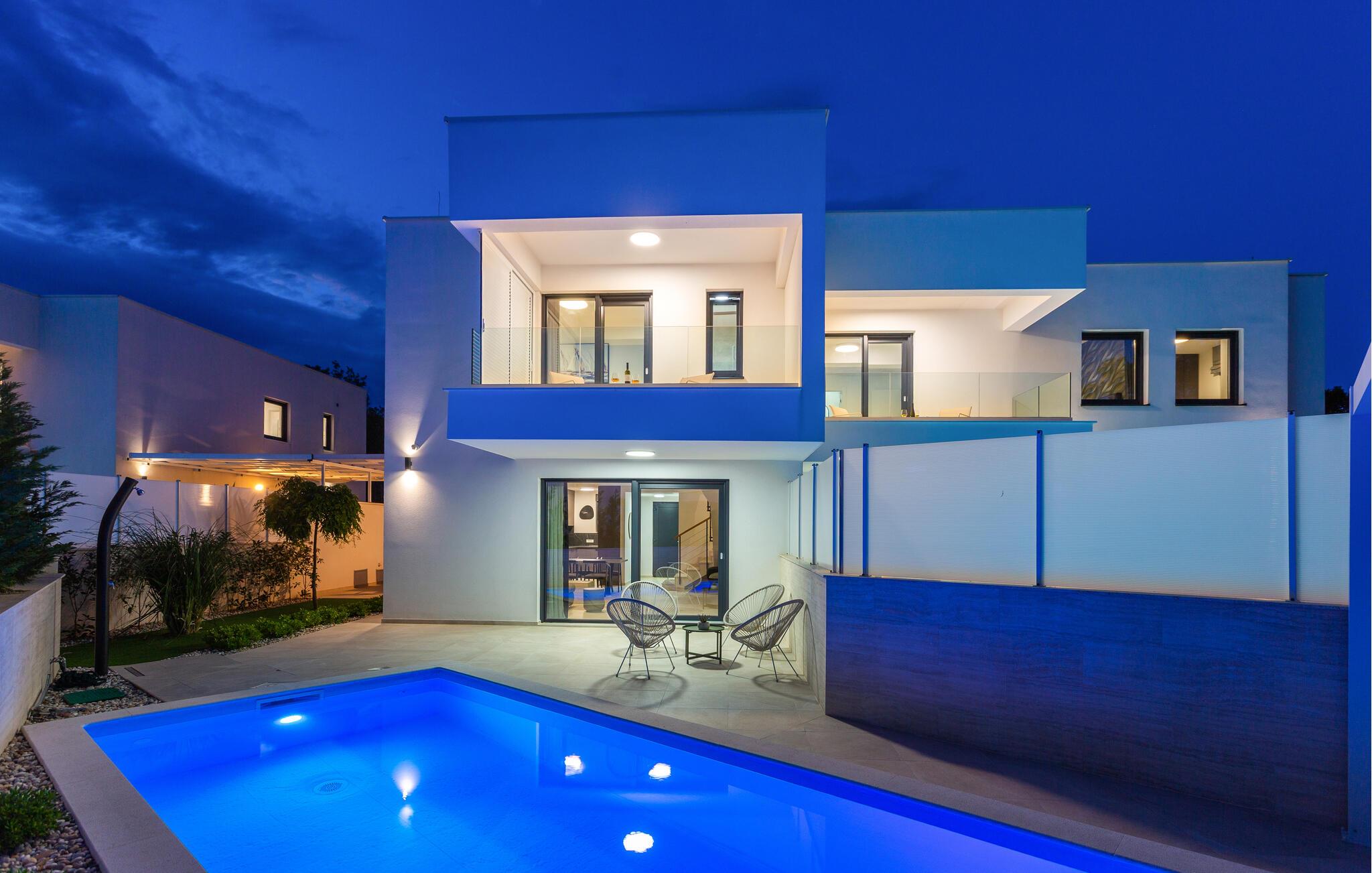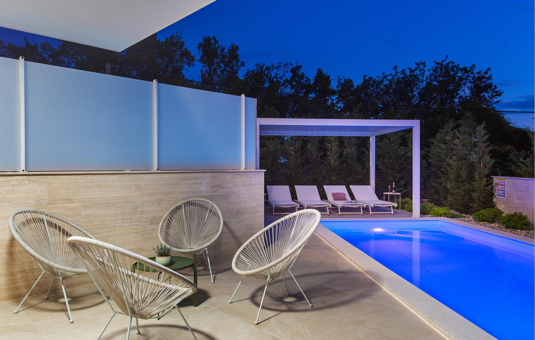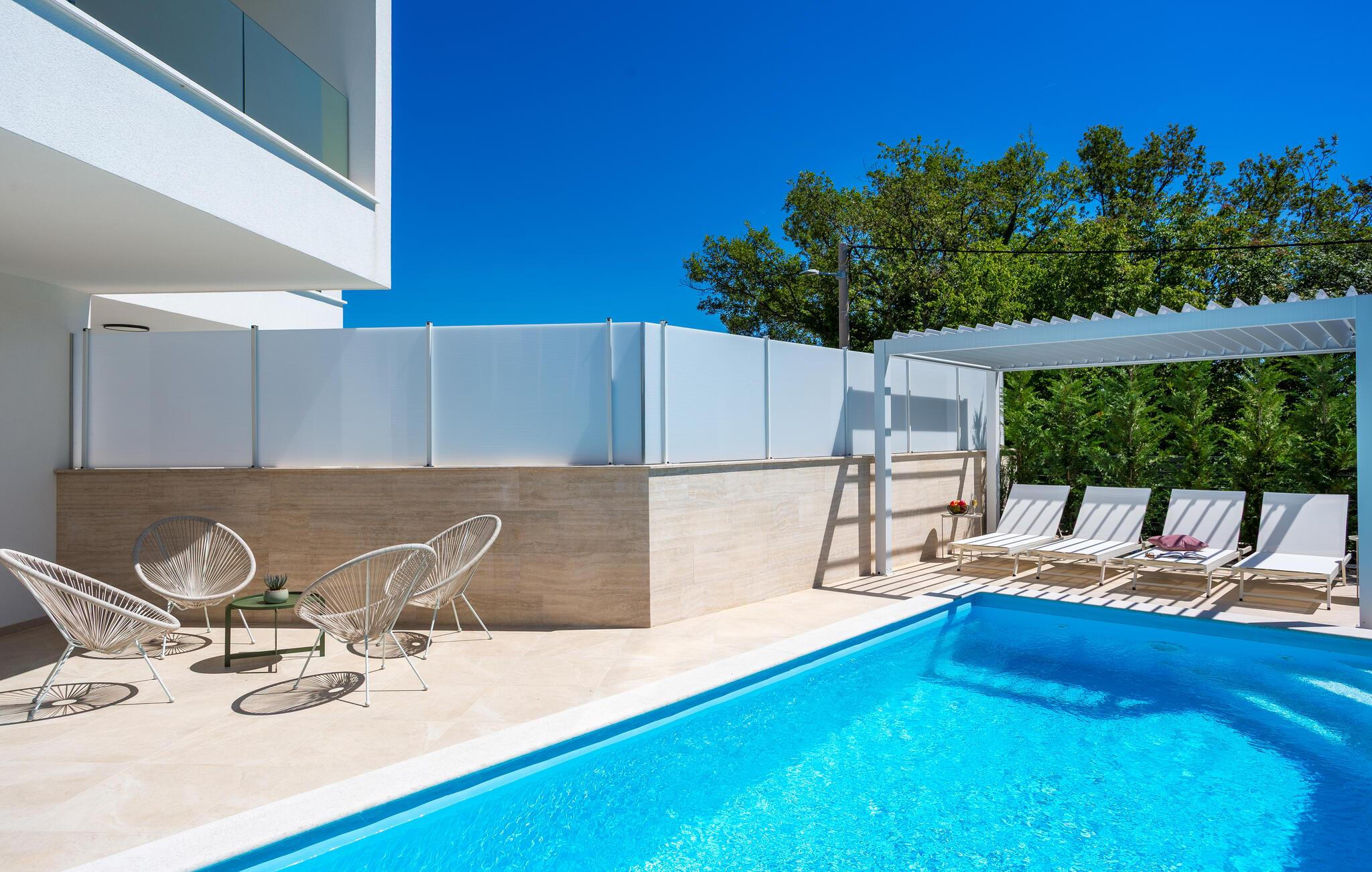 Slap af i dette moderne feriehus med pool.