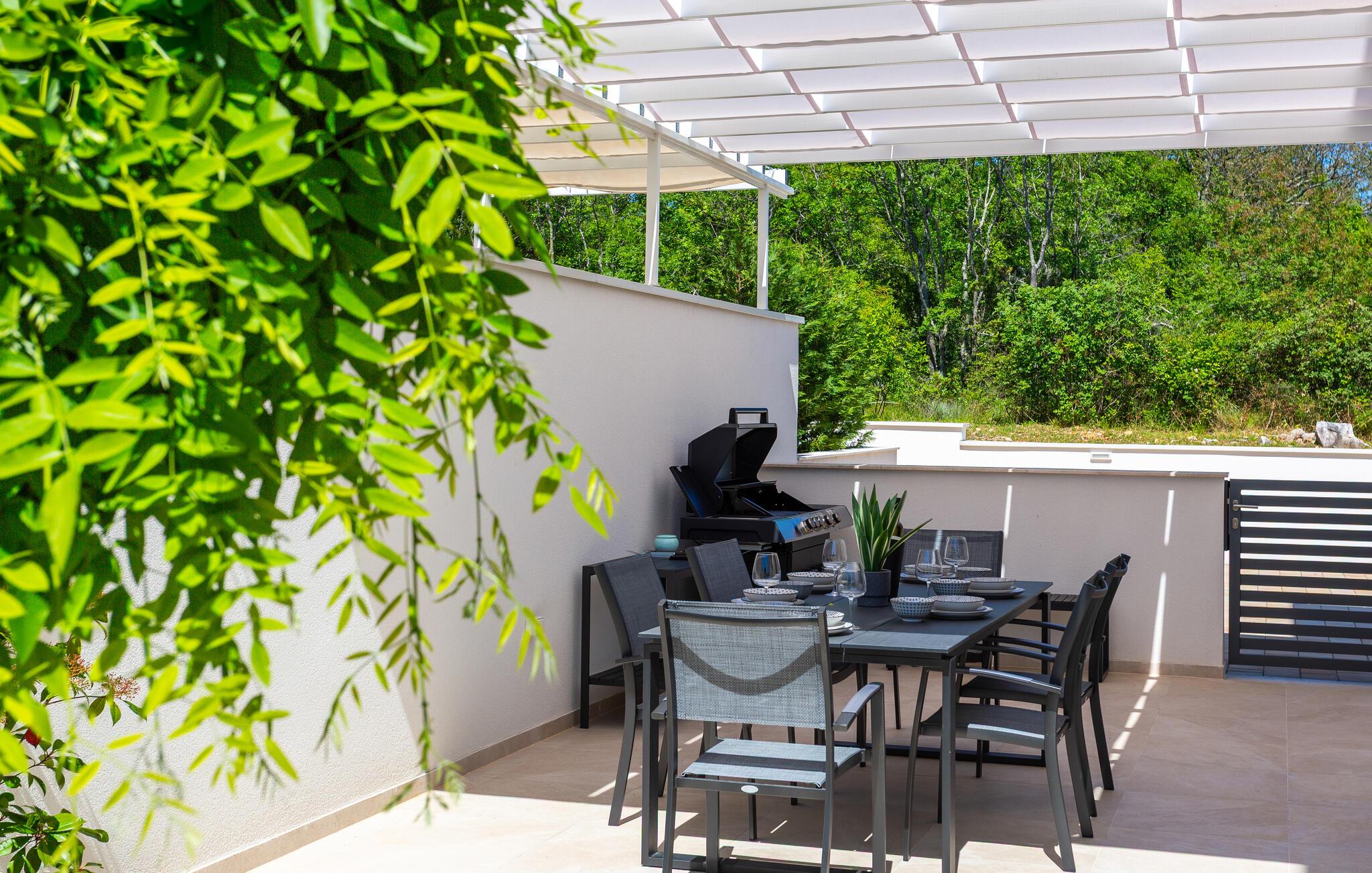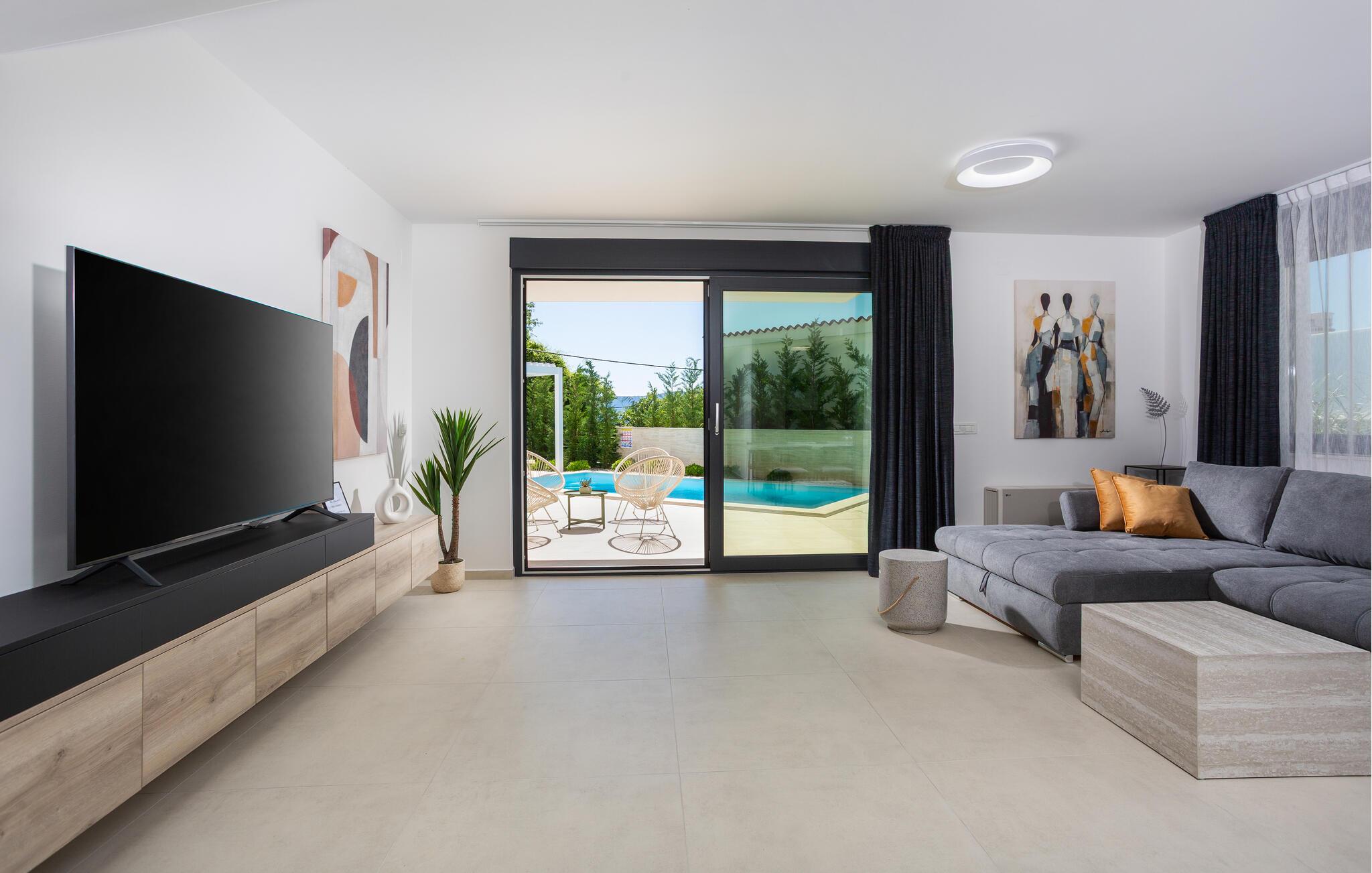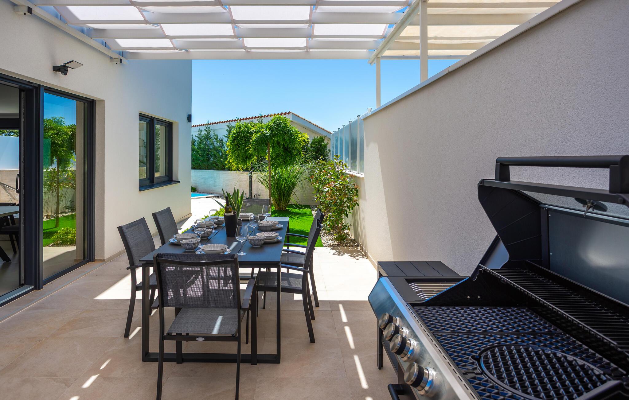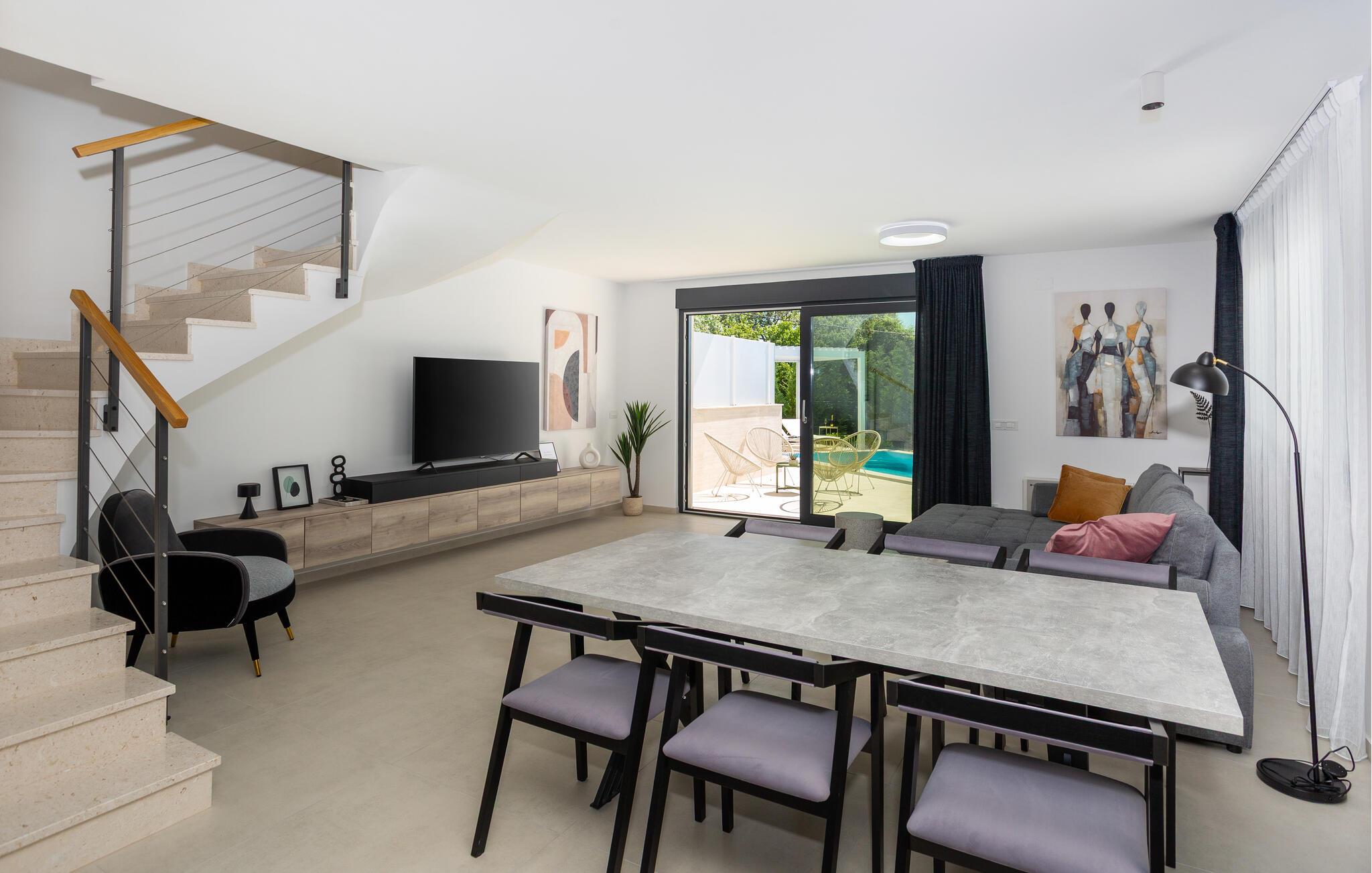 Slap af i dette moderne feriehus med pool.