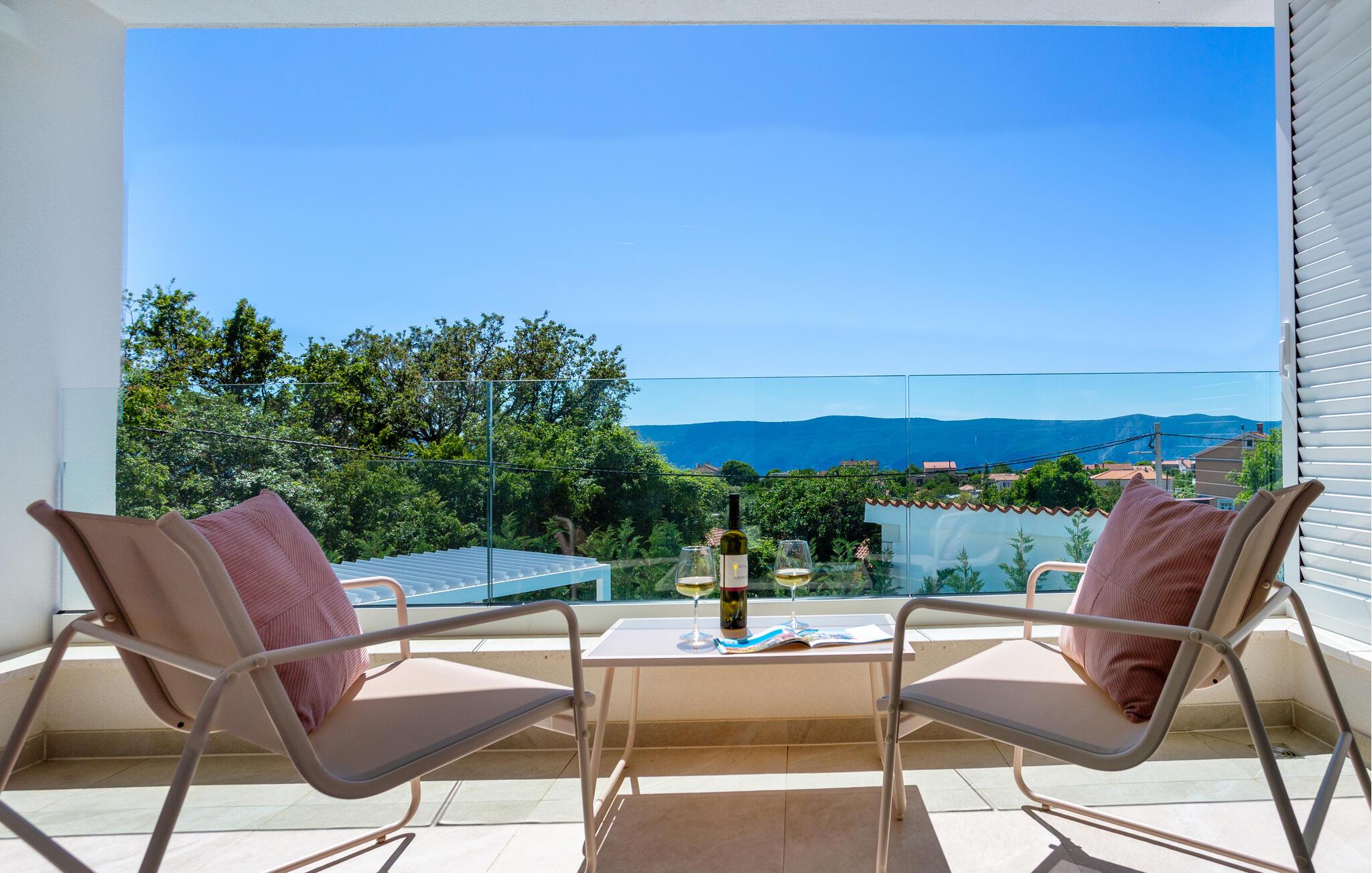 Gå en tur til stranden med det krystalklare vand når som helst på dagen, eller tag afslappende gåture gennem middelhavslandskabet. Hvis I er interesseret i kultur og historie, kan I besøge Krk by med dens imponerende katedral, de velbevarede bymure og Frankopan-slottet, hvorfra I kan nyde en storslået udsigt over havet.
