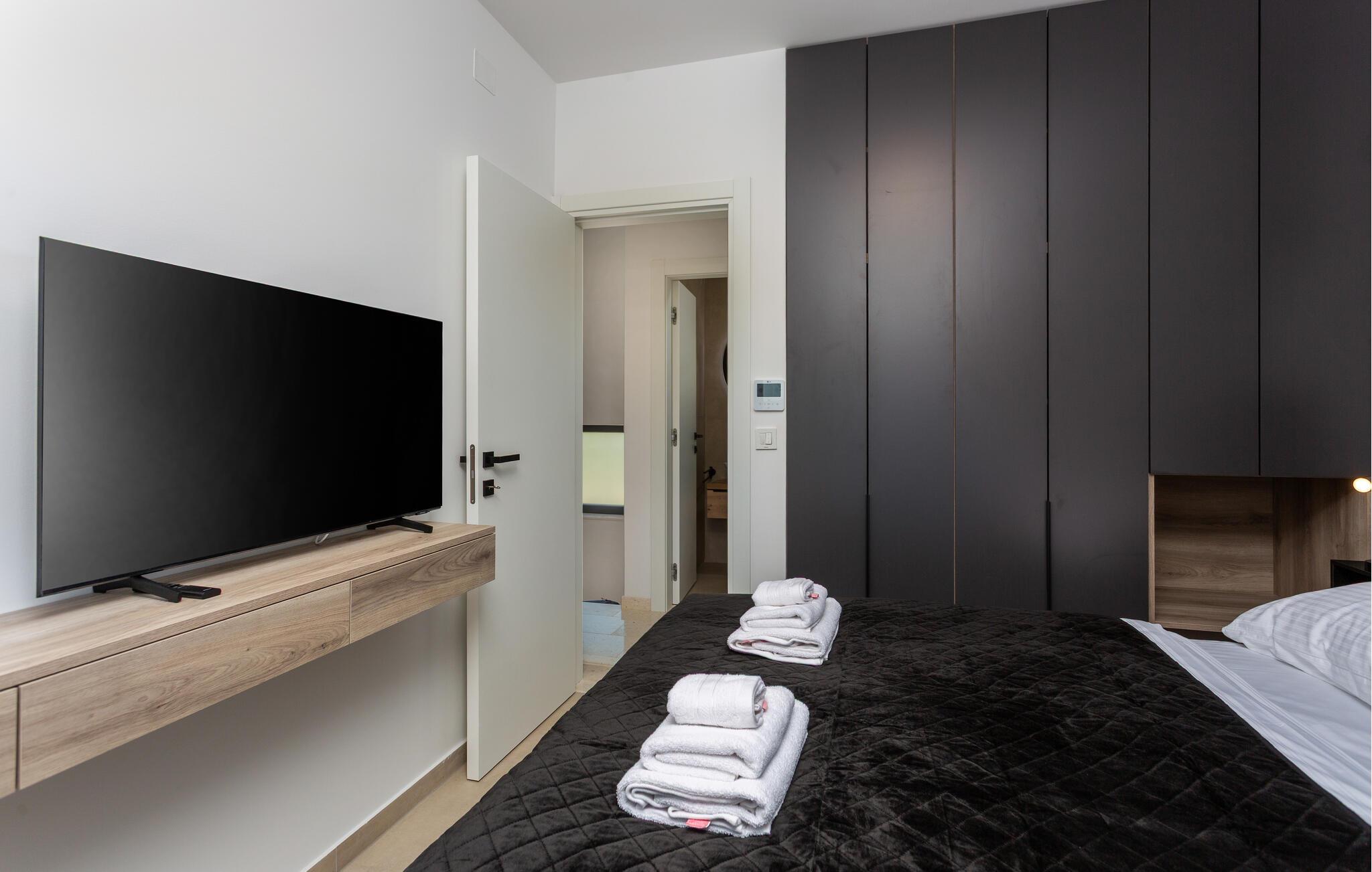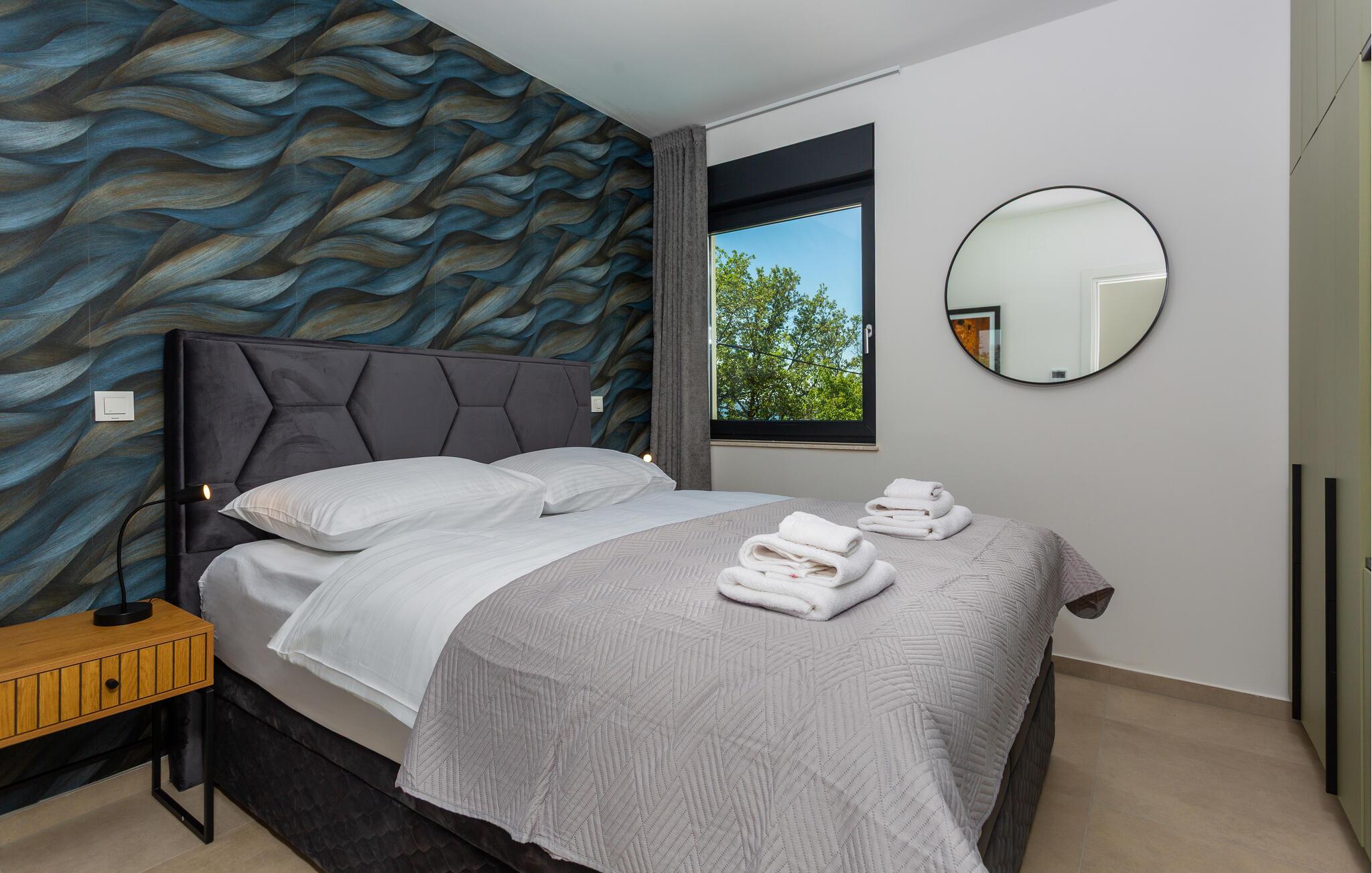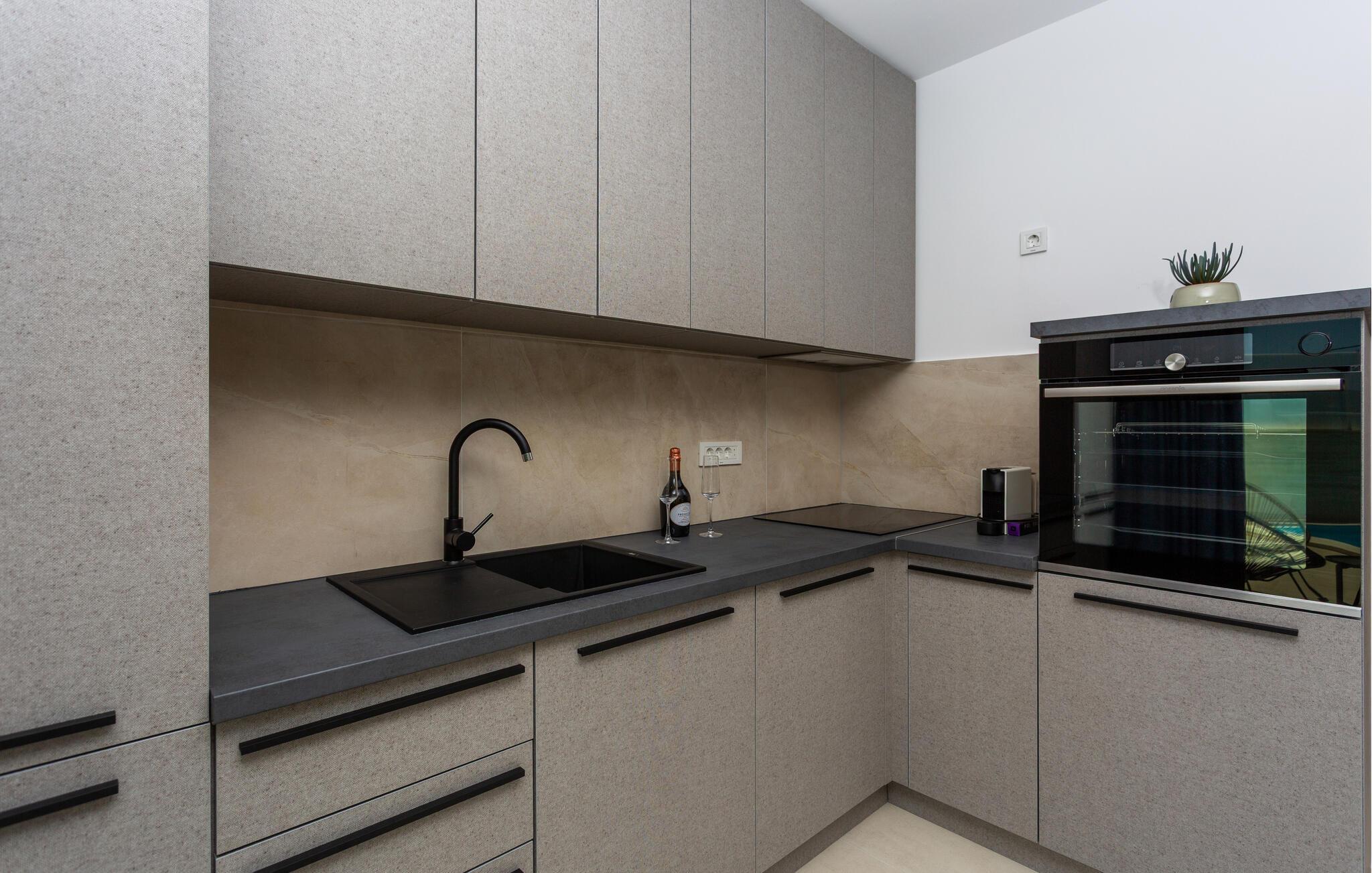 Dette moderne feriehus byder jer velkommen med stilfuldt møblerede interiører og en behagelig boligatmosfære. Bliv inspireret til at skabe kulinariske højdepunkter i det åbne køkken og Find jer til rette for jer til hyggelige filmaftener i den rummelige sofagruppe.