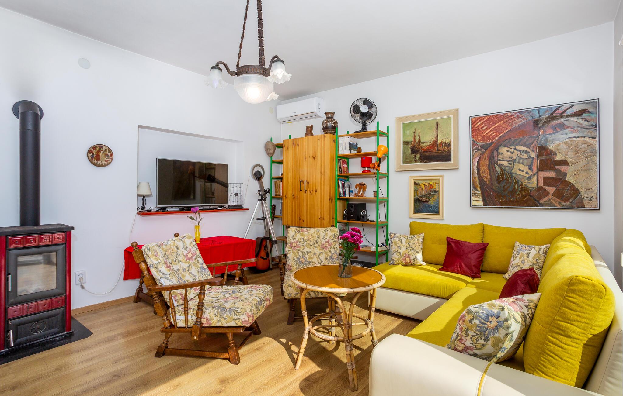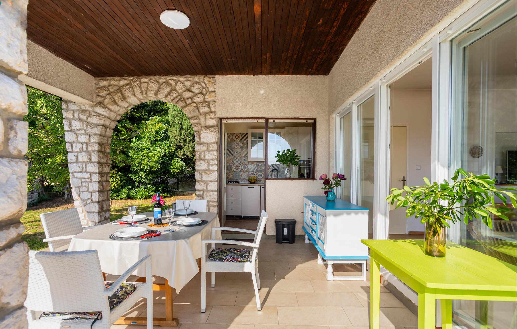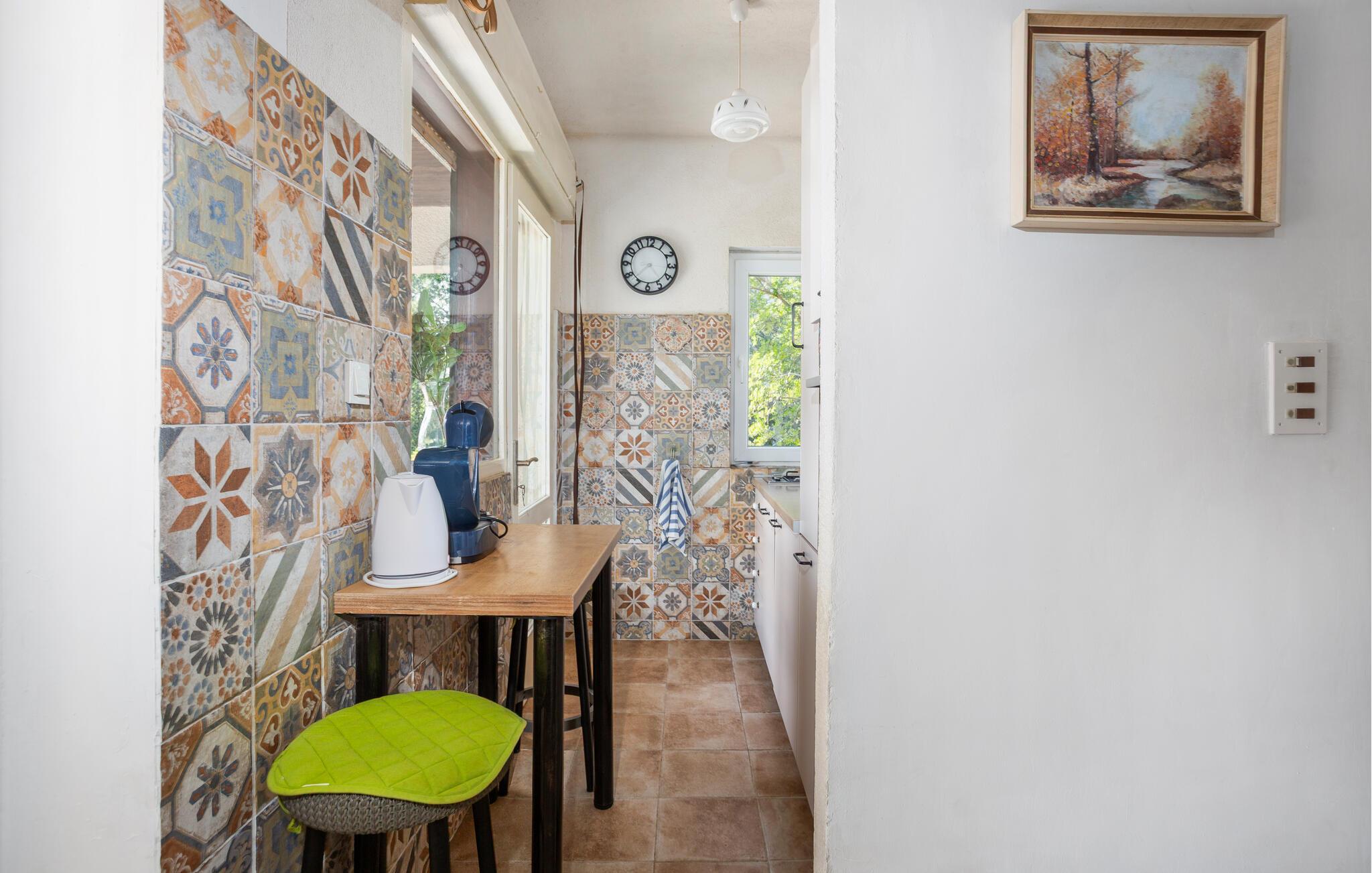 Velkommen til denne skønne oase beliggende i idyllisk have – her vil hverdagen forsvinde fra den allerførste dag. Gør nogle lækre kroatiske retter klar i det lyse køkken og nyd jeres måltider med udsigt over det nærliggende hav. Den velindrettede stue tilbyder også en storslået udsigt takket være store panoramavinduer – sæt jer godt til rette i sofaen til hyggelige spilleaftener eller snak over et glas vin til langt ud på natten.