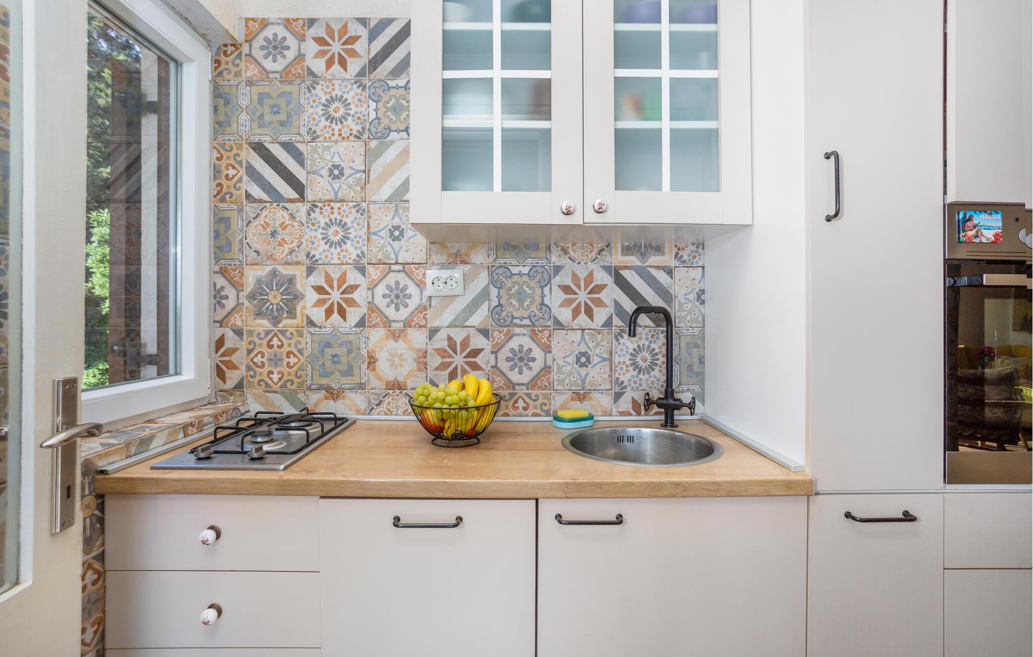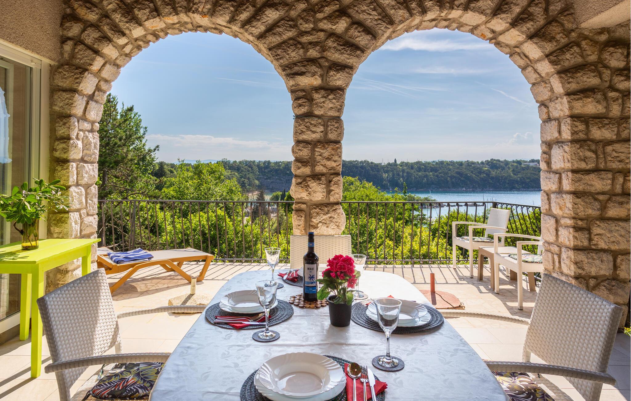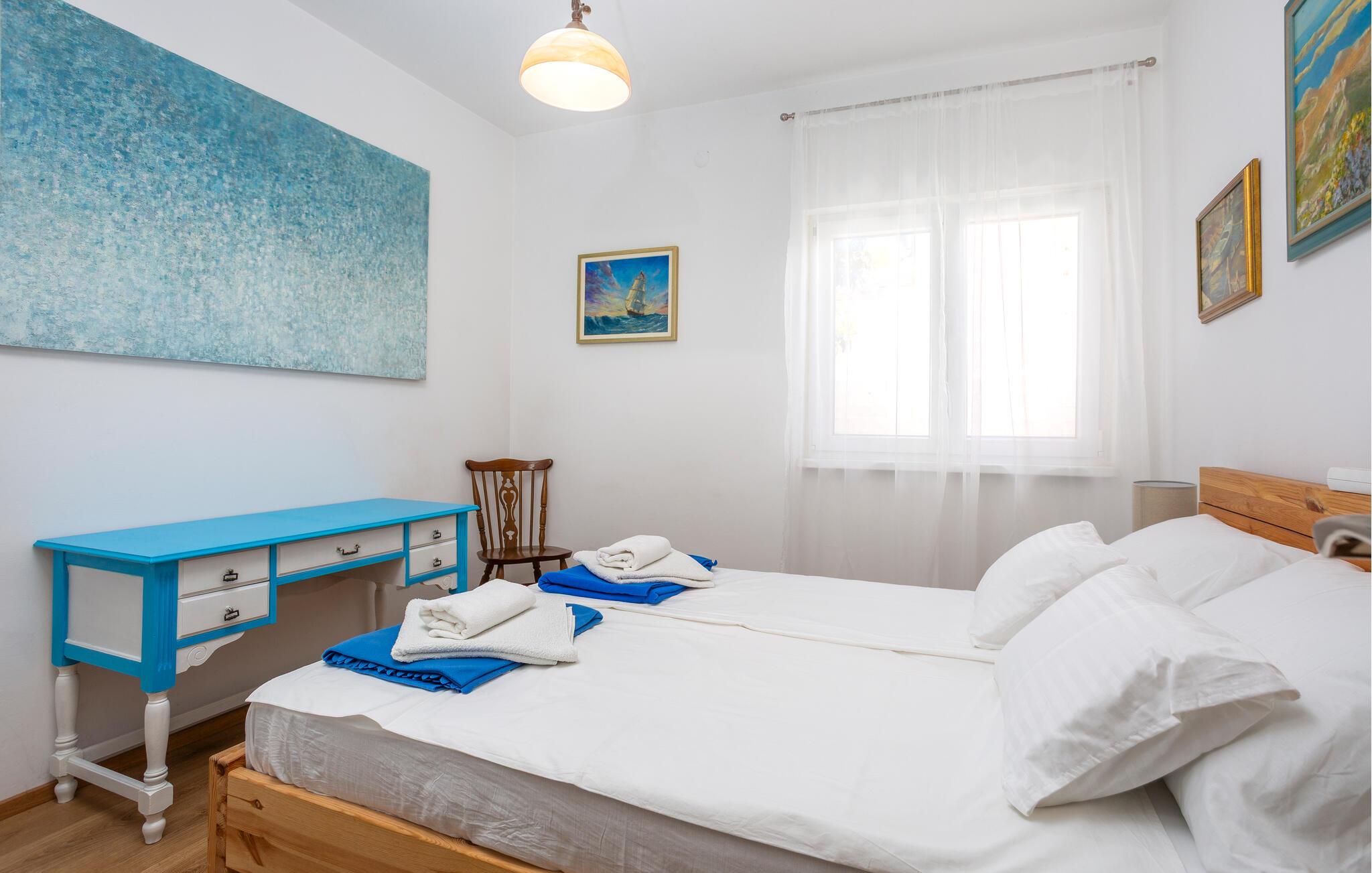 Velkommen til denne skønne oase beliggende i idyllisk have – her vil hverdagen forsvinde fra den allerførste dag. Gør nogle lækre kroatiske retter klar i det lyse køkken og nyd jeres måltider med udsigt over det nærliggende hav. Den velindrettede stue tilbyder også en storslået udsigt takket være store panoramavinduer – sæt jer godt til rette i sofaen til hyggelige spilleaftener eller snak over et glas vin til langt ud på natten.