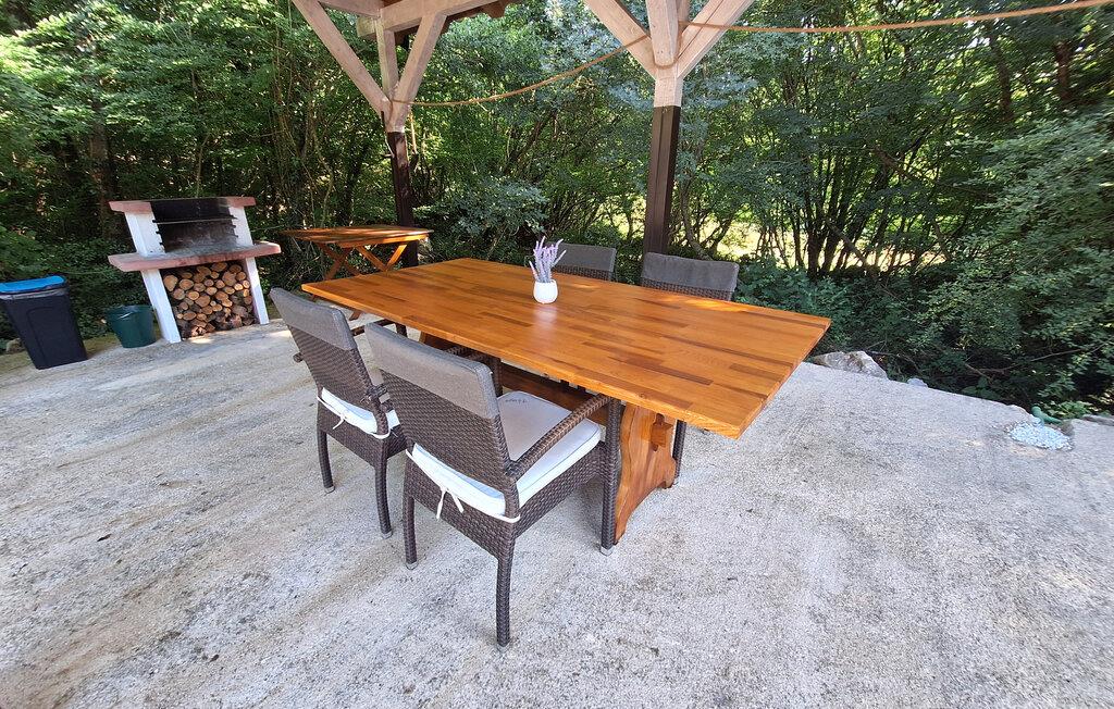 Velkommen til dette indbydende hus, der byder jer velkommen i en idyllisk og fredelig beliggenhed. Her vil I blive vækket af skovens duft og fuglenes kvidren. Slap af indenfor med moderne møbler, der tilbyder alt, hvad I behøver for at føle jer hjemme. Tilbered lækre måltider i køkkenet og glæd jer til hyggelige aftener på sofaen.