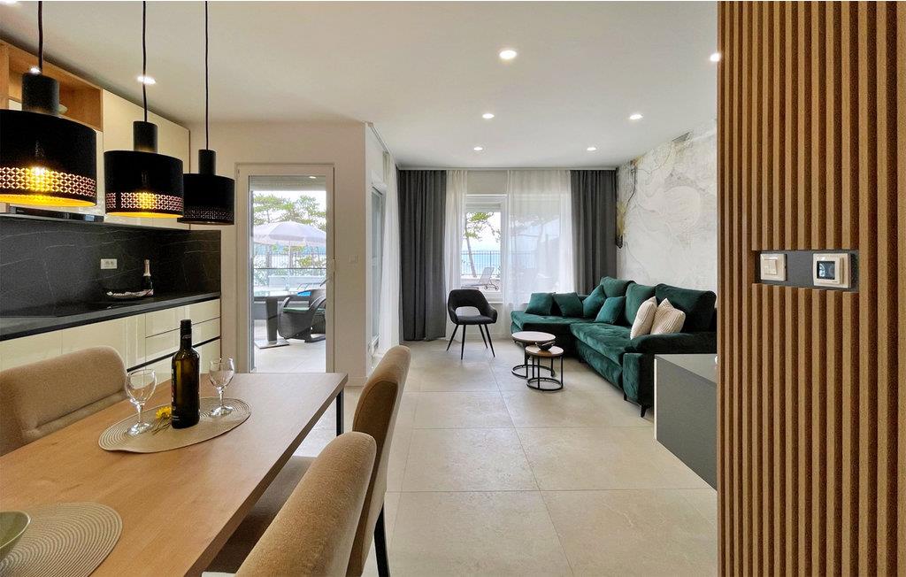 Velkommen til denne skønne lejlighed, som har en fantastisk beliggenhed ved havet, så her får I rig mulighed for en masse små ture ned for at få et dyp i løbet af feriedagene. Boligen er lækkert og moderne indrettet, så I får dejlige rammer til at slappe af efter dagens program. Læn jer tilbage i sofaen, mens I nyder havudsigten.