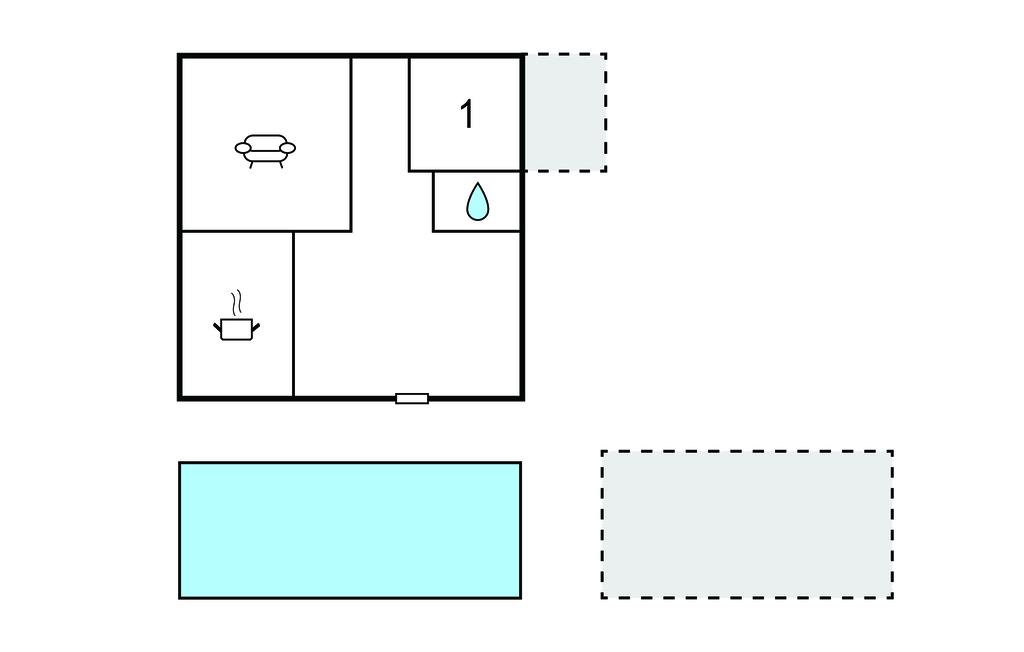 Opholdsstue/køkken 25m2 - 1 Soveplads. (Sofa, madras eller lignende).