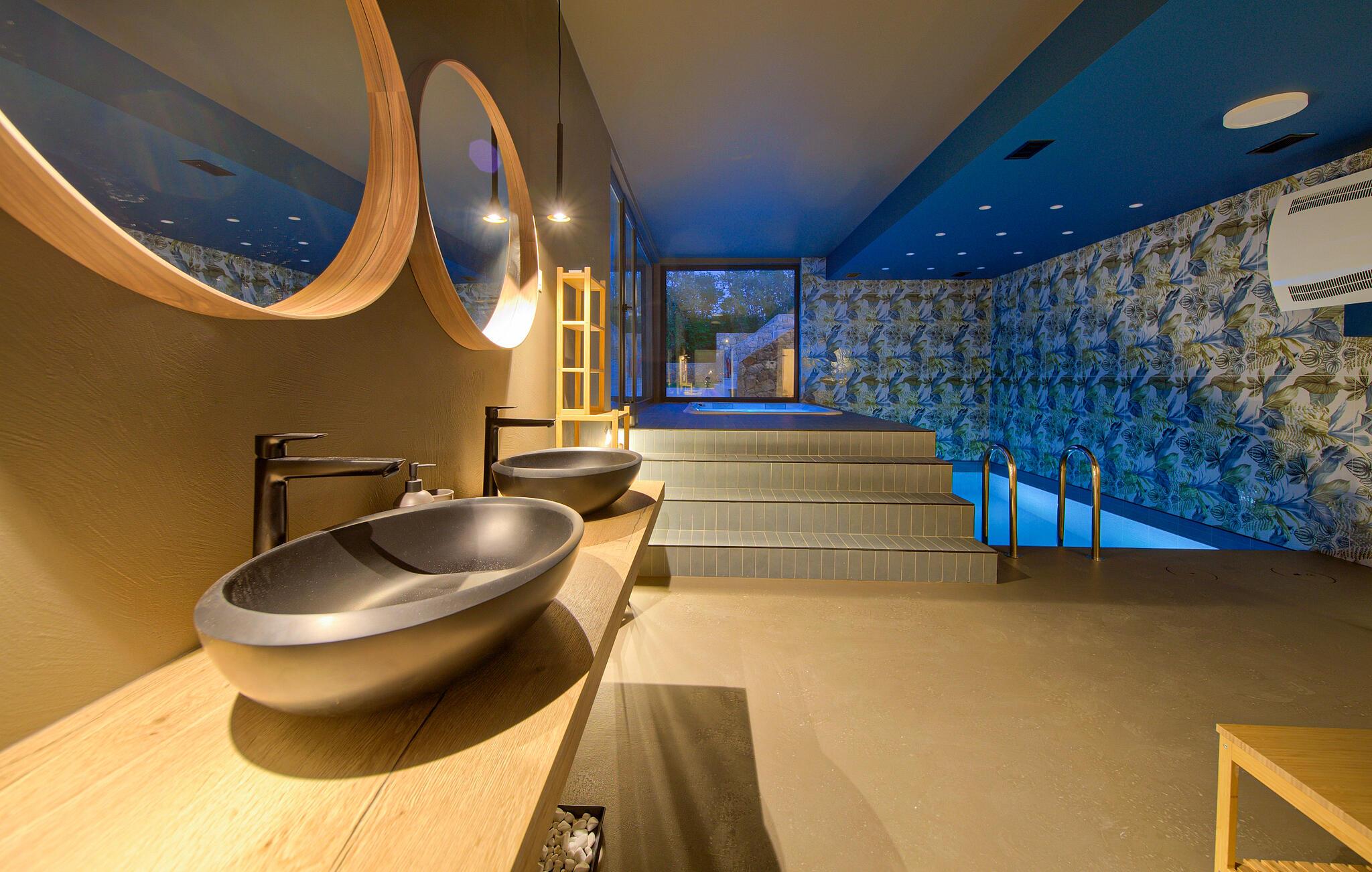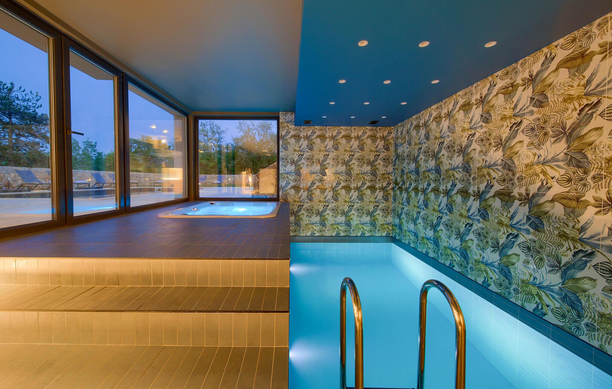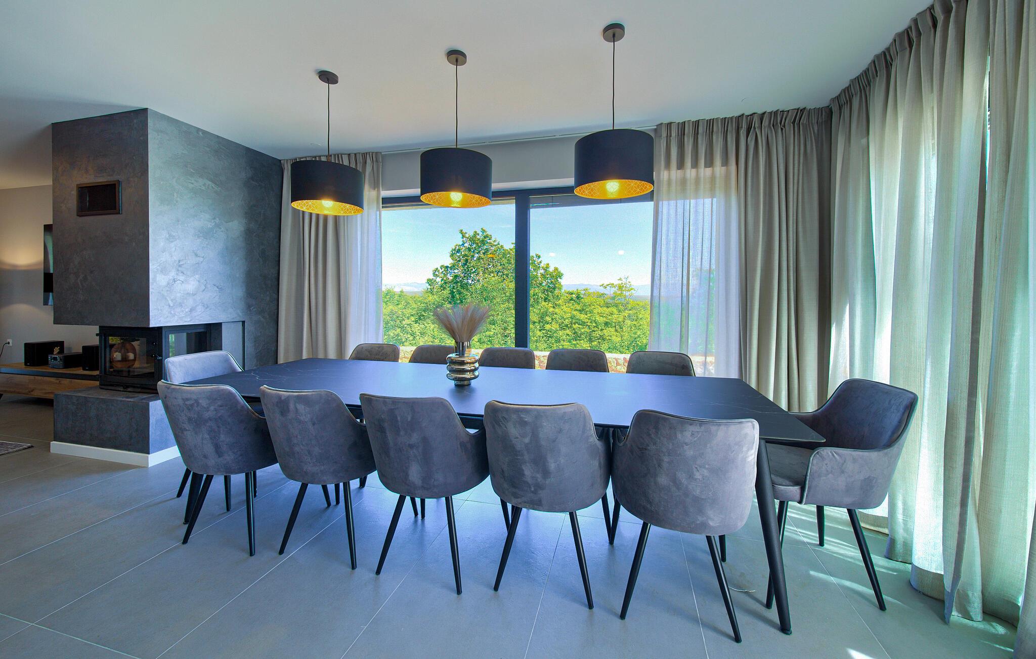 Oplev denne eksklusive oase og læg hverdagen bag jer. Jeres stilfulde indkvartering tilbyder alt, hvad I har brug for til afslappende dage i jeres feriedestination Vrh. Her venter jer smukke indendørs- og udendørsområder med moderne design og kvalitetsudstyr. Start dagen med et afslappende bad i den opvarmede indendørspool, eller forkæl jer selv i whirlpoolen. Brug saunaen til at revitalisere krop og sjæl, og hold jer aktive i det veludstyrede fitnessrum. Lad jer inspirere af det moderne, rummelige køkken og tilbered jeres måltider i en stilfuld atmosfære. Nyd derefter maden i den rummelige spisestue, hvorfra I kan lade blikket vandre ud i den grønne omgivelse gennem store vinduer.