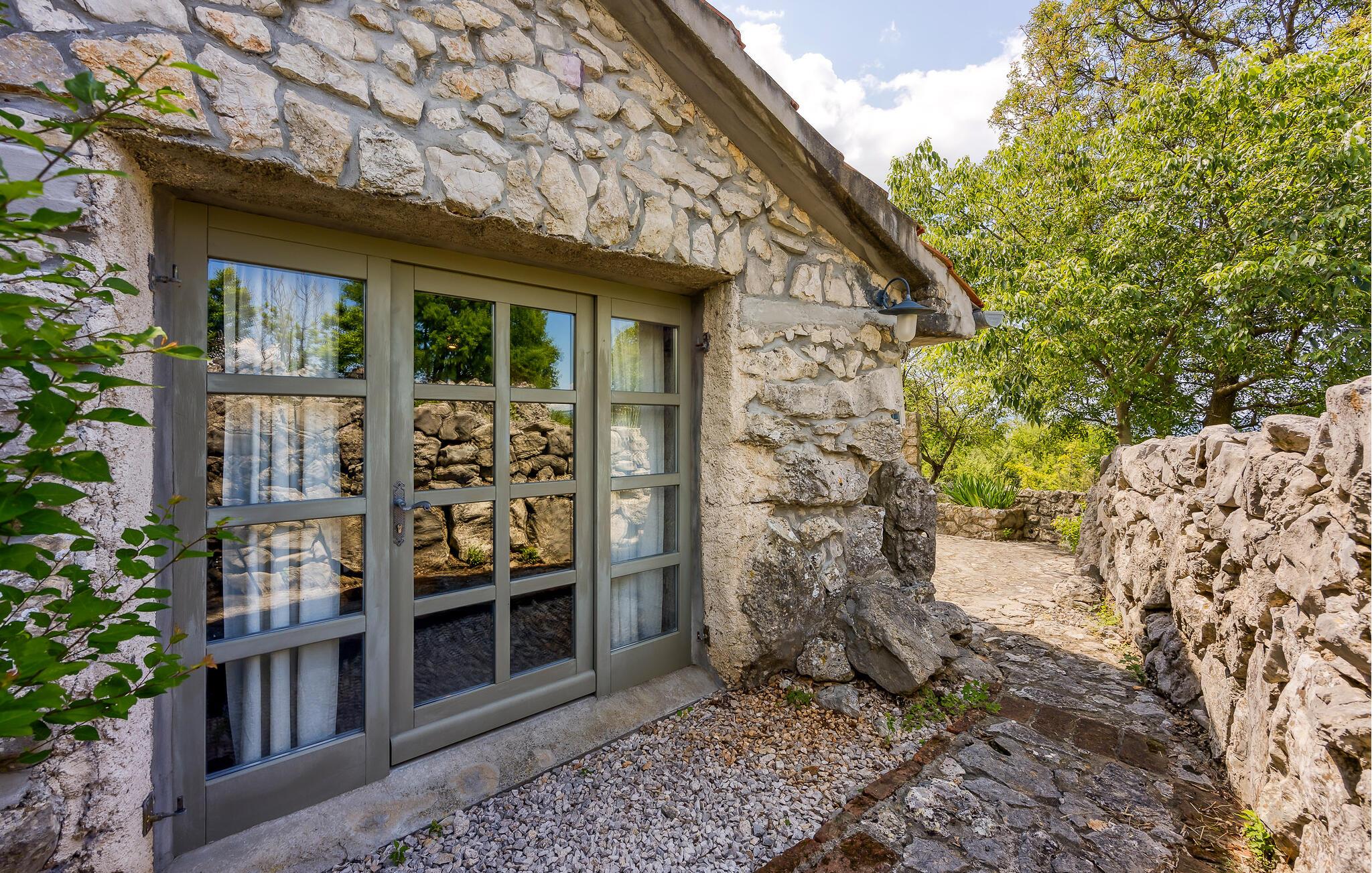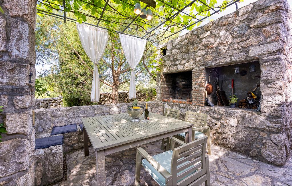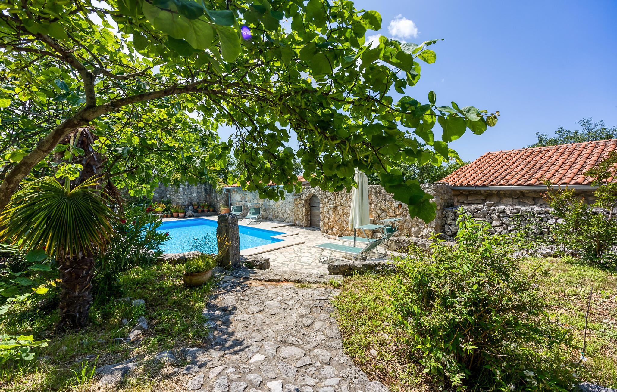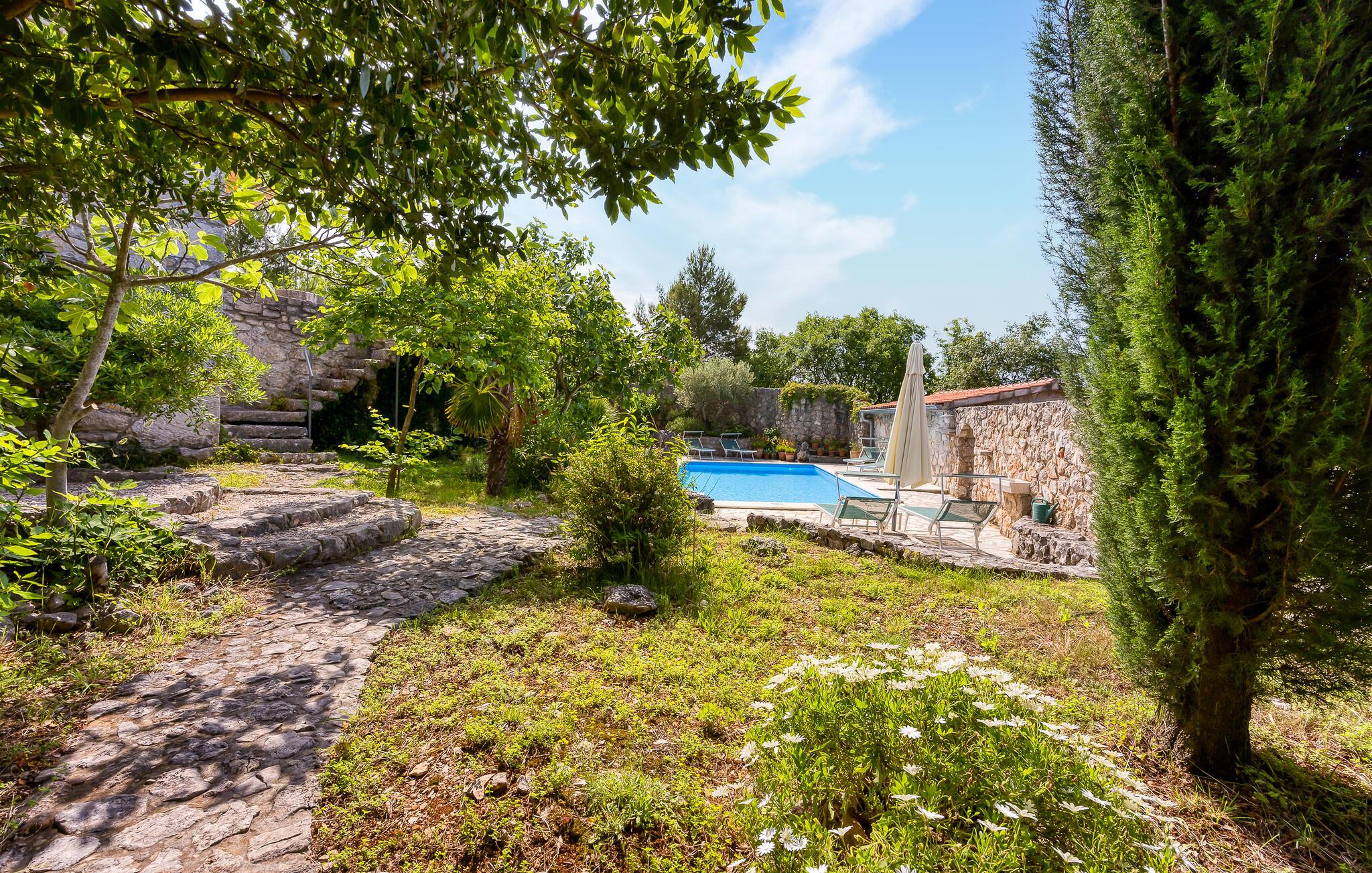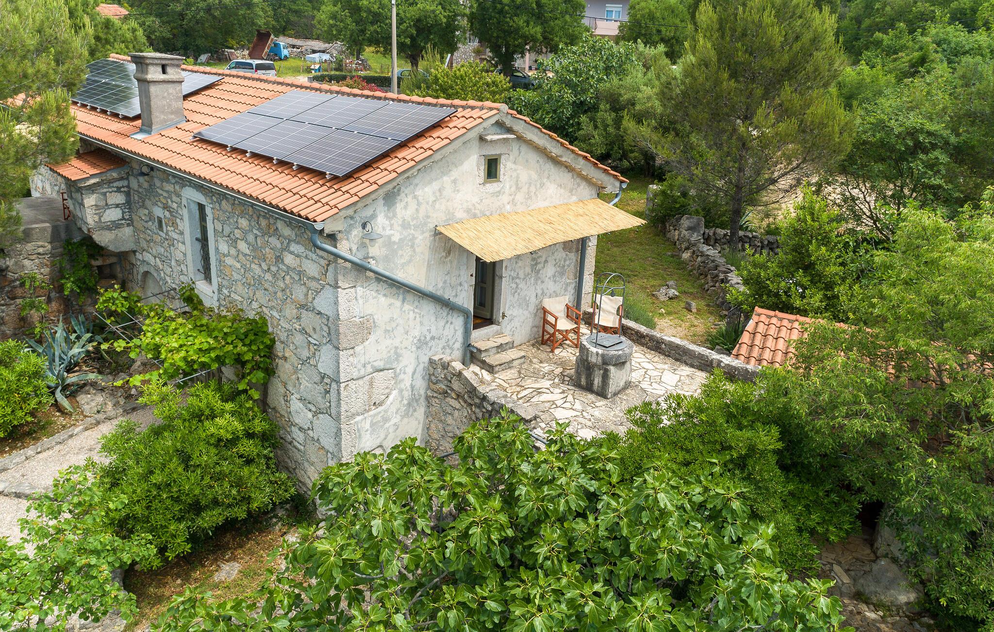 I smukke, grønne omgivelser ligger denne drømmevilla fra 1827, som er renoveret i husets oprindelige stil og indrettet med stor kærlighed til detaljen. Kombinationen af rustik indretning og moderne swimmingpool passer perfekt til denne drøm af en oase. I stueetagen har I det rummelige køkken og stuen, mens de to soveværelser ligger ovenpå. Et af soveværelserne kan I kun komme til ad en udendørs trappe. På den lukkede naturgrund er der desuden både swimmingpool og terrasse. Herfra har I en vidunderlig udsigt ud over havet og den charmerende ø Krk. Det lille hyggelige hus ved siden af byder på endnu et soveværelse med eget badeværelse. Alle værelserne er smagfuldt og traditionelt indrettede. Snup en forfriskende dukkert i poolen, og nyd en kop god kaffe eller en spændende bog på terrassen! Et besøg i byen Krk må varmt anbefales. Især i løbet af sommeren summer byen af mange kunstmalere og orkestre. De andre maleriske steder på øen, f.eks. Vrbnik, Baska, Malinska, Punat og den lille ø Kosljun, bør I bestemt også udforske. Og tag en tur med båd til øerne Rab, Cres eller Losinj. Koljun er en lille ø i bugten Puntarska Draga, som især er kendt for sin kulturarv. I løbet af sommerfestivalen i Krk afholdes der koncerter i byens kloster - det er et must at opleve.