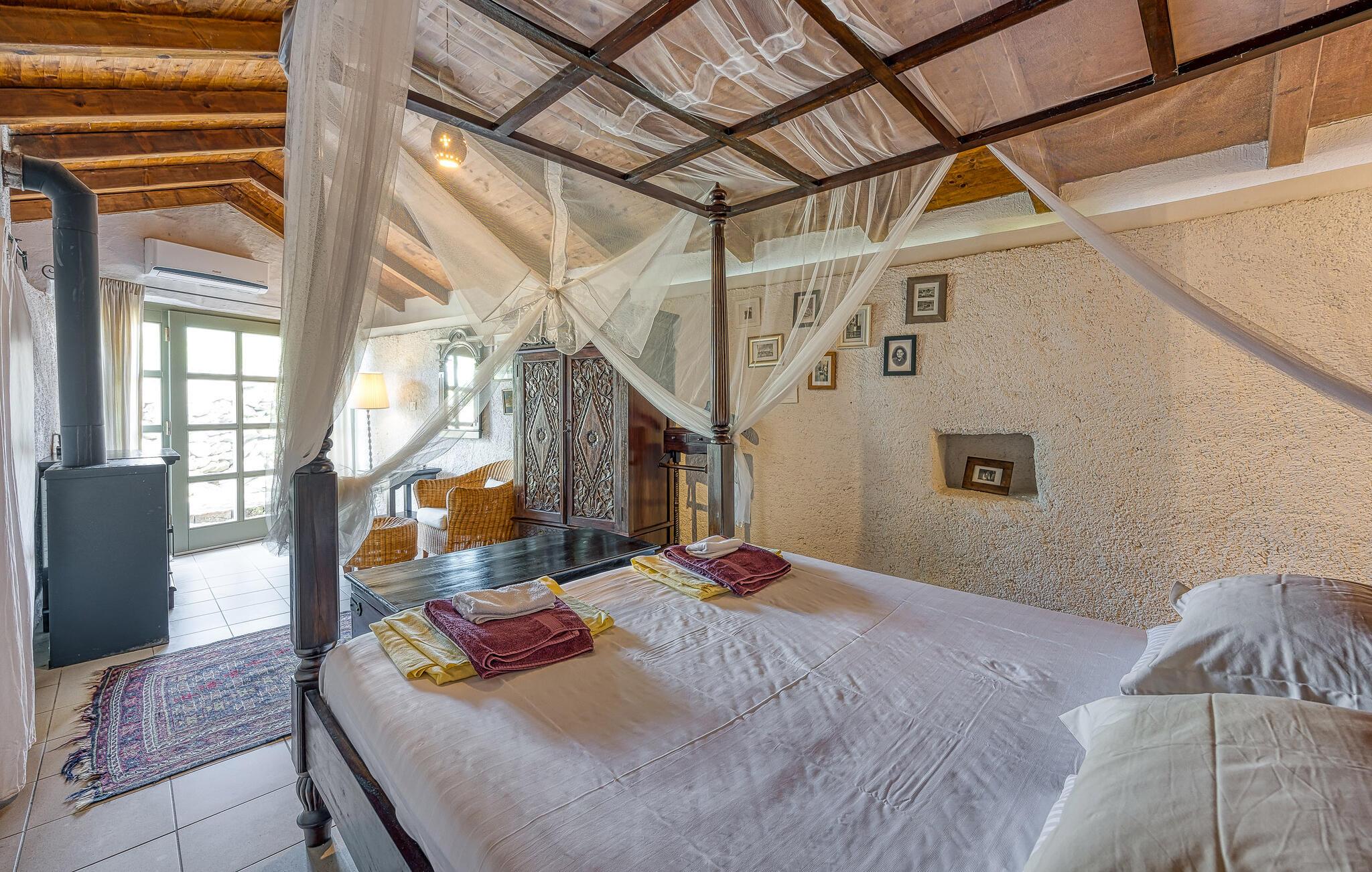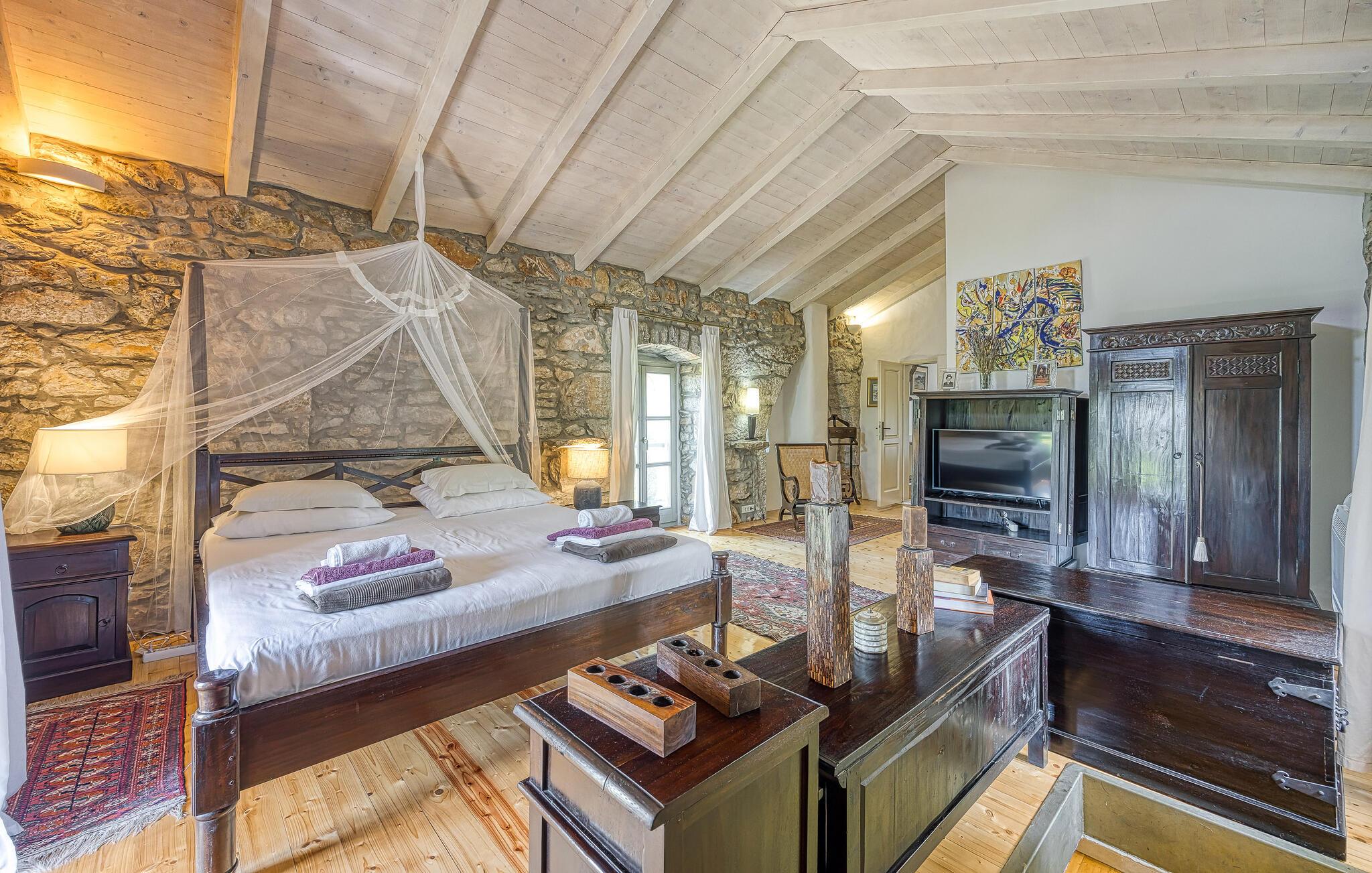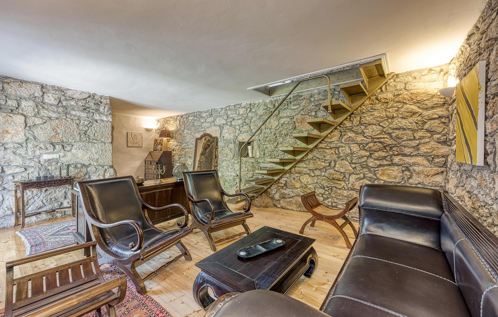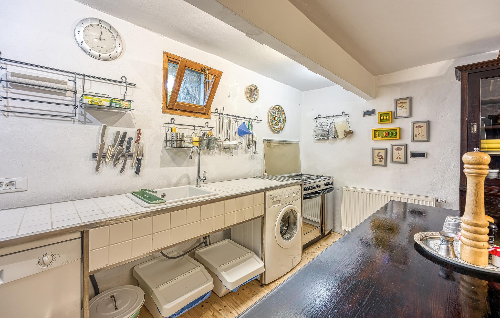 I smukke, grønne omgivelser ligger denne drømmevilla fra 1827, som er renoveret i husets oprindelige stil og indrettet med stor kærlighed til detaljen. Kombinationen af rustik indretning og moderne swimmingpool passer perfekt til denne drøm af en oase. I stueetagen har I det rummelige køkken og stuen, mens de to soveværelser ligger ovenpå. Et af soveværelserne kan I kun komme til ad en udendørs trappe. På den lukkede naturgrund er der desuden både swimmingpool og terrasse. Herfra har I en vidunderlig udsigt ud over havet og den charmerende ø Krk. Det lille hyggelige hus ved siden af byder på endnu et soveværelse med eget badeværelse. Alle værelserne er smagfuldt og traditionelt indrettede. Snup en forfriskende dukkert i poolen, og nyd en kop god kaffe eller en spændende bog på terrassen! Et besøg i byen Krk må varmt anbefales. Især i løbet af sommeren summer byen af mange kunstmalere og orkestre. De andre maleriske steder på øen, f.eks. Vrbnik, Baska, Malinska, Punat og den lille ø Kosljun, bør I bestemt også udforske. Og tag en tur med båd til øerne Rab, Cres eller Losinj. Koljun er en lille ø i bugten Puntarska Draga, som især er kendt for sin kulturarv. I løbet af sommerfestivalen i Krk afholdes der koncerter i byens kloster - det er et must at opleve.
