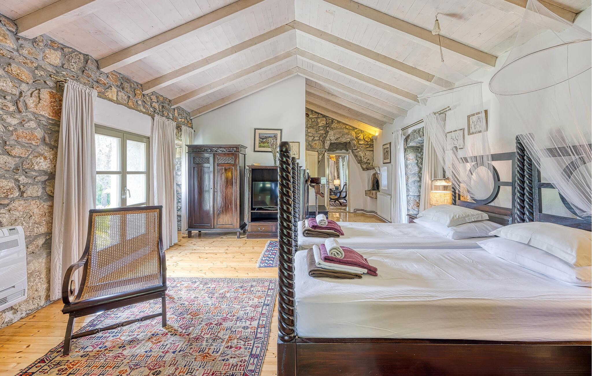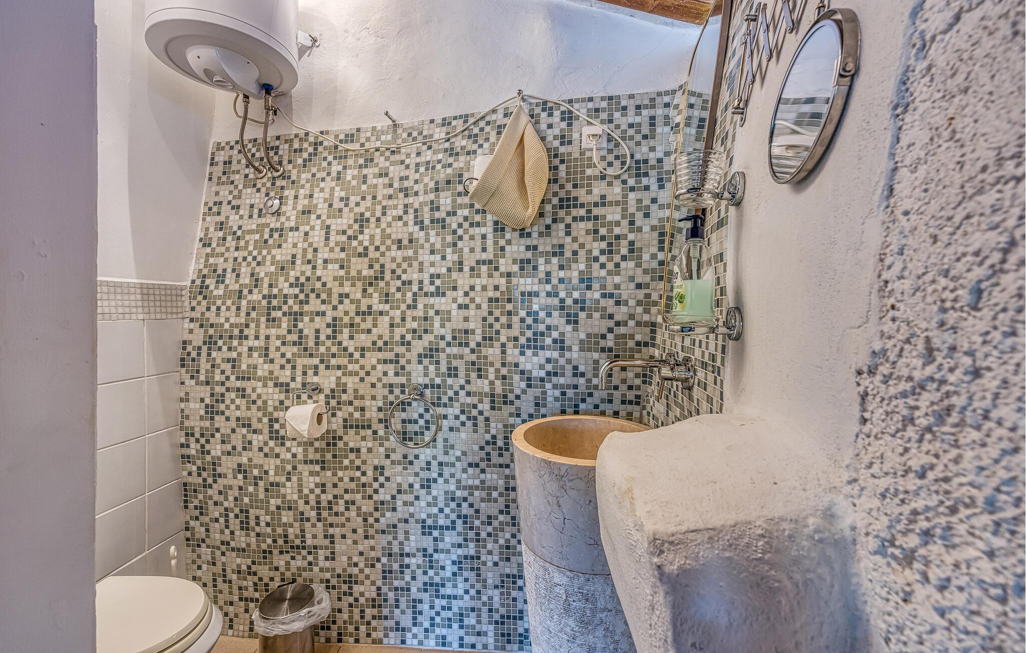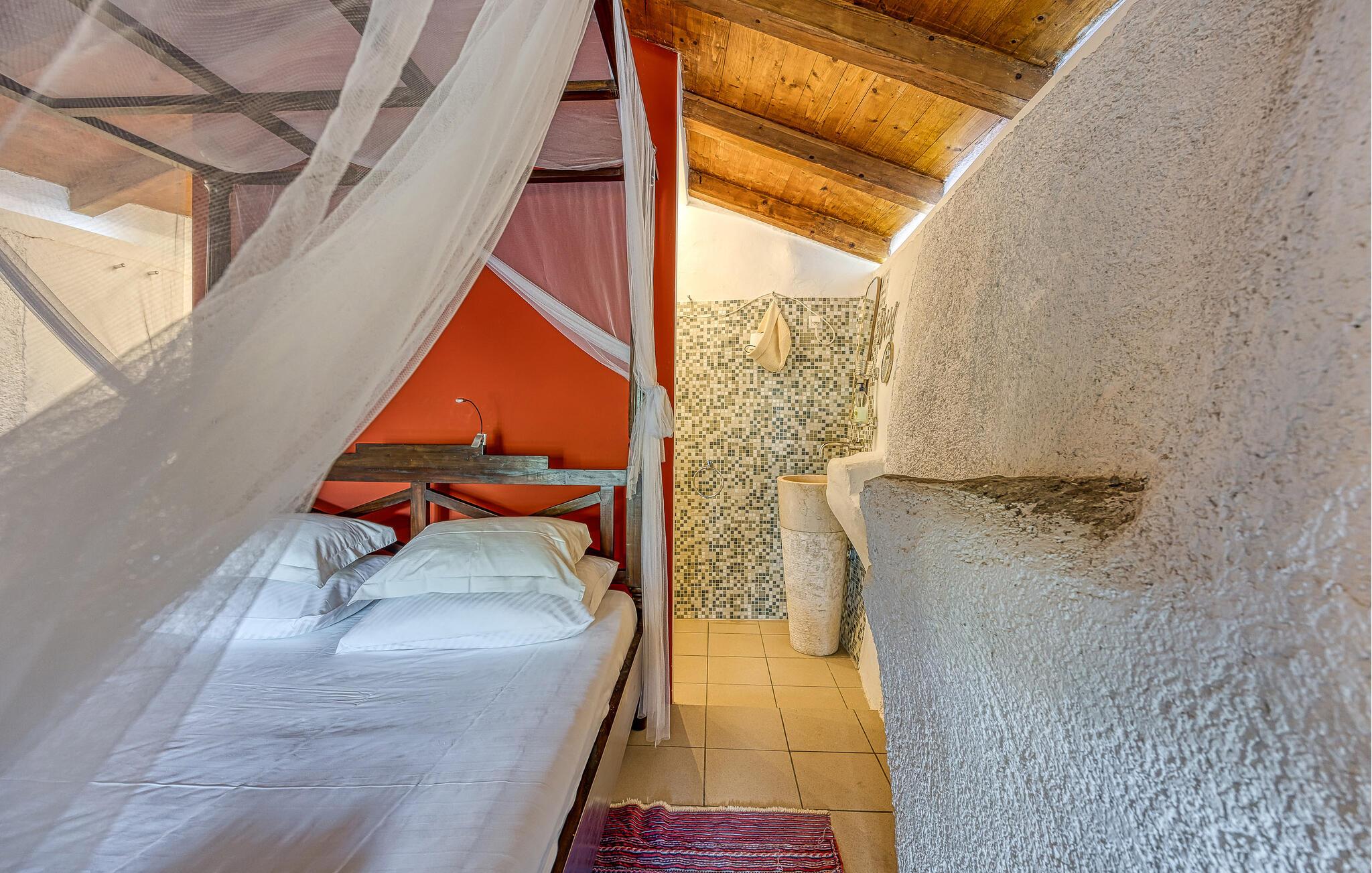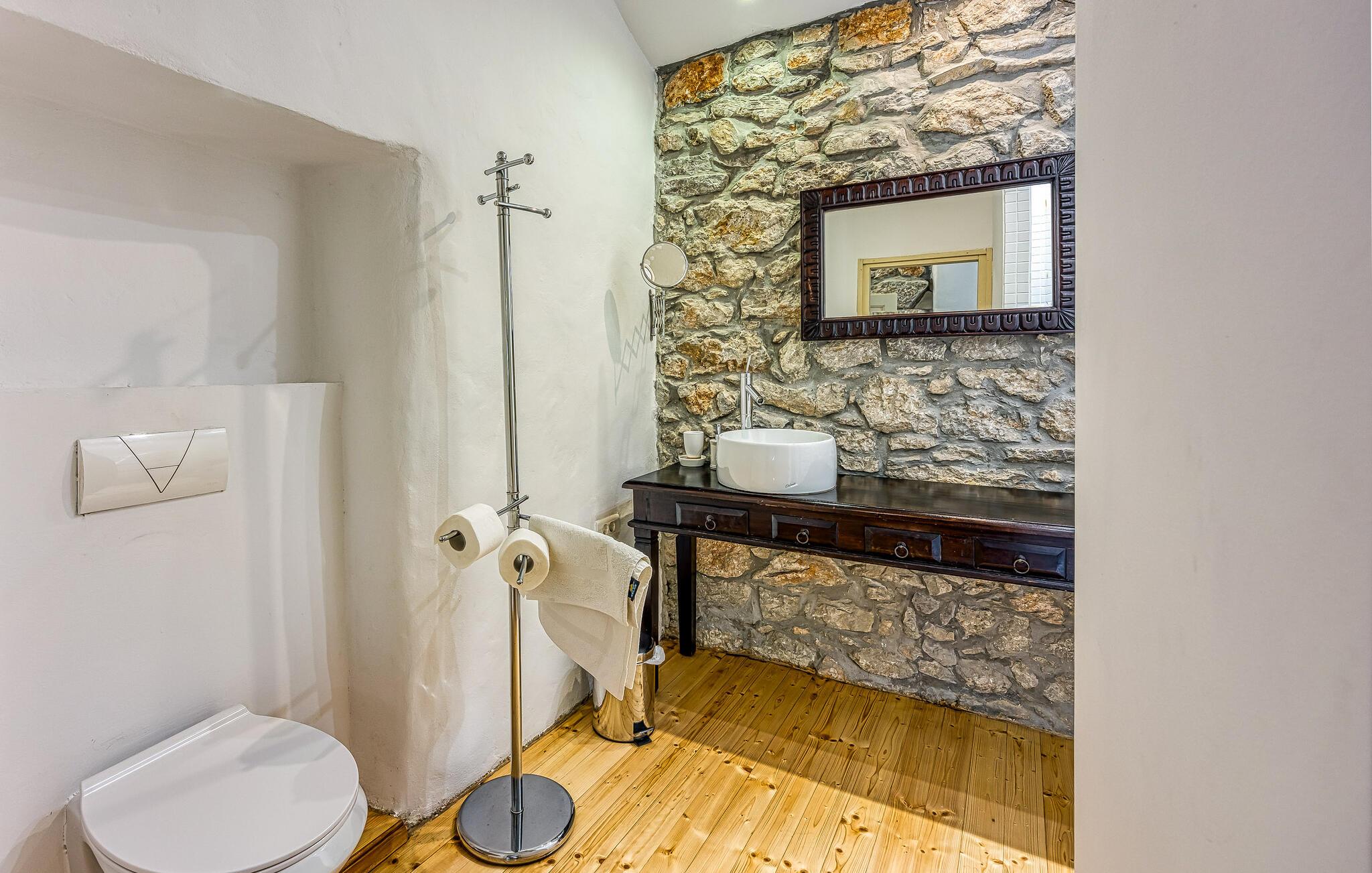 I smukke, grønne omgivelser ligger denne drømmevilla fra 1827, som er renoveret i husets oprindelige stil og indrettet med stor kærlighed til detaljen. Kombinationen af rustik indretning og moderne swimmingpool passer perfekt til denne drøm af en oase. I stueetagen har I det rummelige køkken og stuen, mens de to soveværelser ligger ovenpå. Et af soveværelserne kan I kun komme til ad en udendørs trappe. På den lukkede naturgrund er der desuden både swimmingpool og terrasse. Herfra har I en vidunderlig udsigt ud over havet og den charmerende ø Krk. Det lille hyggelige hus ved siden af byder på endnu et soveværelse med eget badeværelse. Alle værelserne er smagfuldt og traditionelt indrettede. Snup en forfriskende dukkert i poolen, og nyd en kop god kaffe eller en spændende bog på terrassen! Et besøg i byen Krk må varmt anbefales. Især i løbet af sommeren summer byen af mange kunstmalere og orkestre. De andre maleriske steder på øen, f.eks. Vrbnik, Baska, Malinska, Punat og den lille ø Kosljun, bør I bestemt også udforske. Og tag en tur med båd til øerne Rab, Cres eller Losinj. Koljun er en lille ø i bugten Puntarska Draga, som især er kendt for sin kulturarv. I løbet af sommerfestivalen i Krk afholdes der koncerter i byens kloster - det er et must at opleve.