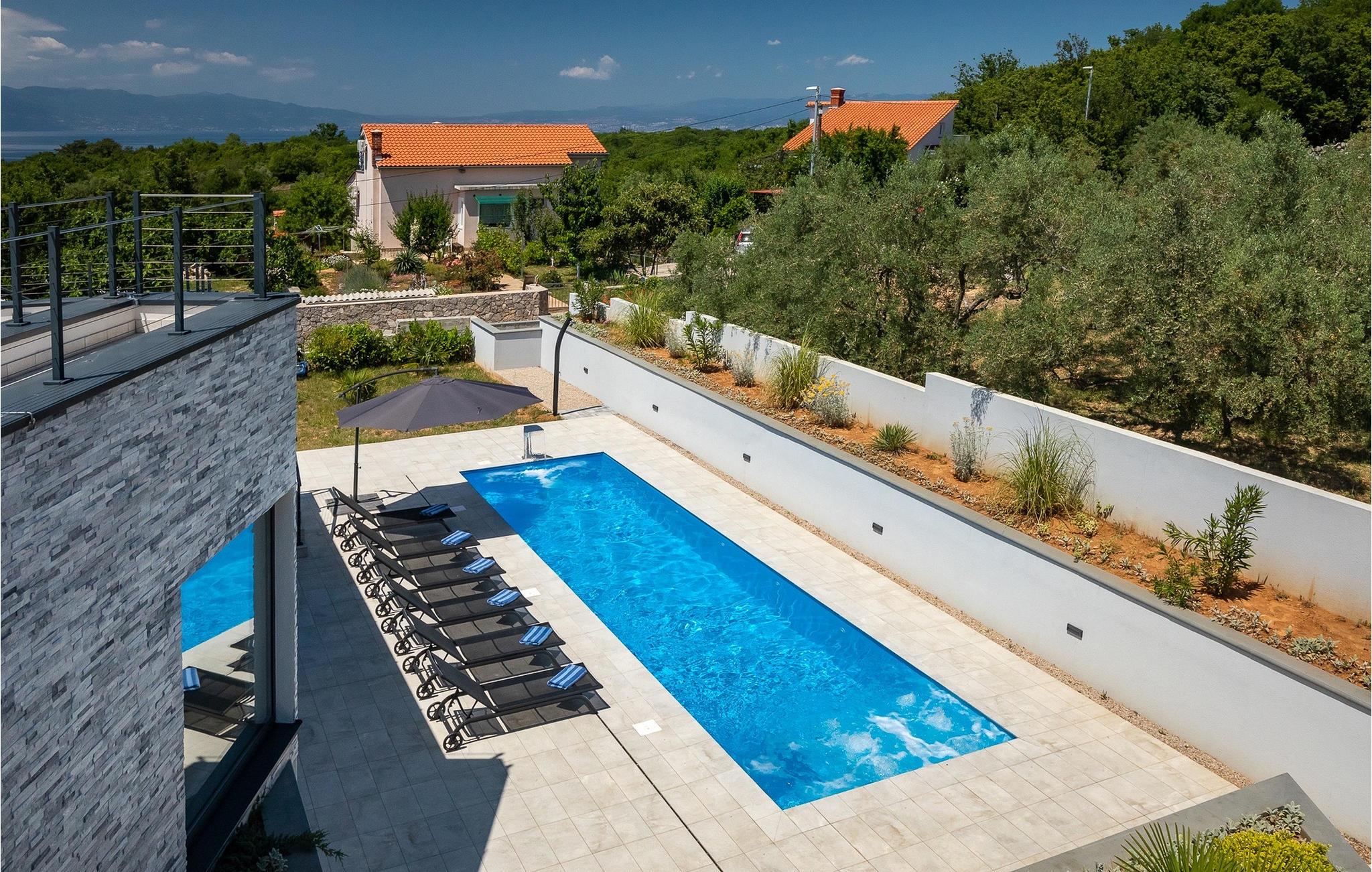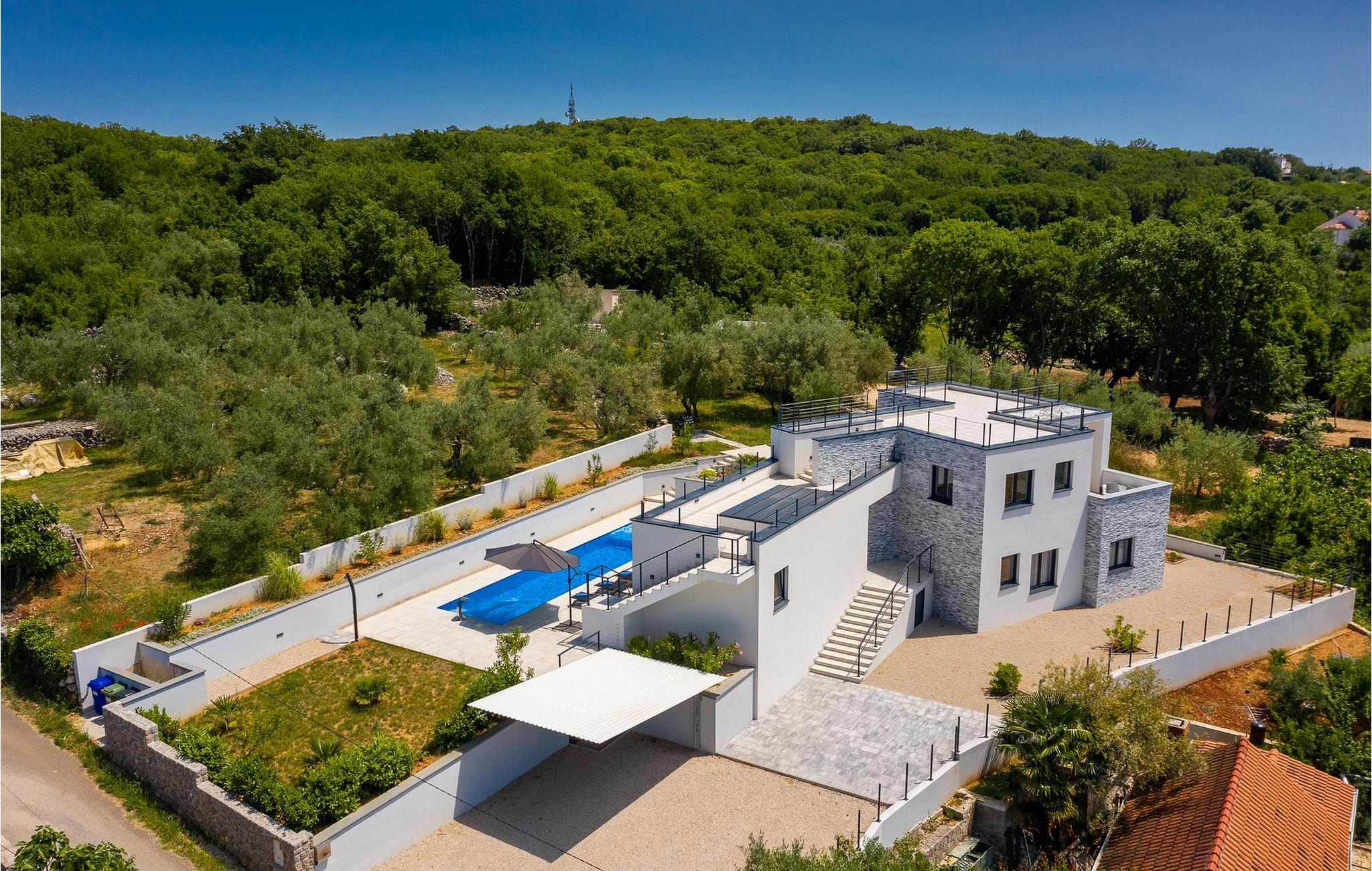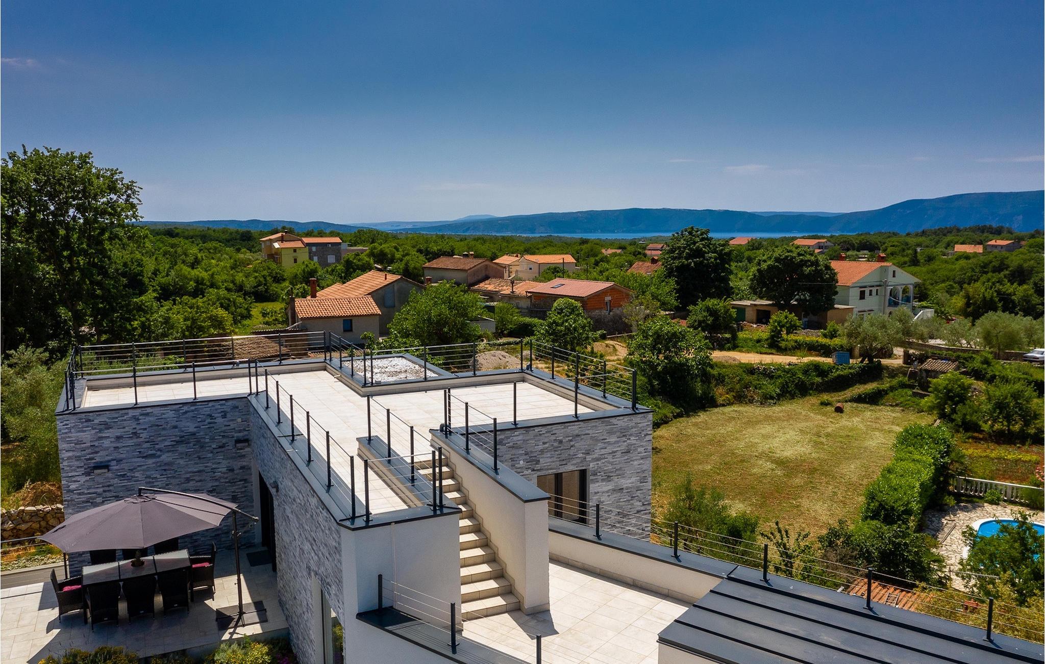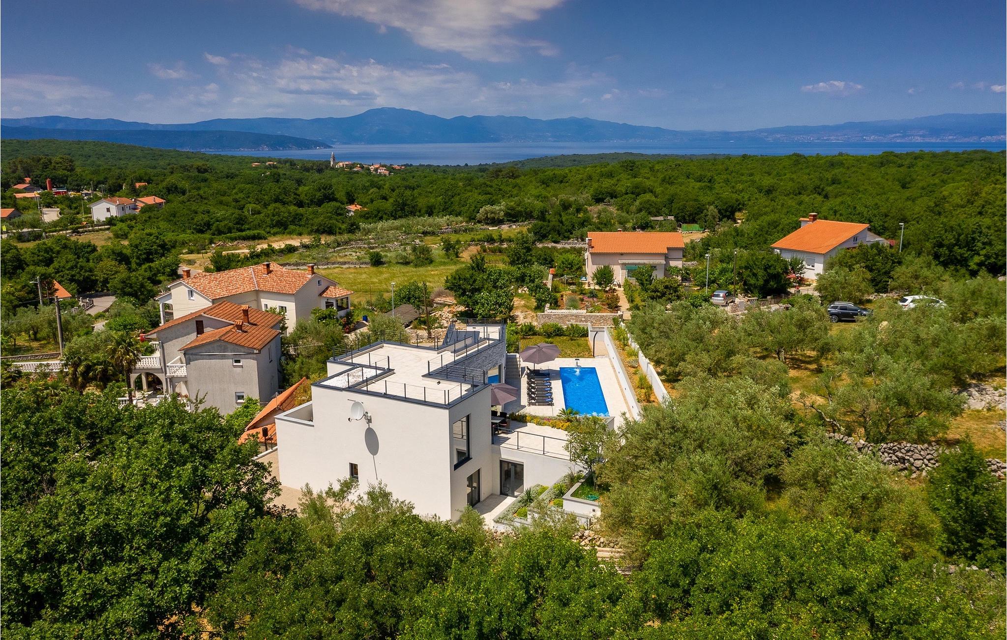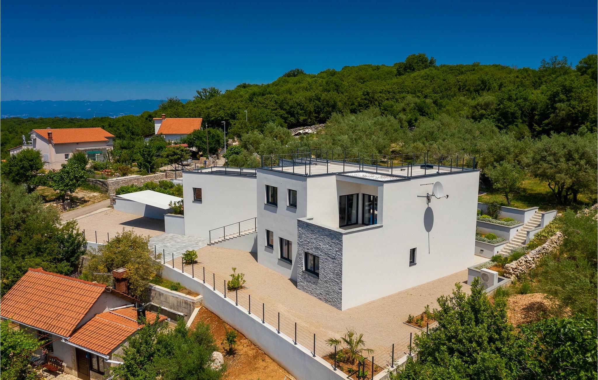 Denne store villa er beliggende på øen Krk, nær turistbyen Malinska. Med i alt 190 kvadratmeter boligareal byder den på plads til op til 6+2 personer og et nænsomt møbleret interiør. Den elegante og rummelige villa er opdelt i 3 etager og giver dig en følelse af hjem. Stueetagen består af 3 smukt indrettede soveværelser med harmoniske farvekombinationer. Et af soveværelserne har eget badeværelse med badekar. På mezzaninen er der et wellness-område med en finsk sauna og en jacuzzi, hvor du kan tilbringe afslappende stunder med din familie og venner. Fra wellnessområdet har du direkte adgang til poolområdet, hvor du kan slappe af på de komfortable liggestole og se børnene hygge sig ved poolen. Anden sal består af et opholdsområde med et fuldt udstyret køkken, en spiseplads med et stort familiebord og en stue med et tv. Få skridt væk ligger den smukke terrasse med en udendørs spiseplads, hvor du kan nyde måltider tilberedt på grillen. I opholdsområdet kan du gøre dig godt tilpas med en kop kaffe og nyde din ferie fuldt ud.Villa Subventus ligger i en lille landsby Bajcici, ikke langt fra turiststedet Malinska på øen Krk. Øen Krk er en af de største øer i Adriaterhavet og er forbundet med fastlandet med en bro. Øen Krk er et meget populært turistmål, der byder på mange turistattraktioner og er et ideelt udgangspunkt for mange udflugter. Vi anbefaler dig at opdage Kvarners skønheder såsom Opatija og Moscenicka Draga, gå langs promenaden Lungo mare og nyde en af de smukkeste solnedgange. Hvis du bare vil slappe af og nyde din ferie, har øen Krk alt hvad du behøver. Nyd de smukke strande i de mange skjulte bugter på øen og det mangfoldige kulinariske tilbud, der vil glæde alle elskere af gastronomi. Udover at være et fantastisk sted for alle hedonister, byder øen Krk på meget mere, såsom adskillige cykel- og vandrestier, dykkersteder og adskillige sportsmuligheder.