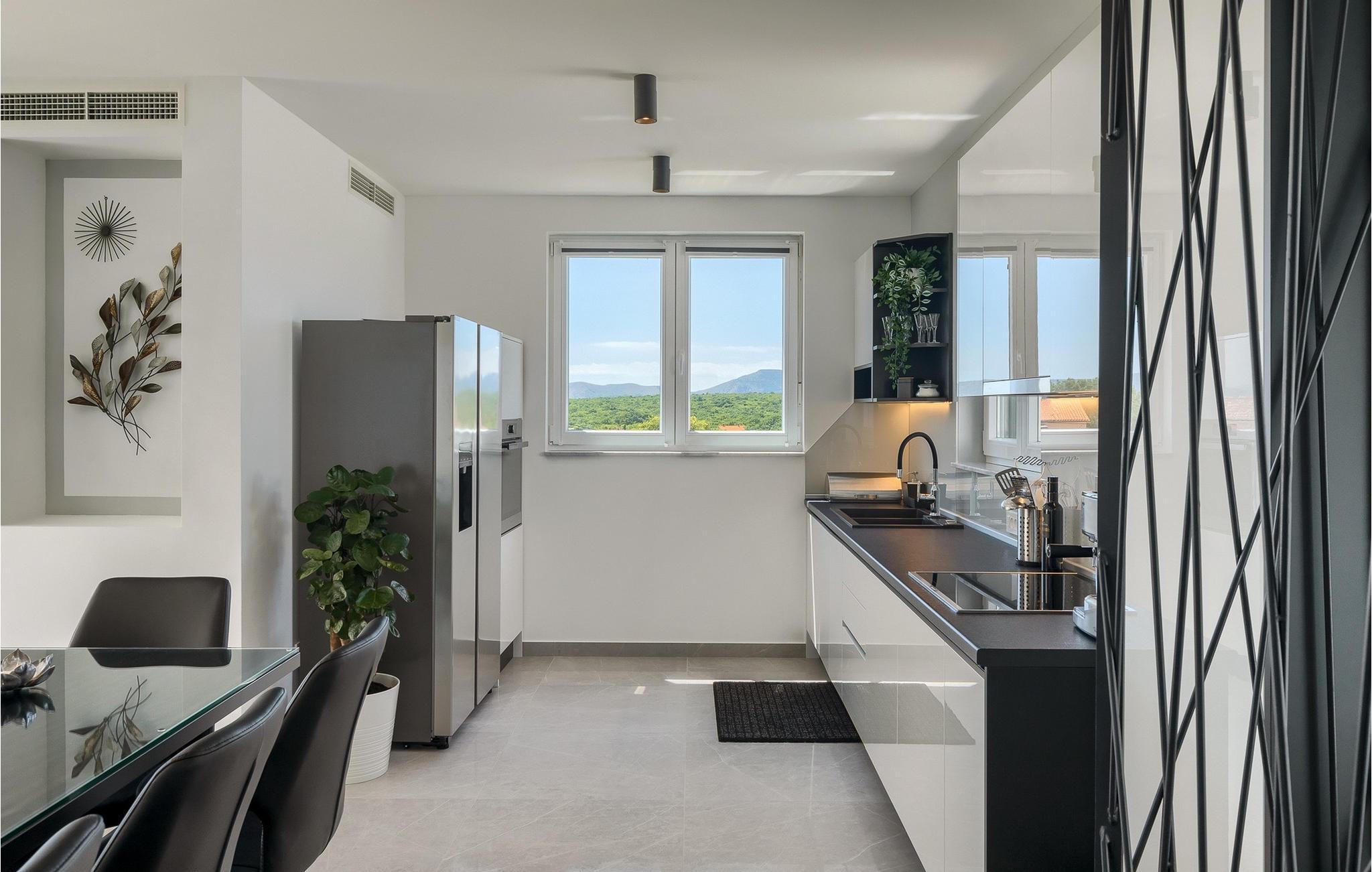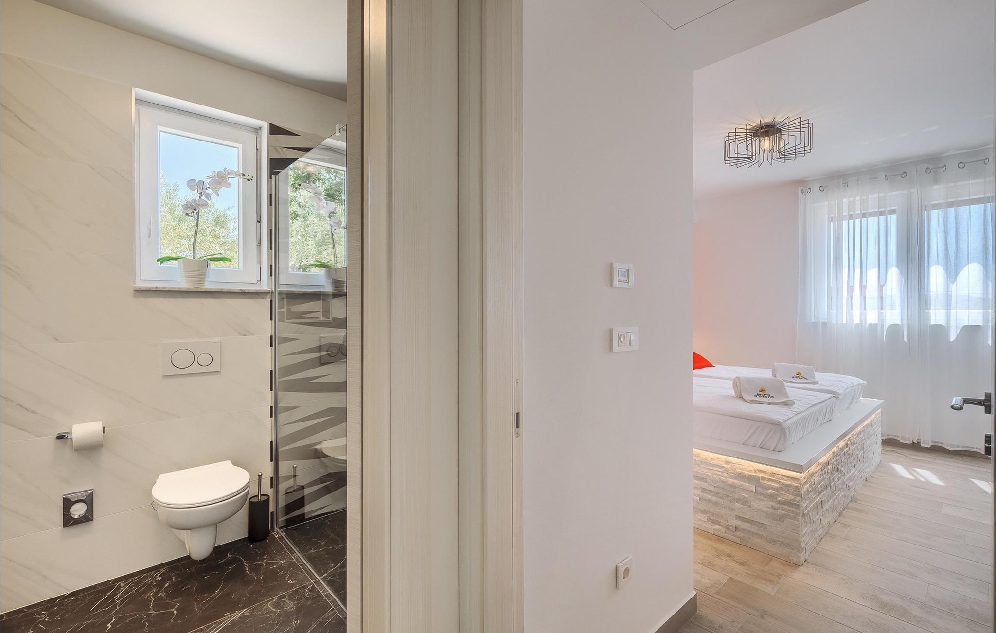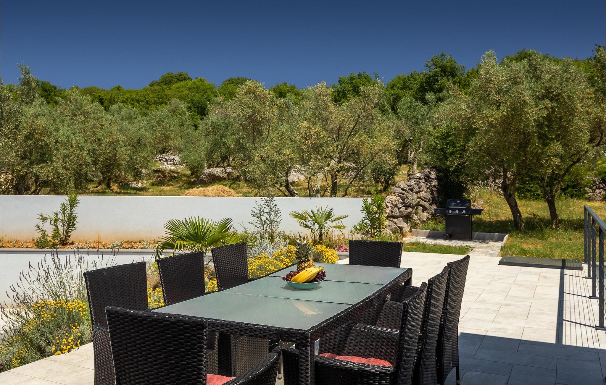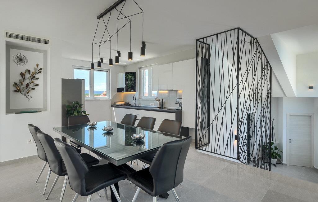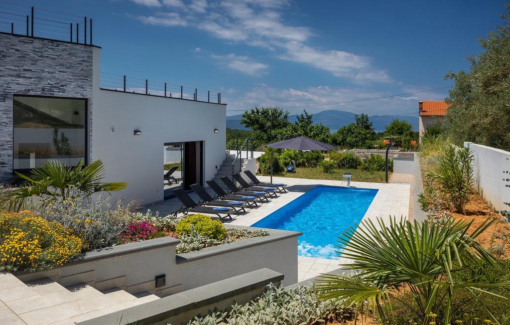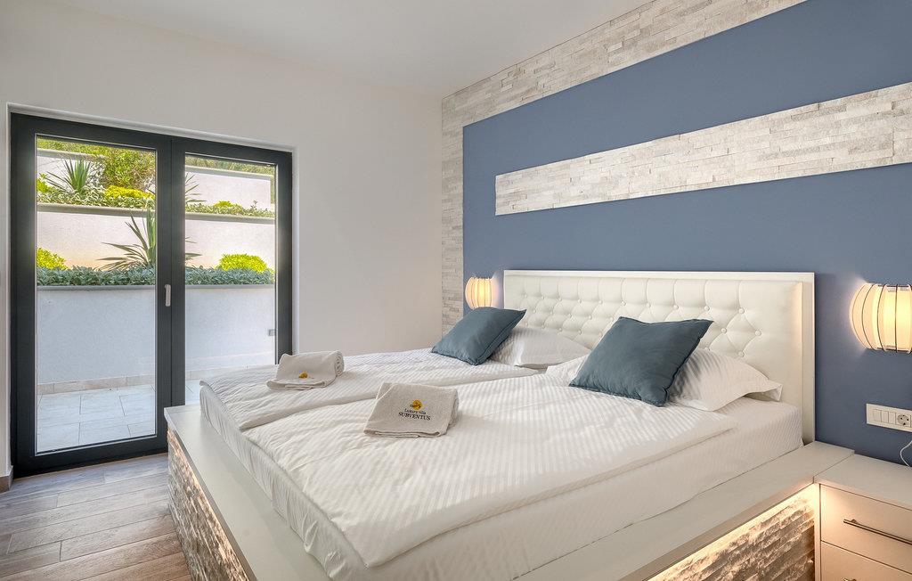 Denne store villa er beliggende på øen Krk, nær turistbyen Malinska. Med i alt 190 kvadratmeter boligareal byder den på plads til op til 6+2 personer og et nænsomt møbleret interiør. Den elegante og rummelige villa er opdelt i 3 etager og giver dig en følelse af hjem. Stueetagen består af 3 smukt indrettede soveværelser med harmoniske farvekombinationer. Et af soveværelserne har eget badeværelse med badekar. På mezzaninen er der et wellness-område med en finsk sauna og en jacuzzi, hvor du kan tilbringe afslappende stunder med din familie og venner. Fra wellnessområdet har du direkte adgang til poolområdet, hvor du kan slappe af på de komfortable liggestole og se børnene hygge sig ved poolen. Anden sal består af et opholdsområde med et fuldt udstyret køkken, en spiseplads med et stort familiebord og en stue med et tv. Få skridt væk ligger den smukke terrasse med en udendørs spiseplads, hvor du kan nyde måltider tilberedt på grillen. I opholdsområdet kan du gøre dig godt tilpas med en kop kaffe og nyde din ferie fuldt ud.Villa Subventus ligger i en lille landsby Bajcici, ikke langt fra turiststedet Malinska på øen Krk. Øen Krk er en af de største øer i Adriaterhavet og er forbundet med fastlandet med en bro. Øen Krk er et meget populært turistmål, der byder på mange turistattraktioner og er et ideelt udgangspunkt for mange udflugter. Vi anbefaler dig at opdage Kvarners skønheder såsom Opatija og Moscenicka Draga, gå langs promenaden Lungo mare og nyde en af de smukkeste solnedgange. Hvis du bare vil slappe af og nyde din ferie, har øen Krk alt hvad du behøver. Nyd de smukke strande i de mange skjulte bugter på øen og det mangfoldige kulinariske tilbud, der vil glæde alle elskere af gastronomi. Udover at være et fantastisk sted for alle hedonister, byder øen Krk på meget mere, såsom adskillige cykel- og vandrestier, dykkersteder og adskillige sportsmuligheder.