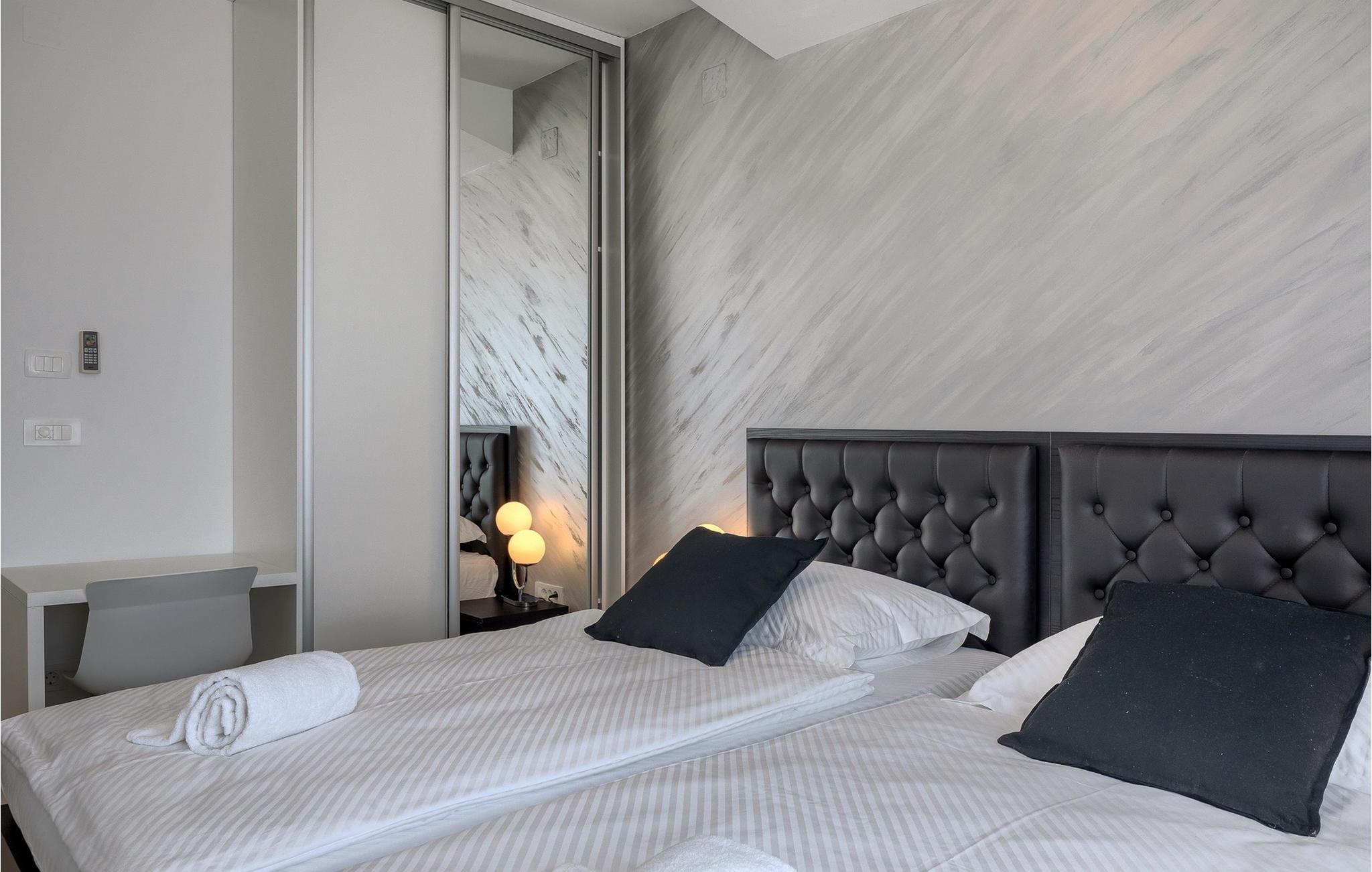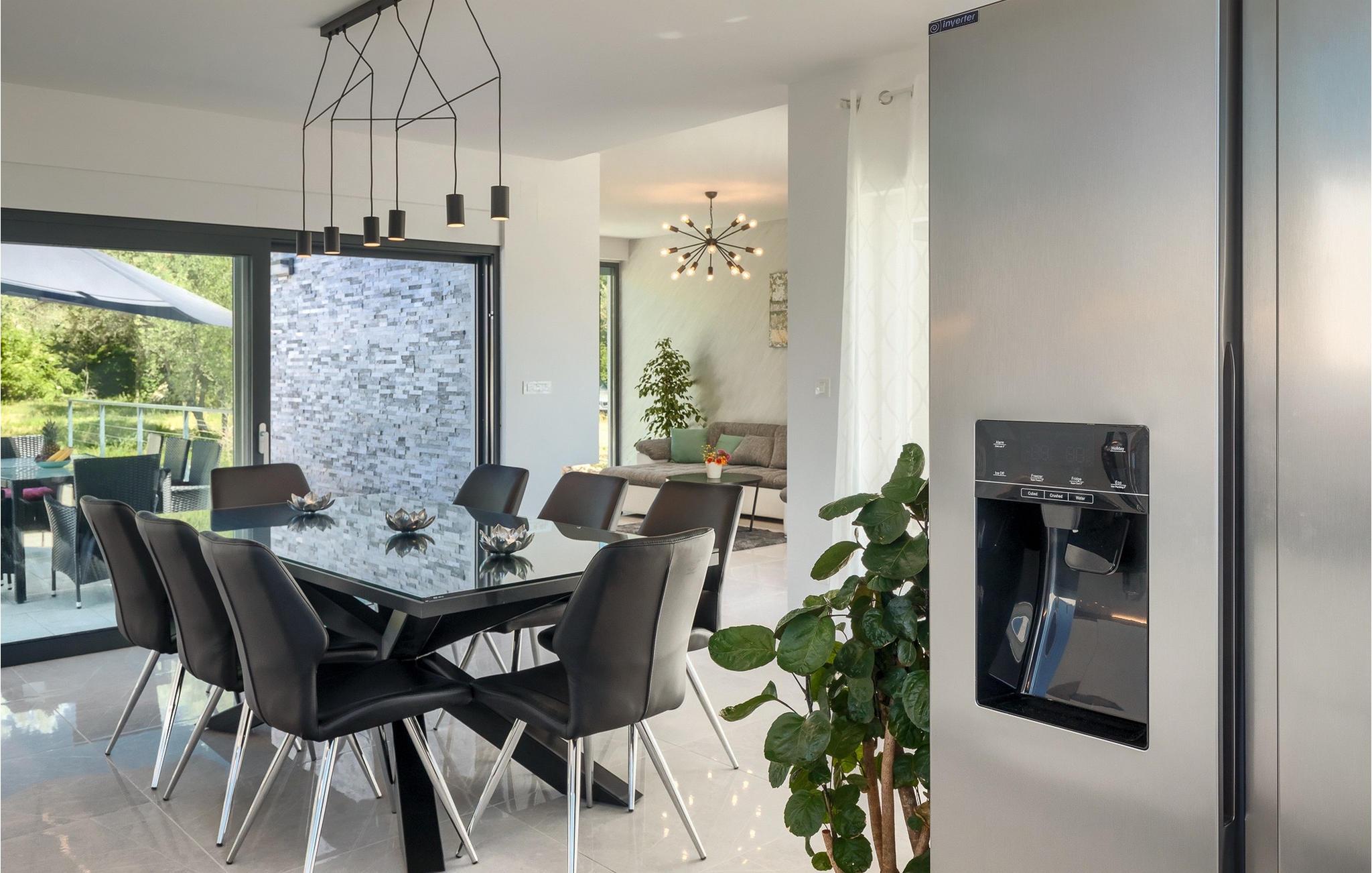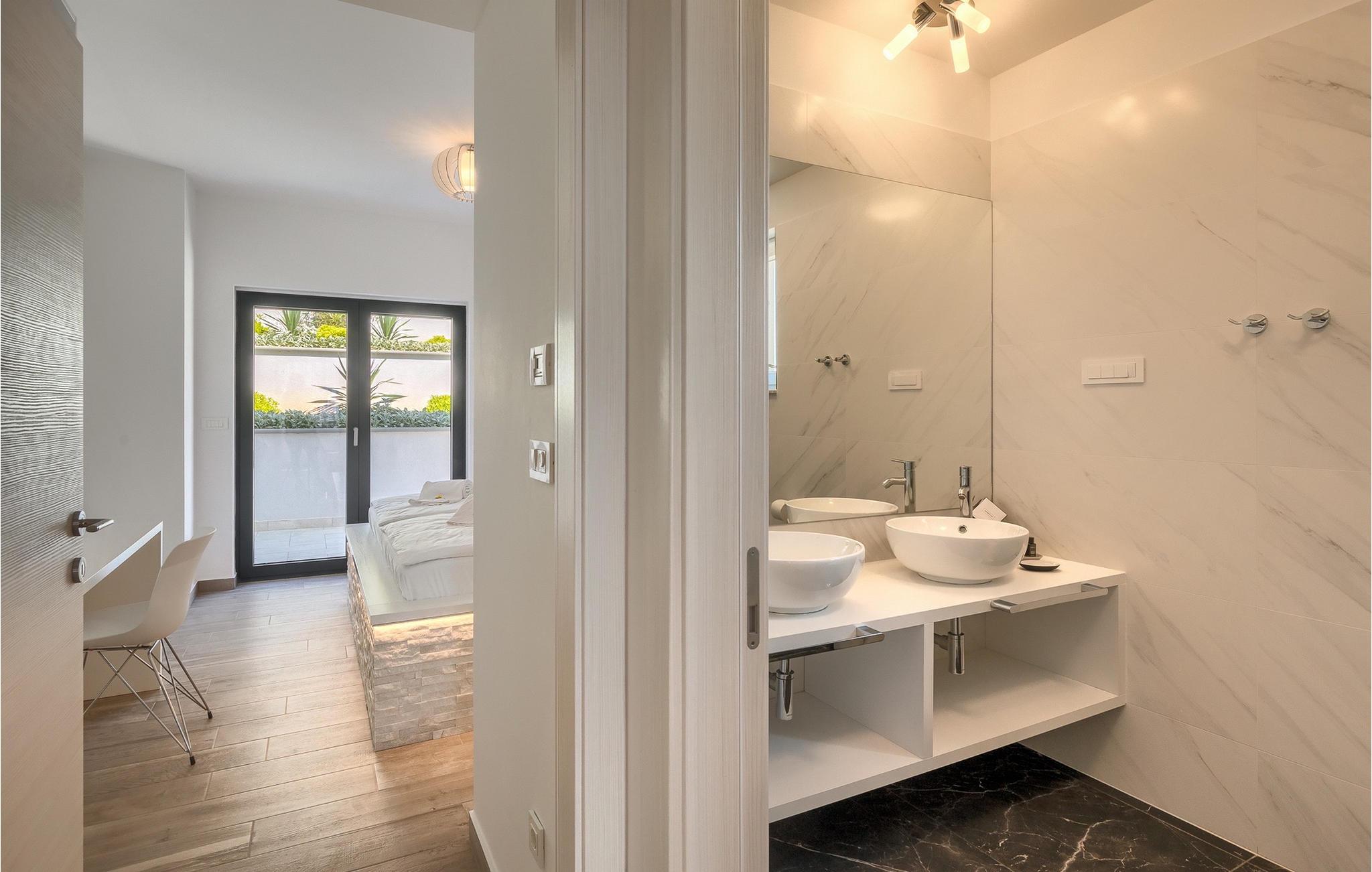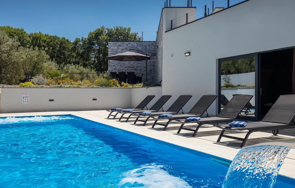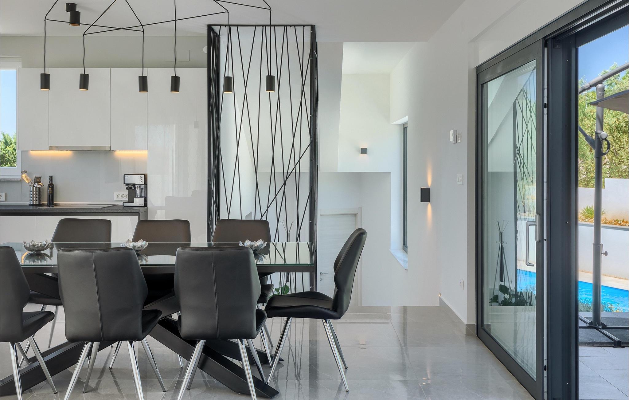 Denne store villa er beliggende på øen Krk, nær turistbyen Malinska. Med i alt 190 kvadratmeter boligareal byder den på plads til op til 6+2 personer og et nænsomt møbleret interiør. Den elegante og rummelige villa er opdelt i 3 etager og giver dig en følelse af hjem. Stueetagen består af 3 smukt indrettede soveværelser med harmoniske farvekombinationer. Et af soveværelserne har eget badeværelse med badekar. På mezzaninen er der et wellness-område med en finsk sauna og en jacuzzi, hvor du kan tilbringe afslappende stunder med din familie og venner. Fra wellnessområdet har du direkte adgang til poolområdet, hvor du kan slappe af på de komfortable liggestole og se børnene hygge sig ved poolen. Anden sal består af et opholdsområde med et fuldt udstyret køkken, en spiseplads med et stort familiebord og en stue med et tv. Få skridt væk ligger den smukke terrasse med en udendørs spiseplads, hvor du kan nyde måltider tilberedt på grillen. I opholdsområdet kan du gøre dig godt tilpas med en kop kaffe og nyde din ferie fuldt ud.Villa Subventus ligger i en lille landsby Bajcici, ikke langt fra turiststedet Malinska på øen Krk. Øen Krk er en af de største øer i Adriaterhavet og er forbundet med fastlandet med en bro. Øen Krk er et meget populært turistmål, der byder på mange turistattraktioner og er et ideelt udgangspunkt for mange udflugter. Vi anbefaler dig at opdage Kvarners skønheder såsom Opatija og Moscenicka Draga, gå langs promenaden Lungo mare og nyde en af de smukkeste solnedgange. Hvis du bare vil slappe af og nyde din ferie, har øen Krk alt hvad du behøver. Nyd de smukke strande i de mange skjulte bugter på øen og det mangfoldige kulinariske tilbud, der vil glæde alle elskere af gastronomi. Udover at være et fantastisk sted for alle hedonister, byder øen Krk på meget mere, såsom adskillige cykel- og vandrestier, dykkersteder og adskillige sportsmuligheder.