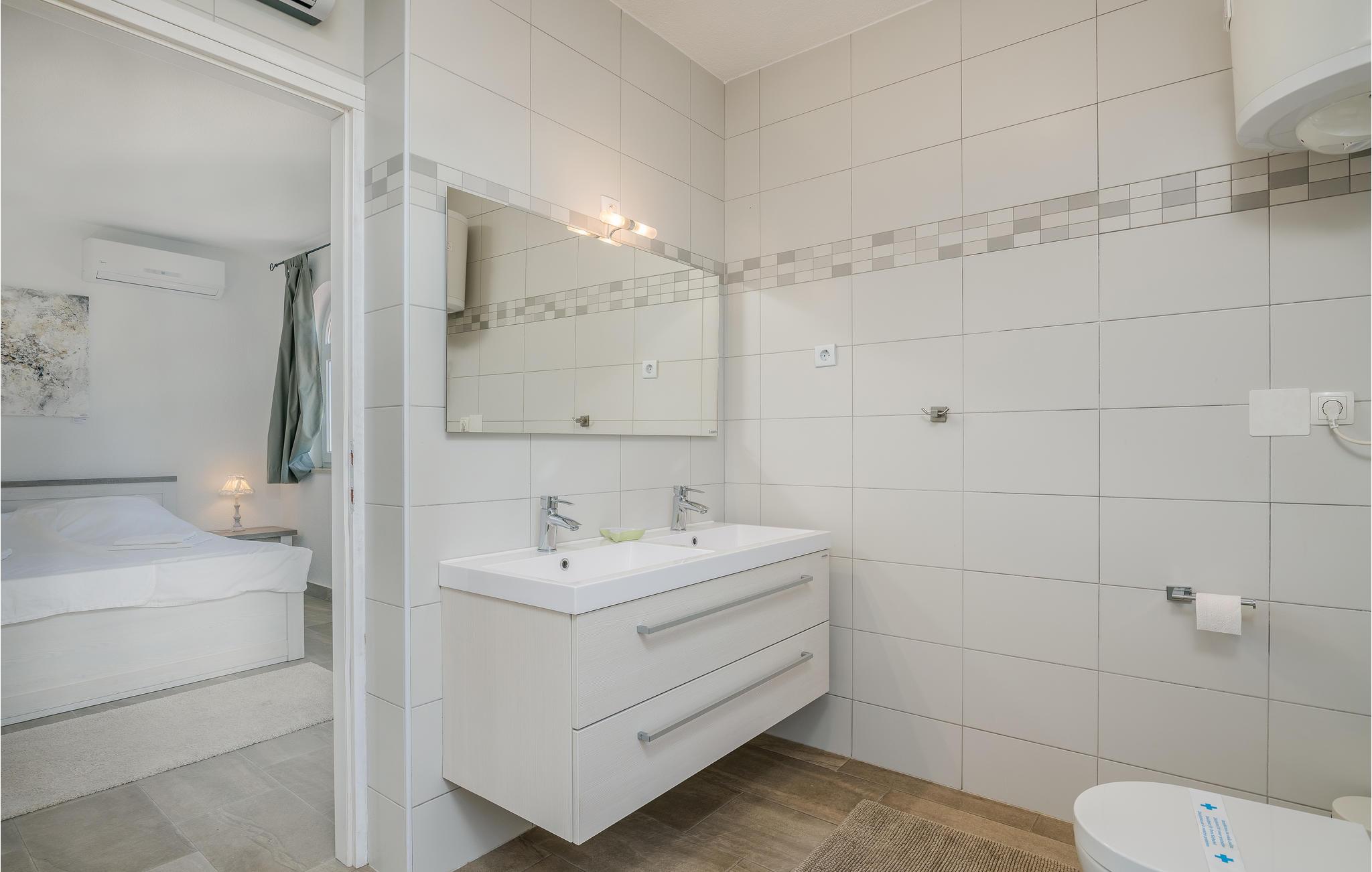 Hold den velfortjente ferie i Barusici, som er en lille kystby nabo til Malinska, i dette smagfulde feriehus med sin egen pool. Fra hovedvejen fører en ca. 130 m lang grusvej op til feriehuset. I haven er der pool og en åben terrasse til solbad, grillen står på terrassen med havemøbler, hvor I kan spise sammen. I stueplan er der udgang direkte til den store overdækkede terrasse. Husets ejer, driver en dykkerskole i Krk her kan I få 10 % rabat. Hele øen Krk bobler af kultur, underholdning og mange muligheder for at dyrke sport. Skal der være fart og feltet så besøg gokartbanen, prøv vandskiliften i Punta – lidt mere roligt er det at wakeboarde. I kan også besøge en romantisk vinkælder i Vrbnik. Smag på øens mange specialiteter og vine.