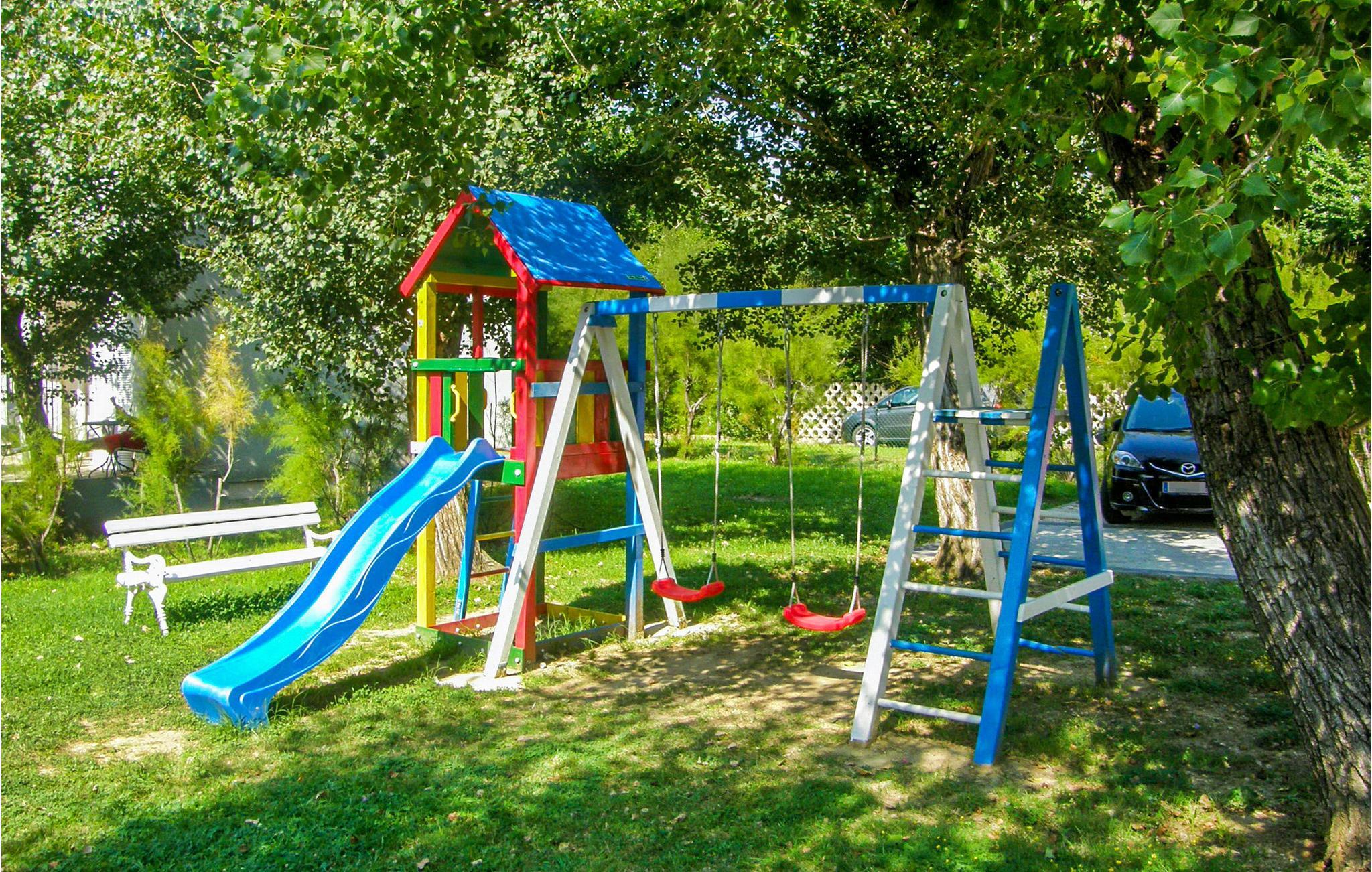 Lejligheden ligger på en indhegnet grund med en stor fælleshave, hvor der er flere boligenheder. I haven er der mulighed for at benytte den fælles grill og havemøblerne. Børnene vil elske gyngerne, vippen og rutsjebanen. Lejlighedens størrelse og indretning gør den ideel til en familie med børn eller to par.