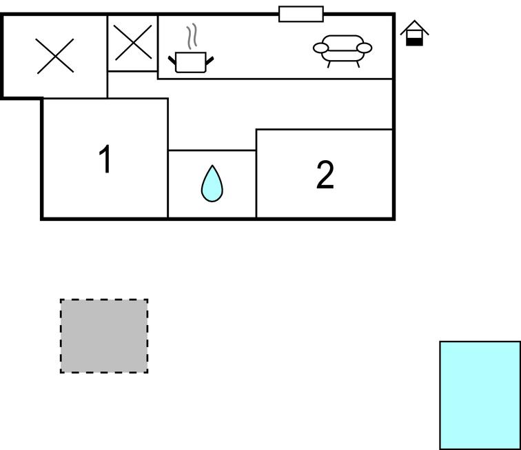 Opholdsstue/køkken - 2 Sovepladser. (Sofa, madras eller lignende).