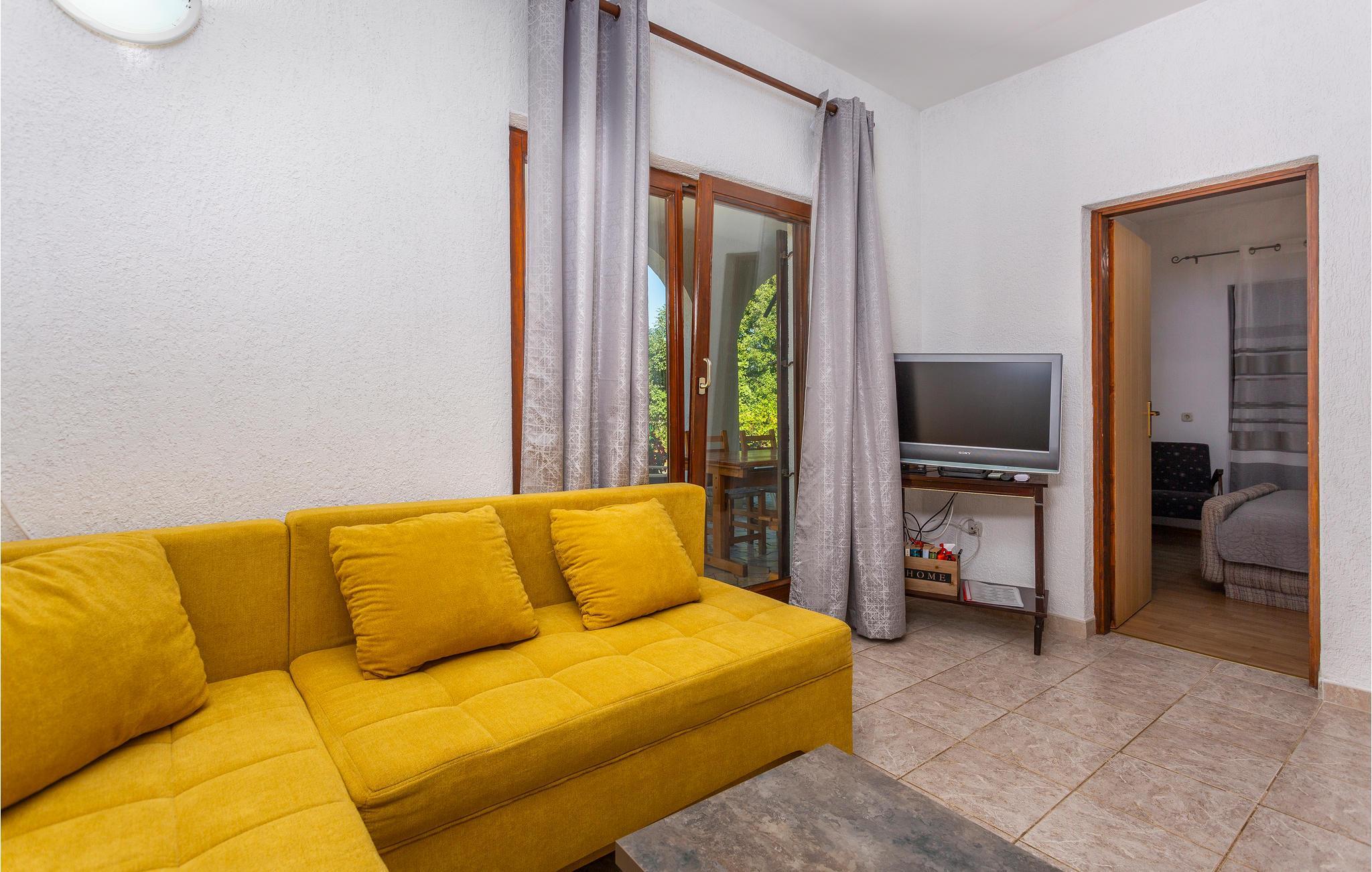 Praktisk indrettet stueplanslejlighed i smukke grønne omgivelser. På de varme sommerdage kan I slappe af på terrassen. På den fælles grill kan I konkurrere om at lave de lækreste retter, mens børnene tumler sig i leg i haven. Tag på udflugter i omgivelserne med skønne bugter, hvor I kan vælge mellem kies- og sandstrande til lange afslappede badedage. Gå lange ture eller cykl gennem naturen på hele øen. Besøg også kendte feriebyer som Malinska og byen Krk, hvor der er mange underholdende arrangementer gennem sommeren og med utallige indbydende restauranter.