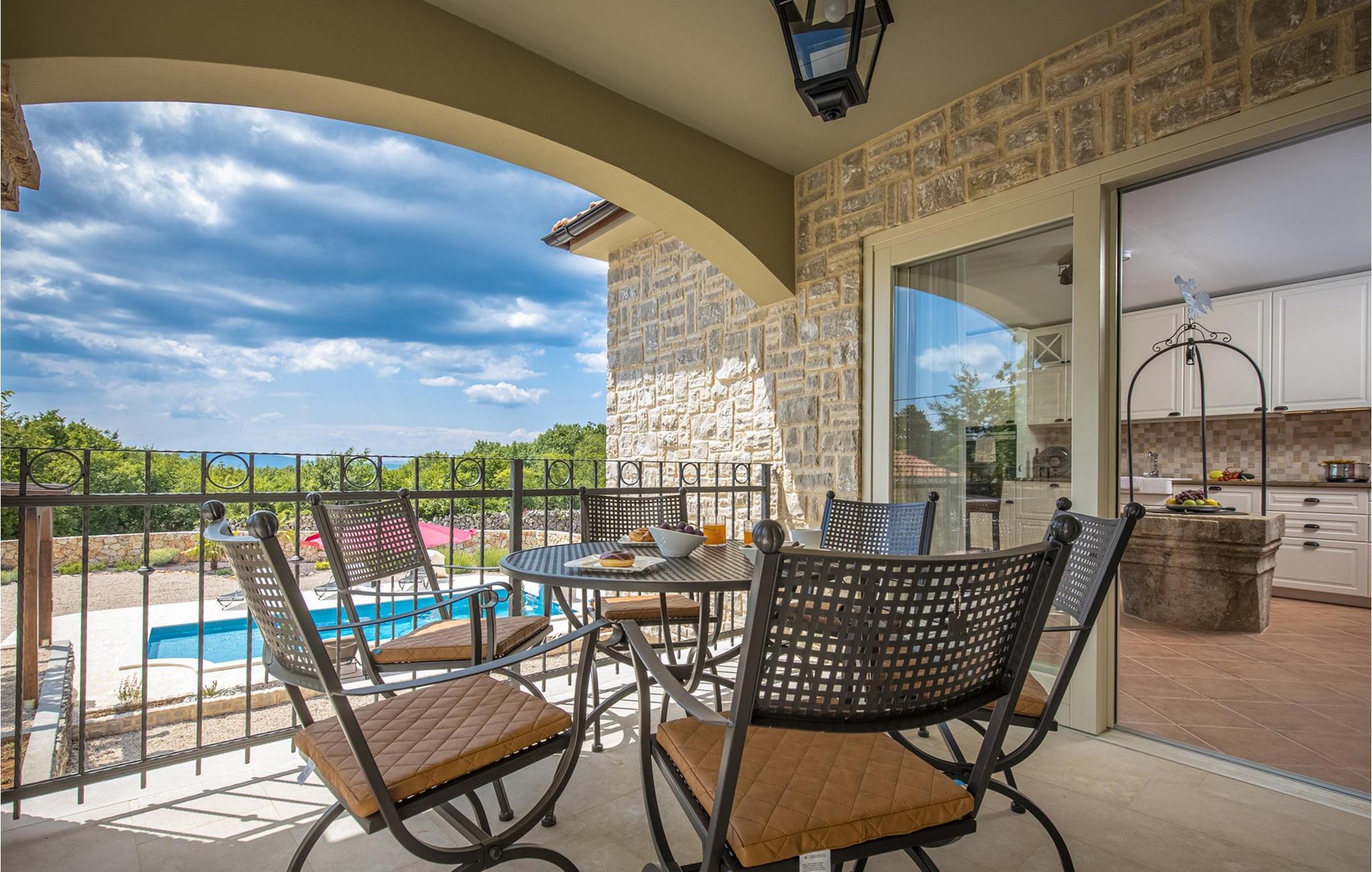 Villa Miry's Hideaway ligger på den største kroatiske ø Krk i Dobrinj. Denne nybyggede, imponerende kombination af rustik og moderne stil giver optimal plads til seks og maksimalt syv gæster. På boligarealet på 170 m2 er der tre flotte stilfulde soveværelser med tre badeværelser, to separate toiletter, et fuldt udstyret køkken, en hyggelig spisestue med pejs og en hyggelig stue. Hele interiøret er omhyggeligt dekoreret med velvalgte rustikke møbler, og hvert værelse er indlagt med sten, hvilket giver indtryk af en hjemlig, varm atmosfære, ideel til afslapning. Denne villa har to skønne terrasser med siddepladser, designet til at nyde udsigten over havet og den smukke natur, der omgiver det. Hele villaens område er airconditioneret, har trådløst internet i hvert hjørne af huset, privat parkering og er fuldt udstyret med alle apparater, som du måtte have brug for under din ferie. Du kan også hygge dig med et spil bordfodbold etc. Rigt kabel/satellit-tv-program. I den smukt anlagte gårdhave omgivet af en stenmur, kan du køle af i poolen og slappe af på de omkringliggende liggestole, eller nyde din tid med familie eller venner, der tilbereder måltider på den udendørs grill. Brug dit ophold i Villa Miry Hideaway til at udforske øen Krk, kendt som Solens og Vinens Gyldne Ø, stifte bekendtskab med det rige gastronomiske, kulturelle, kunstneriske og turistmæssige tilbud og finde ud af, hvorfor denne perle Kvarner er en populær destination for tusinder af turister. Bemærk venligst, at denne ejendom ikke accepterer ungdomsgrupper eller polterabends. En ungdomsgruppe i denne ejendom består af personer under 30 år. Book ikke denne ejendom, hvis du er en ungdomsgruppe eller polterabend, da din reservation vil blive afvist efter reservationen, hvilket også kan være tilfældet ved ankomst til overnatningsstedet eller under dit ophold, og du vil ikke modtage en refusion.