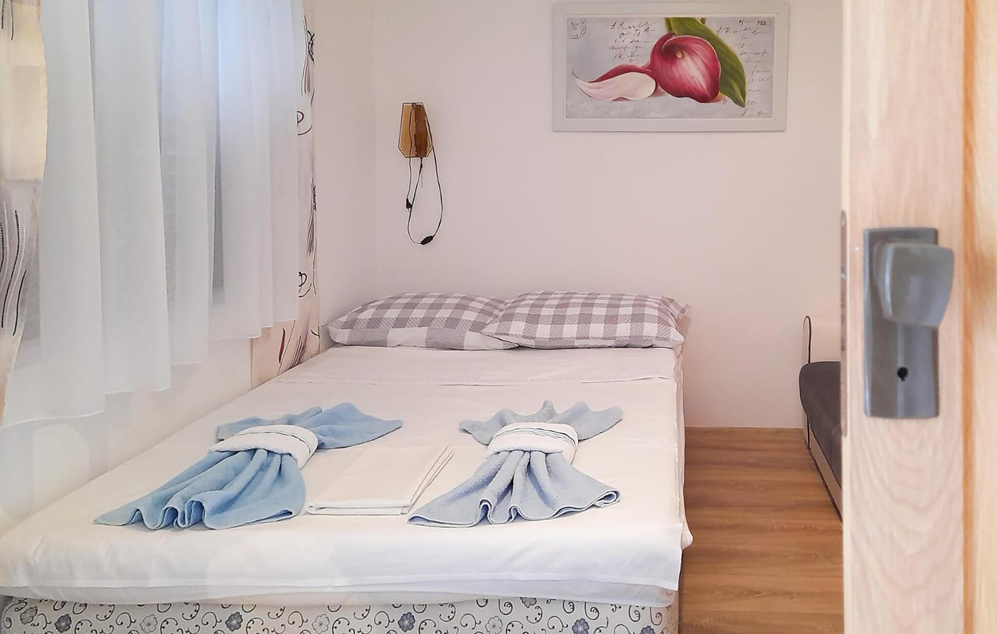 Tilbring en fredelig og behagelig ferie i den lille ø-by Gabonjin på den gyldne ø Krk. I dette familiehus er der 3 mindre lejligheder med hver sin overdækkede terrasse. Haven er indhegnet, grøn og fuld af blomster. Den venlige vært bor i stueetagen i sin lejlighed og vil være diskret og hjælpe jer med alt, hvad I har brug for. De har en indbygget fælles grill, hvor I kan tilberede lækre grillretter i en hyggelig atmosfære om aftenen. Atmosfæren i huset er hyggelig og behagelig.