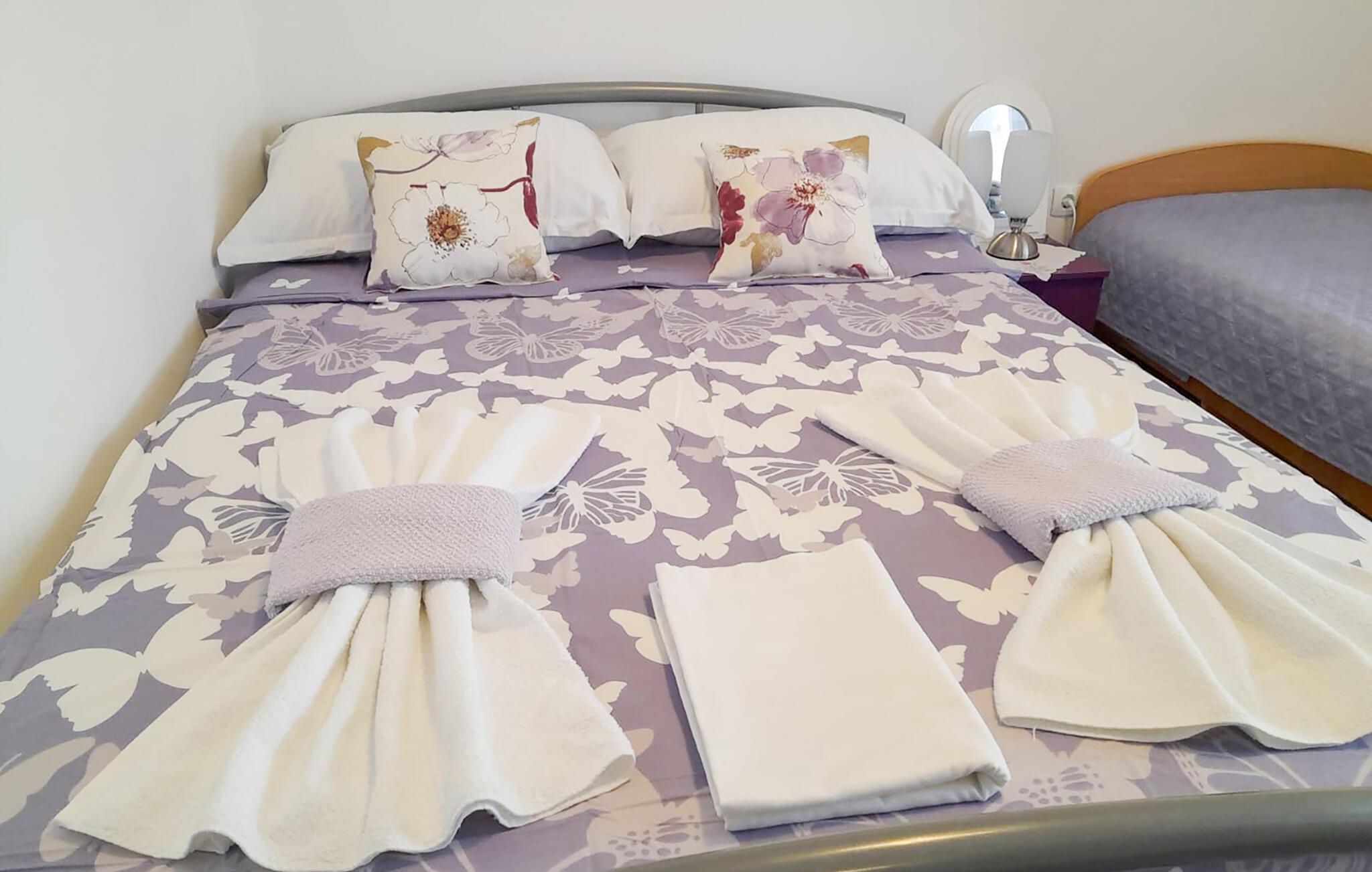 Tilbring en fredelig og behagelig ferie i den lille ø-by Gabonjin på den gyldne ø Krk. I dette familiehus er der 3 mindre lejligheder med hver sin overdækkede terrasse. Haven er indhegnet, grøn og fuld af blomster. Den venlige vært bor i stueetagen i sin lejlighed og vil være diskret og hjælpe jer med alt. De har en indbygget fælles grill, hvor I kan tilberede lækre grillretter i en hyggelig atmosfære om aftenen. Atmosfæren i huset er hyggelig og behagelig.