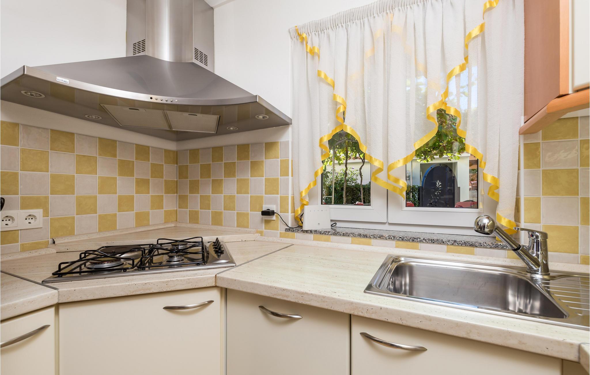 i en lille by, Garica, ligger dette rækkehus med et dejligt anlagt udeområde og en pool, som feriegæsterne må bruge. I har også to overdækkede terrasser; på den ene finder I et komplet udstyret udekøkken, den anden terrasse er direkte ved poolen. Stueetagen består af et pænt indrettet opholdsområde, soveværelserne ligger på første og anden sal. De nærmeste strande og feriebyerne Baska, Krk og Malinska med deres fritidsaktiviteter når I hurtigt i bil.