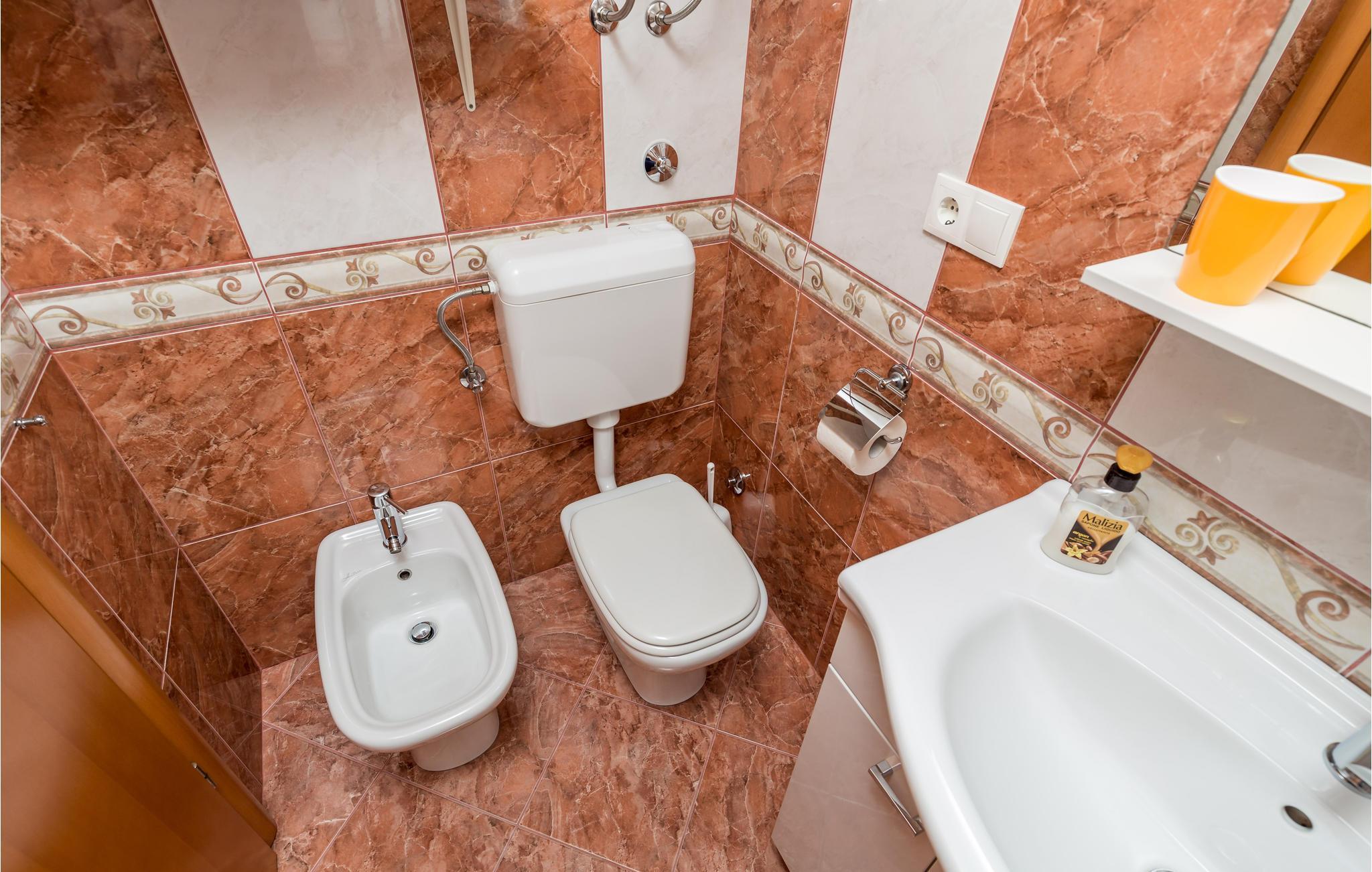 Badeværelse (nr. 1) - WC. Varmt og koldt vand. Bruser