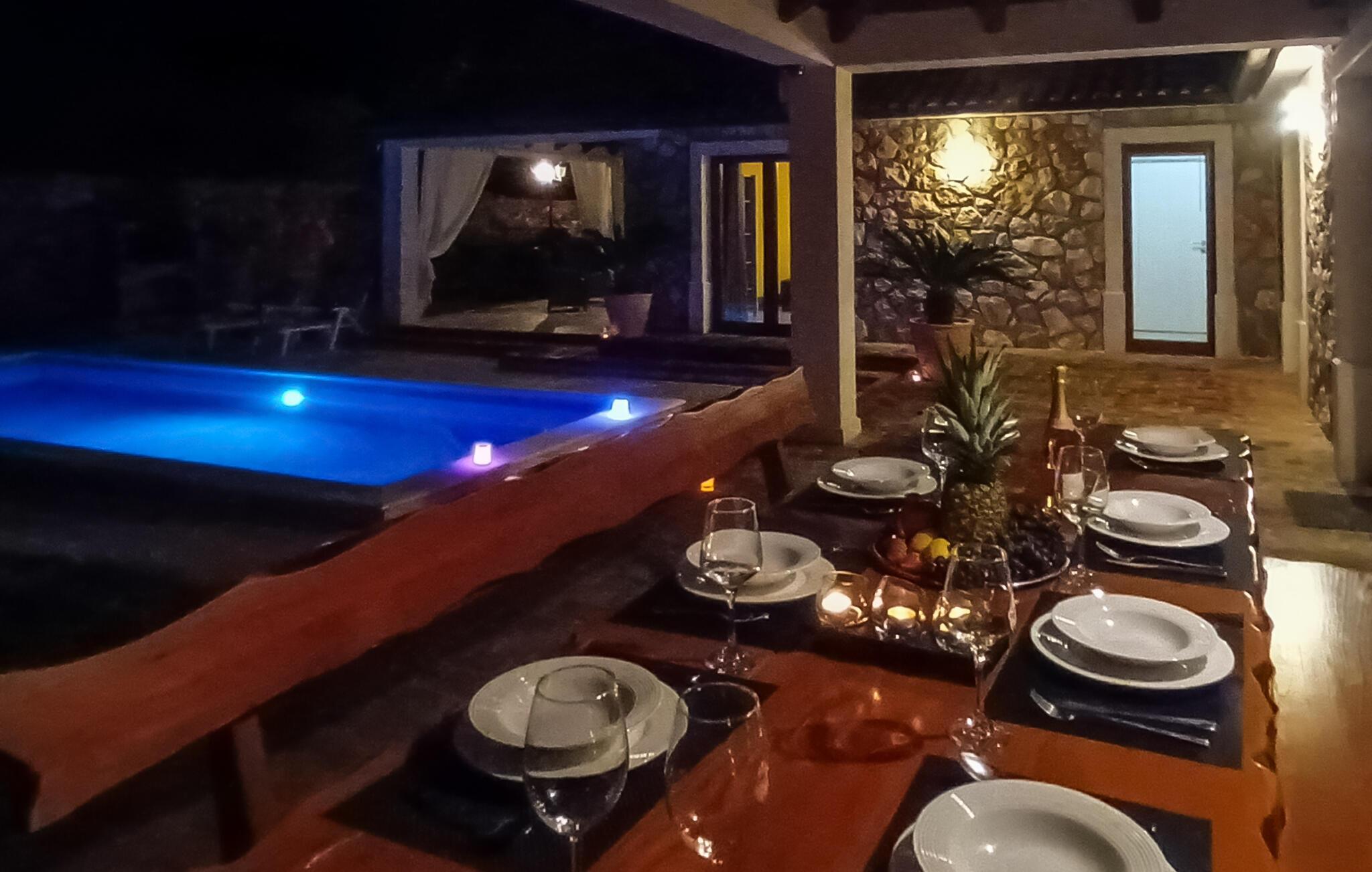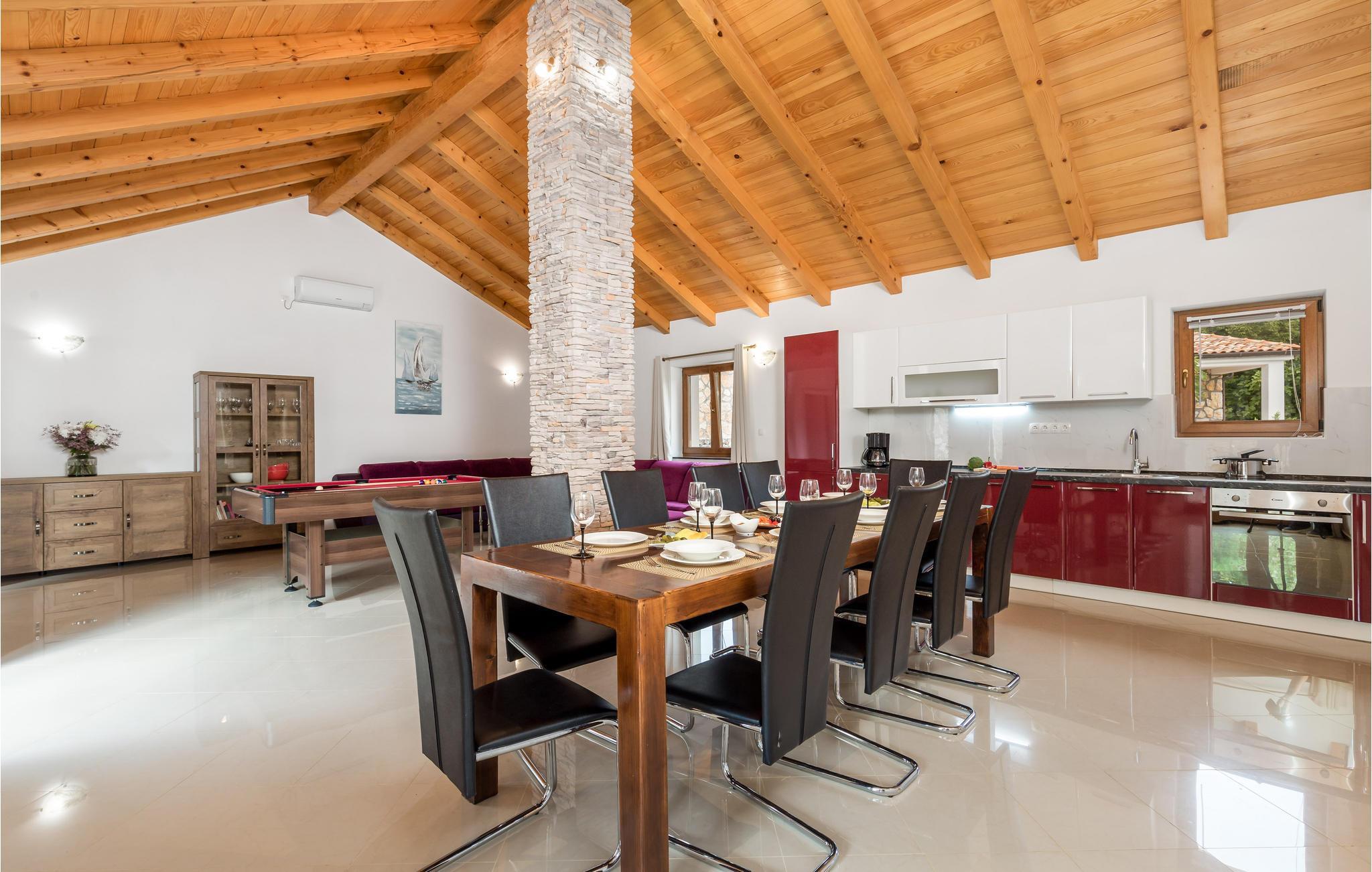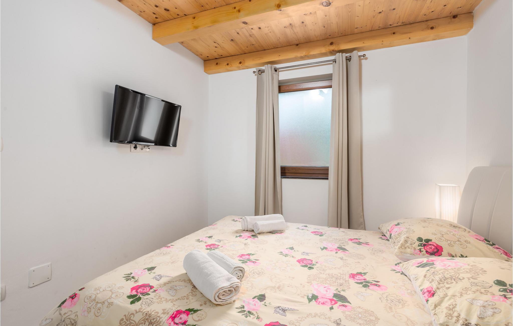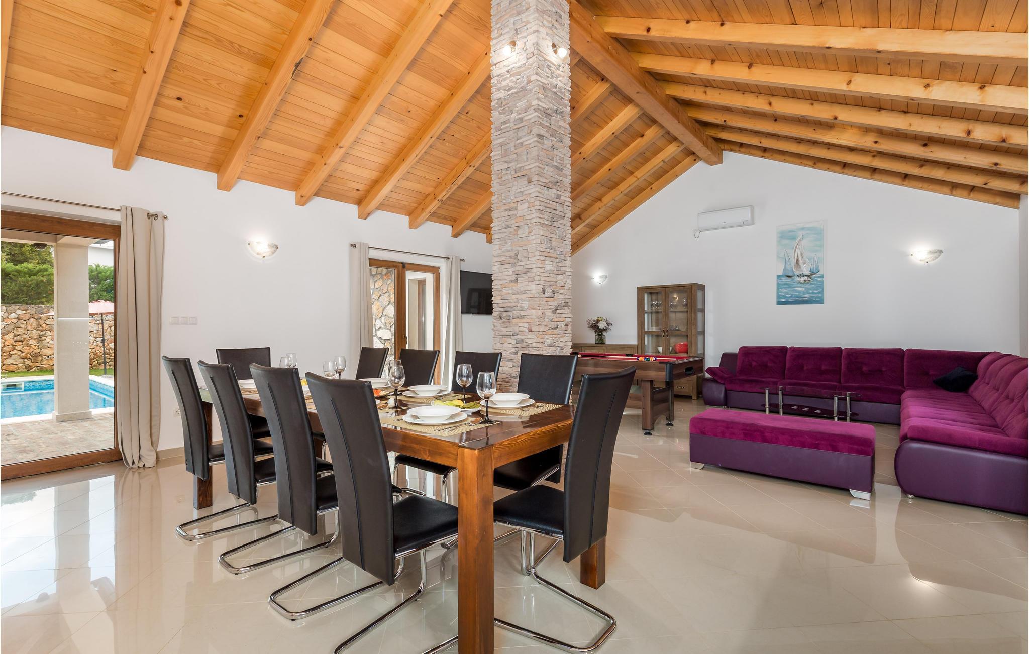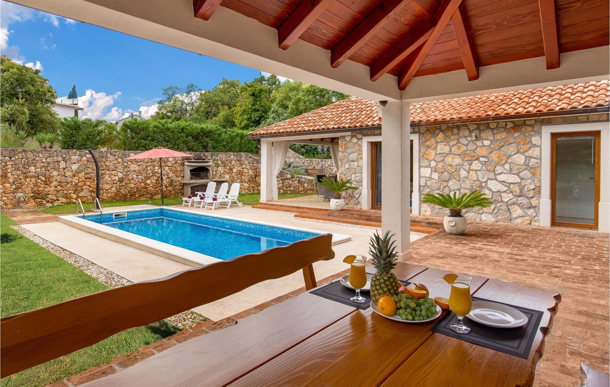 I nærheden af de populære ferieområder omkring byen Krk og Malinska, i en lille landsby Gostinjac, venter der jer et dejligt feriehus, med en kombination af moderne og traditionel indretning. Det er perfekt for naturelskere med dens smukke grønne have og udsigten til øens rige, varierede landskab. Den forfriskende pool bliver jeres naturlige opholdssted på de varme dage, og børnene kan lege uforstyrret på havens legeredskaber. Huset fordeler sig over en stueetage med hems, hvor væggene skråner fra 60cm fra gulvet. Nyd solnedgangen fra den overdækkede terrasse og den kølige brise fra havet til et glas hvidvin. Med bil når I hurtigt ned til øens mange uforstyrrede strande, hvor I endda kan vælge mellem sand, grus og klipper. Hen over sommeren udfolder der sig et omfattende program af arrangementer på øen og I kan gøre brug af de mange sportslige aktiviteter som øen har at byde på - både til vands og på land. For gourmet'en findes et rigt udvalg af lokale vine og specialiteter som er værd at gå på opdagelse i.