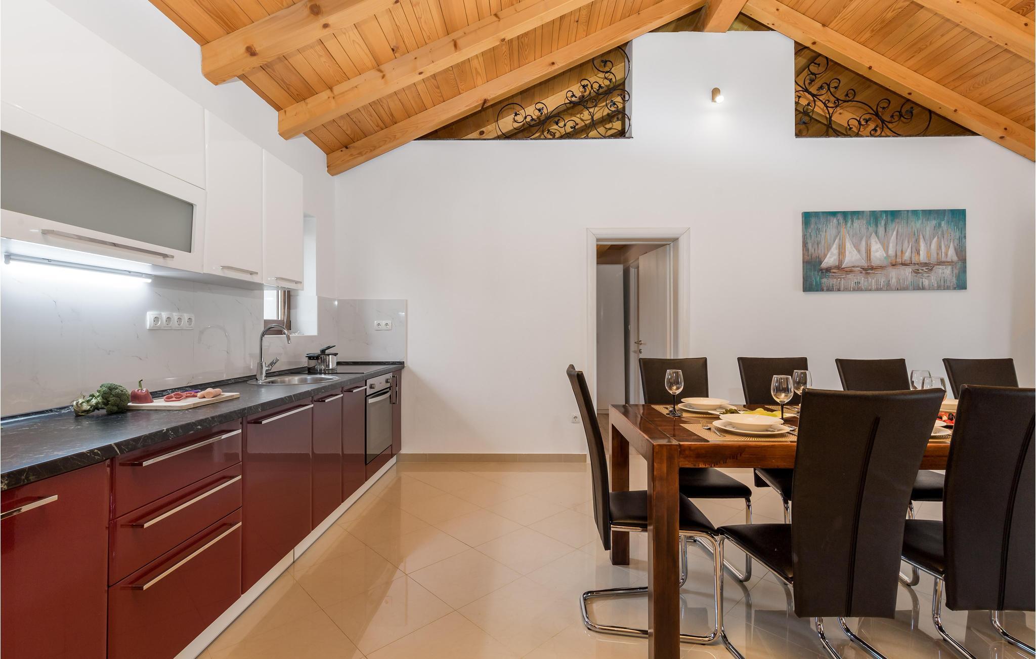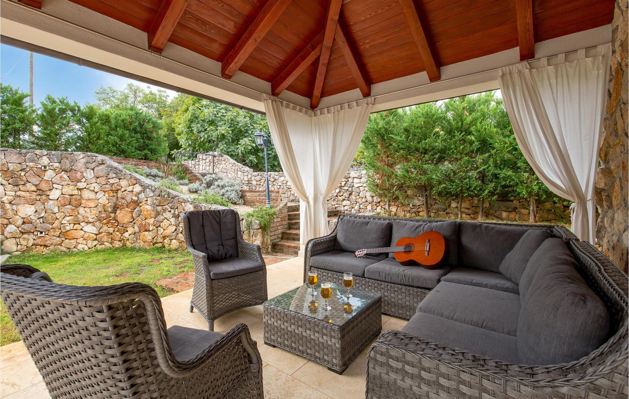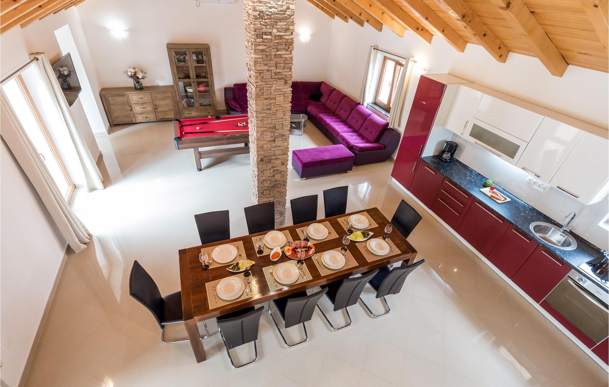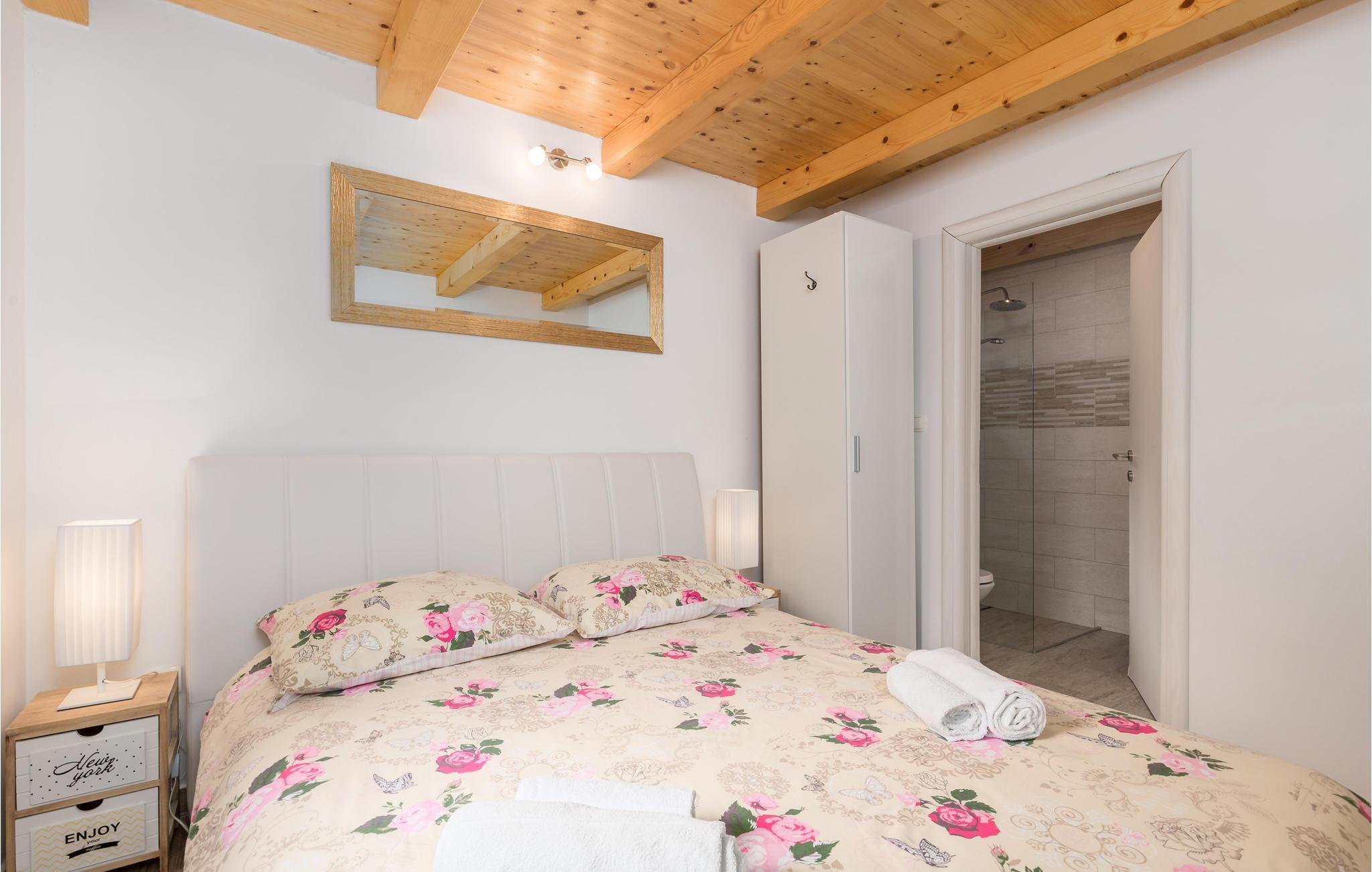 I nærheden af de populære ferieområder omkring byen Krk og Malinska, i en lille landsby Gostinjac, venter der jer et dejligt feriehus, med en kombination af moderne og traditionel indretning. Det er perfekt for naturelskere med dens smukke grønne have og udsigten til øens rige, varierede landskab. Den forfriskende pool bliver jeres naturlige opholdssted på de varme dage, og børnene kan lege uforstyrret på havens legeredskaber. Huset fordeler sig over en stueetage med hems, hvor væggene skråner fra 60cm fra gulvet. Nyd solnedgangen fra den overdækkede terrasse og den kølige brise fra havet til et glas hvidvin. Med bil når I hurtigt ned til øens mange uforstyrrede strande, hvor I endda kan vælge mellem sand, grus og klipper. Hen over sommeren udfolder der sig et omfattende program af arrangementer på øen og I kan gøre brug af de mange sportslige aktiviteter som øen har at byde på - både til vands og på land. For gourmet'en findes et rigt udvalg af lokale vine og specialiteter som er værd at gå på opdagelse i.