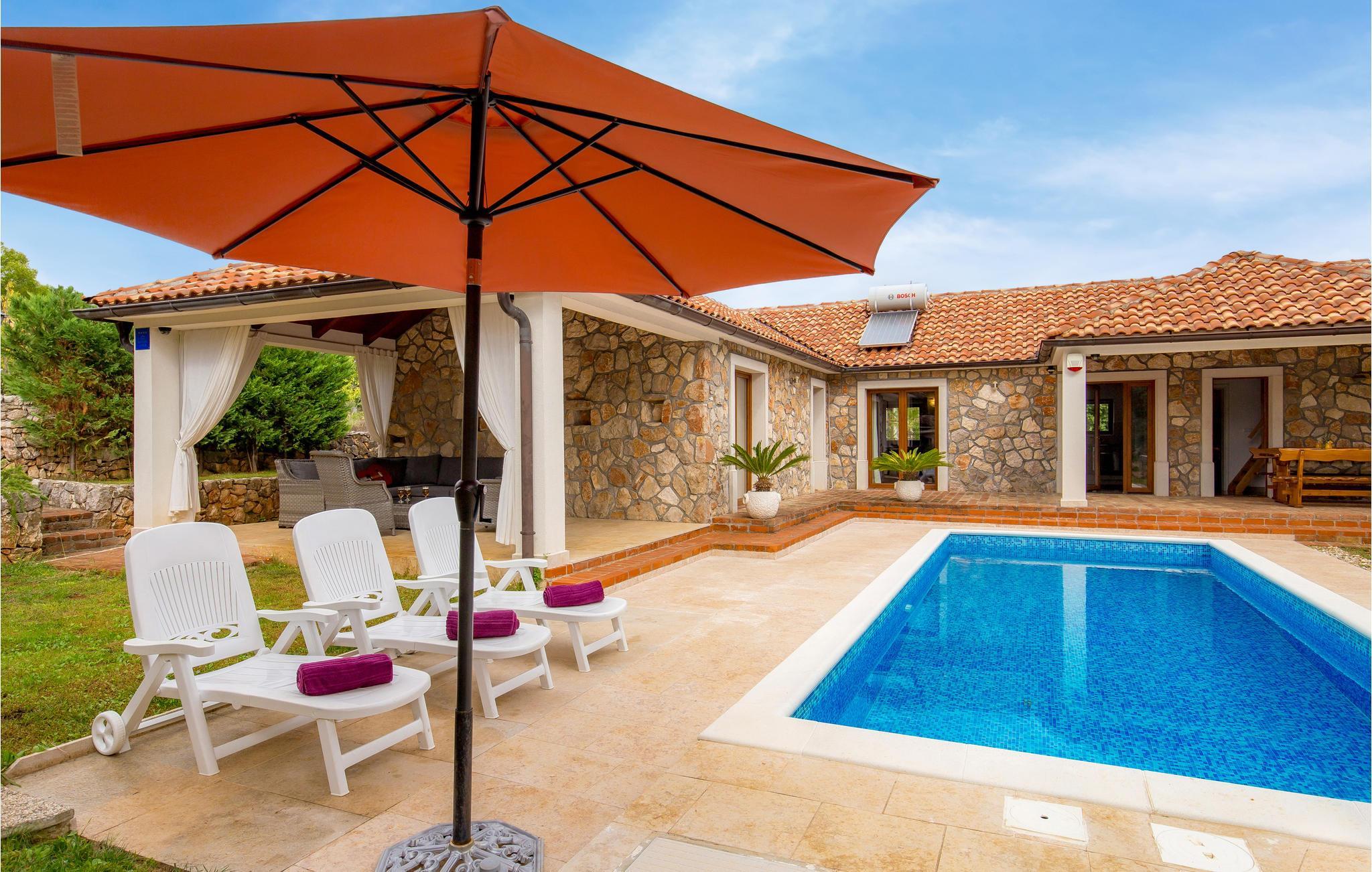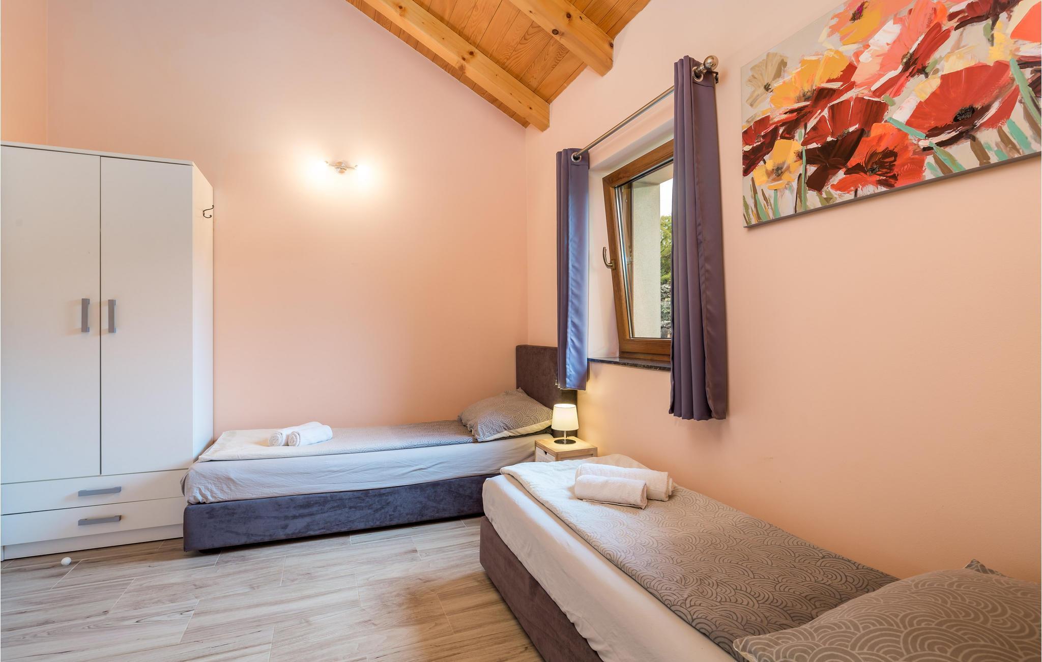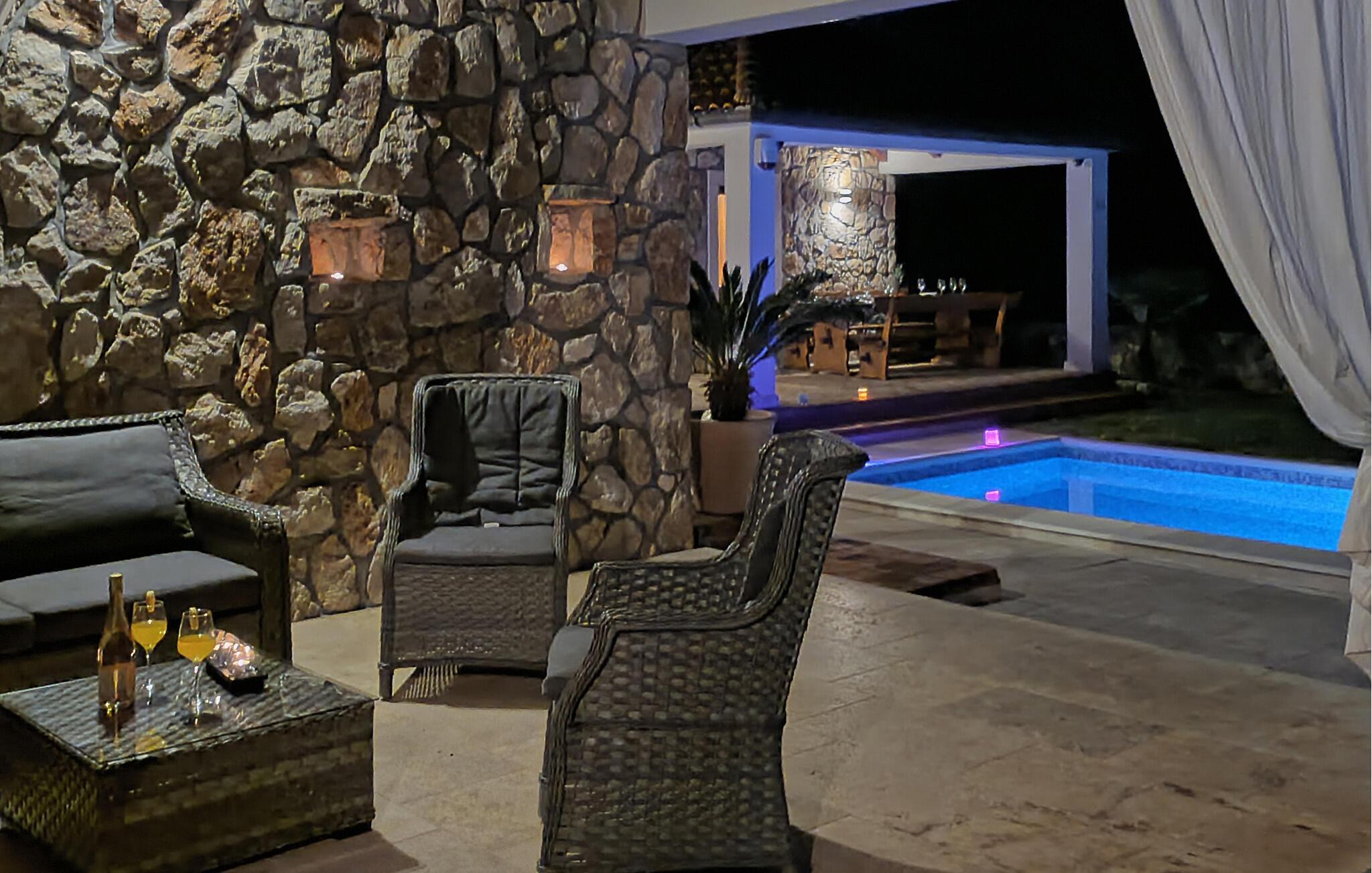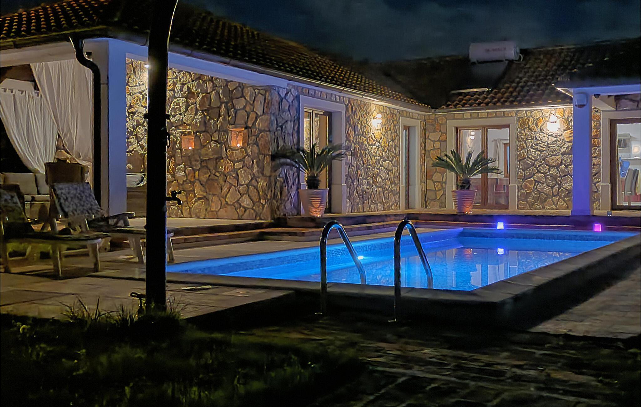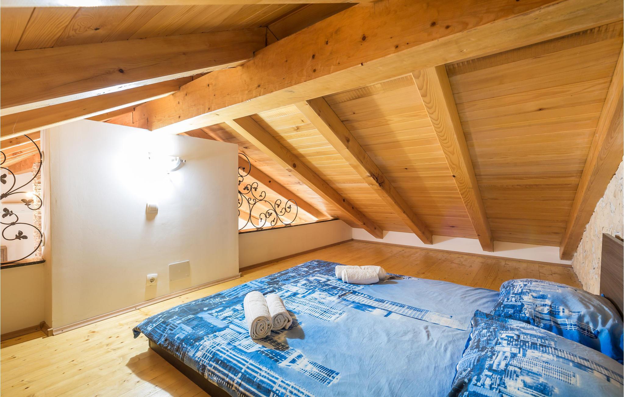 I nærheden af de populære ferieområder omkring byen Krk og Malinska, i en lille landsby Gostinjac, venter der jer et dejligt feriehus, med en kombination af moderne og traditionel indretning. Det er perfekt for naturelskere med dens smukke grønne have og udsigten til øens rige, varierede landskab. Den forfriskende pool bliver jeres naturlige opholdssted på de varme dage, og børnene kan lege uforstyrret på havens legeredskaber. Huset fordeler sig over en stueetage med hems, hvor væggene skråner fra 60cm fra gulvet. Nyd solnedgangen fra den overdækkede terrasse og den kølige brise fra havet til et glas hvidvin. Med bil når I hurtigt ned til øens mange uforstyrrede strande, hvor I endda kan vælge mellem sand, grus og klipper. Hen over sommeren udfolder der sig et omfattende program af arrangementer på øen og I kan gøre brug af de mange sportslige aktiviteter som øen har at byde på - både til vands og på land. For gourmet'en findes et rigt udvalg af lokale vine og specialiteter som er værd at gå på opdagelse i.