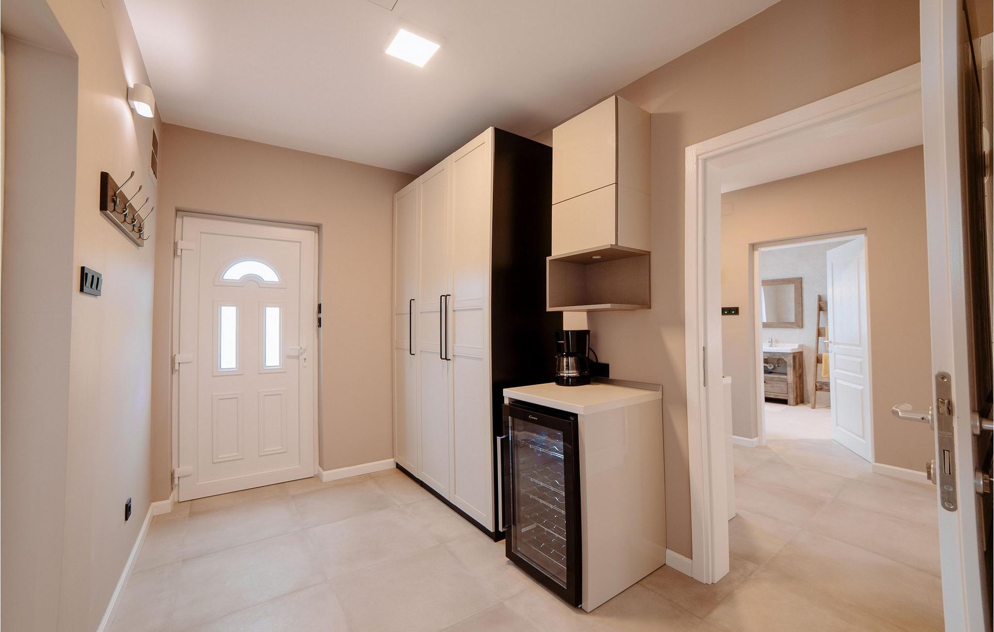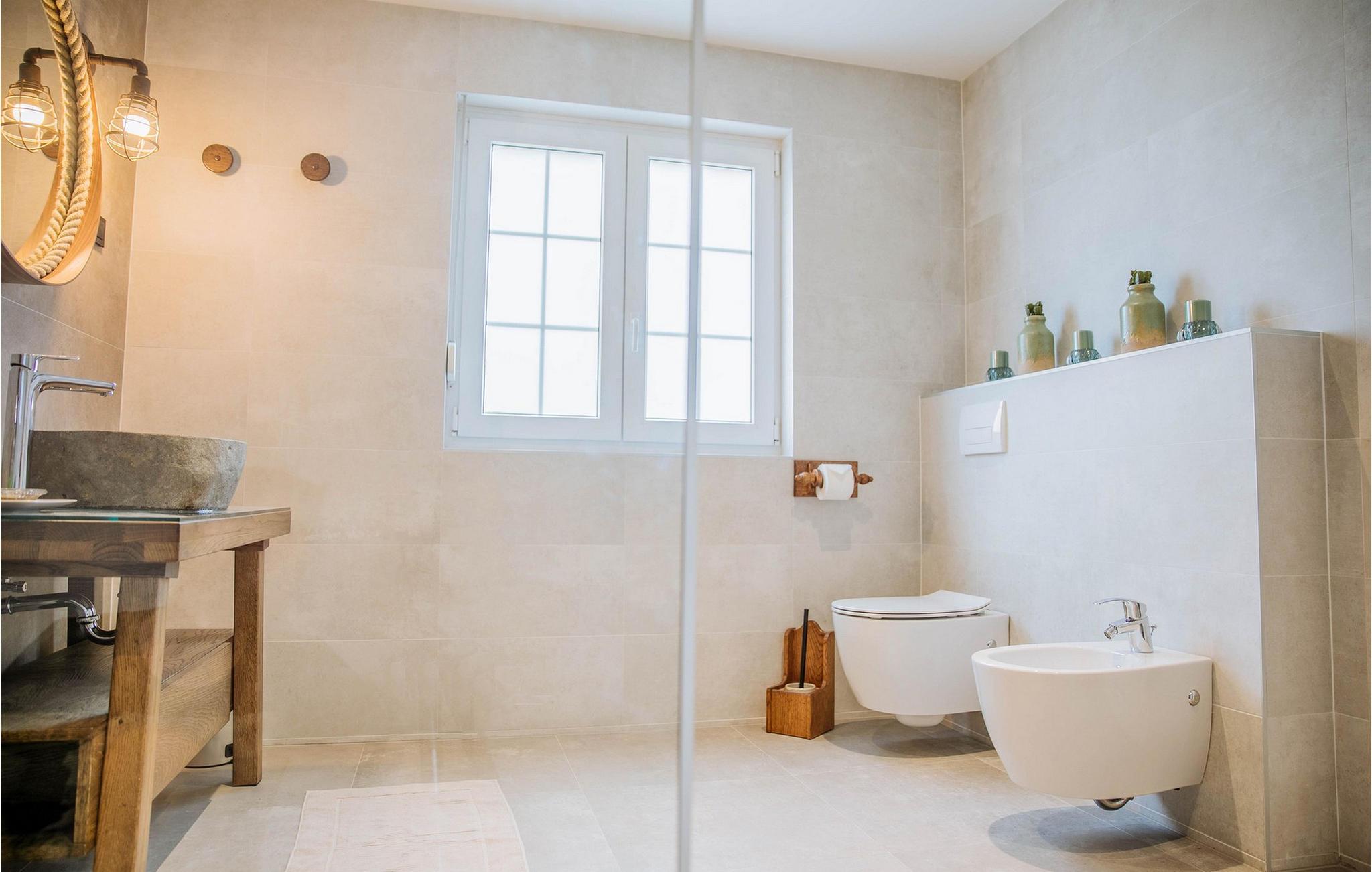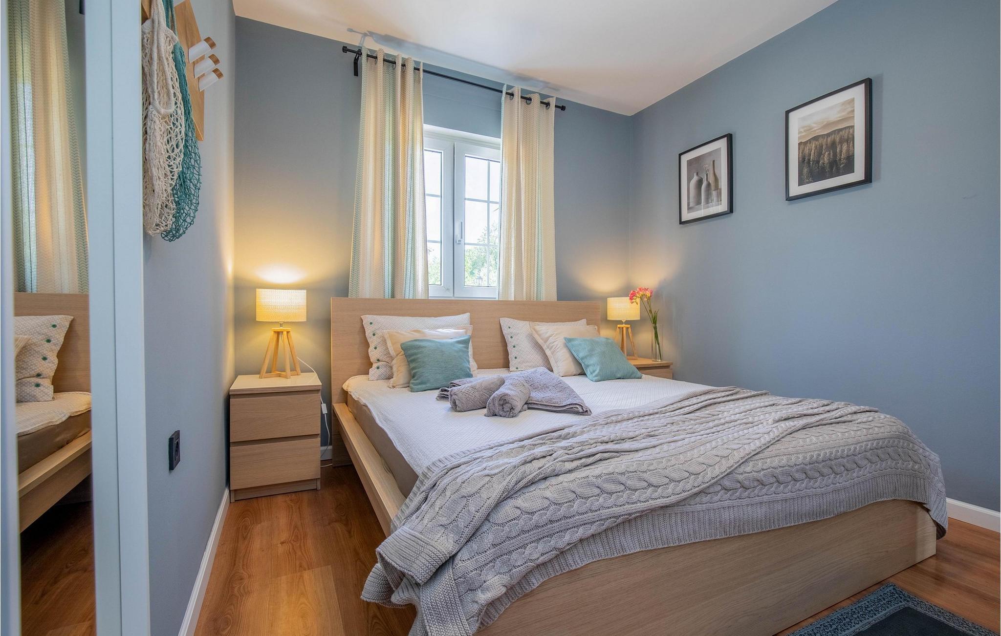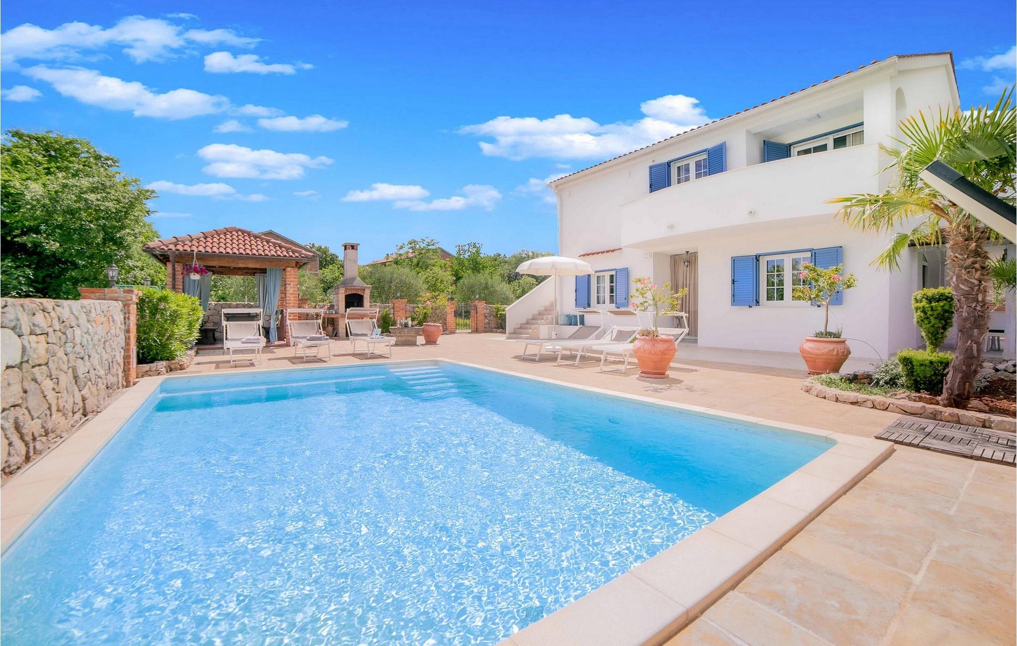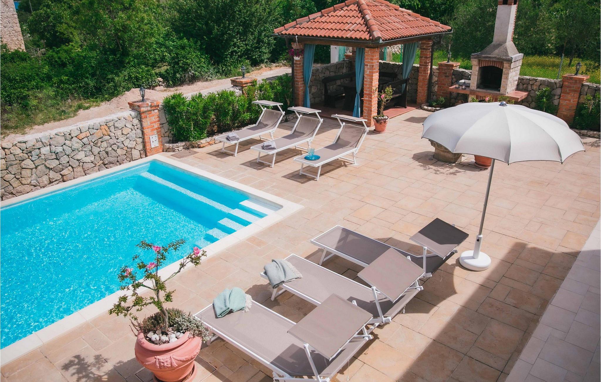 Den charmerende Villa Mamma Mia ligger i den romantiske landsby Klimno på den største kroatiske ø Krk. Ø-liv, glitrende varmt hav, fortryllende smukke bugter, behageligt klima og duftende middelhavsvegetation gør Krk til et ideelt feriemål lige ud af et eventyr. Den smukke Villa Mamma Mia sover 8 gæster i fire hyggeligt indrettede dobbeltværelser, alle placeret på villaens øverste etage. Villaen har desuden 3 luksuriøse badeværelser med brusekabine. Stueetagen består af et fuldt udstyret køkken med spiseplads og en stue, hvor du kan slappe af ved siden af et smart-tv og en PlayStation-konsol. Interiøret i Villa Mamma Mia emmer af varme på grund af de nøje udvalgte detaljer, mens pastelfarvede vægge giver interiøret en perfekt portion charme. Her føler enhver gæst sig lige så godt tilpas som i deres eget hjem. Den fuldt indhegnede have på 600 m² har en smuk pool (4,5 x 7 m), hvor gæsterne kan tage en forfriskende dukkert på varme sommerdage og solbade på de komfortable liggestole rundt omkring. Det grønne udendørsområde har også en kulgrill, hvor du kan tilberede lækre friske måltider til venner og familie. Villaen byder også på 3 private parkeringspladser. Tilbring din ferie i Klimno på øen Krk, et sted kendt for sit ekstremt rige vin og gastronomiske tilbud. Du kan nå den smukke ø Krk til lands og til vands og nyde dens rige vegetation, vandturisme, forskellige sportsaktiviteter og mudder kendt for sine helbredende egenskaber. Øens rige historie og dynamiske tilbud glæder besøgende år efter år. Som en ekstra bonus har Krk også sin egen lufthavn, som gør det meget nemmere at komme til og fra drømmeøen. Vælg Villa Mamma Mia i Klimno til din næste ferie og fordyb dig i øens livsstil. *For sæsonen 2023 vil villaen have en opvarmet pool.