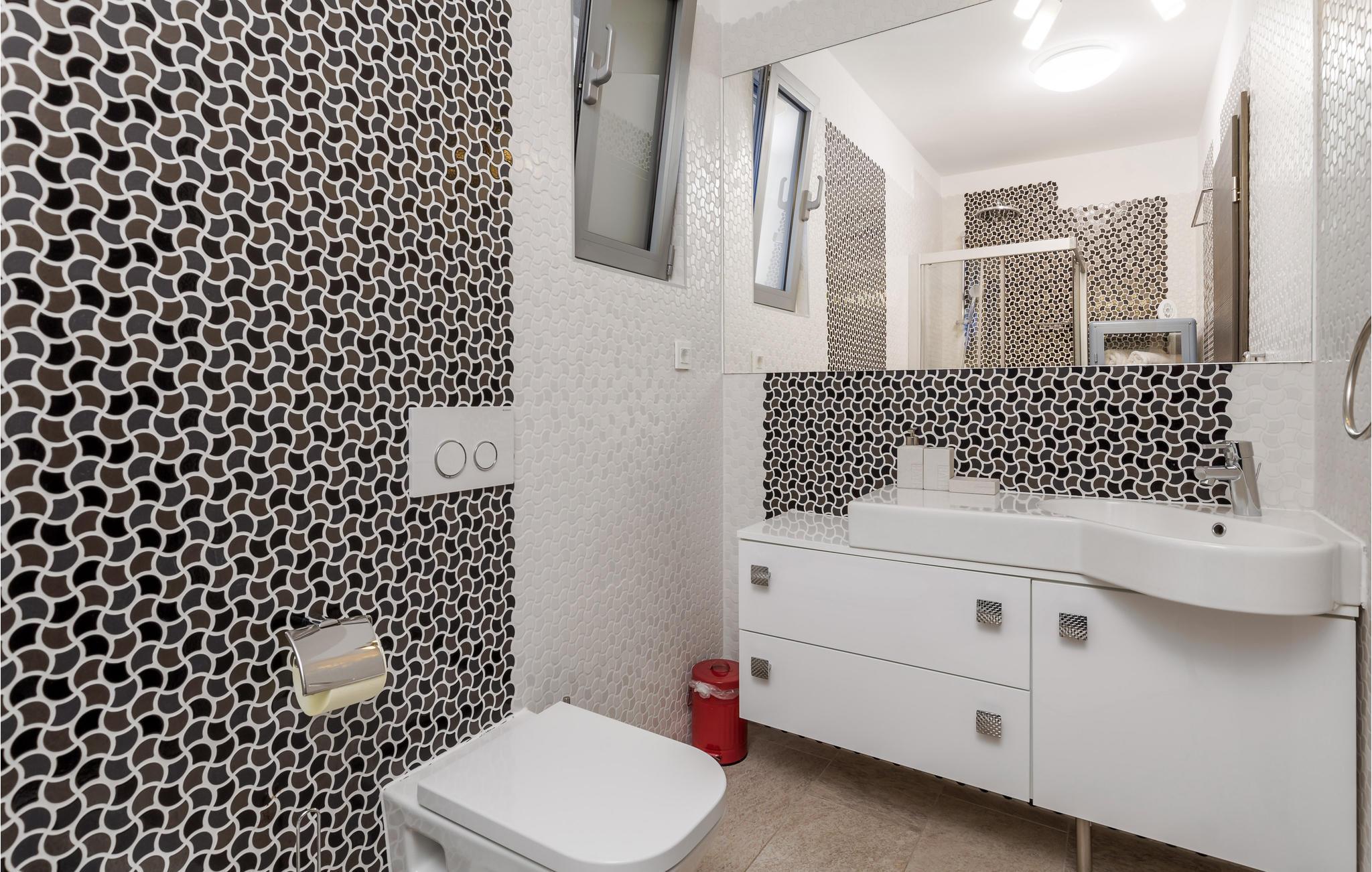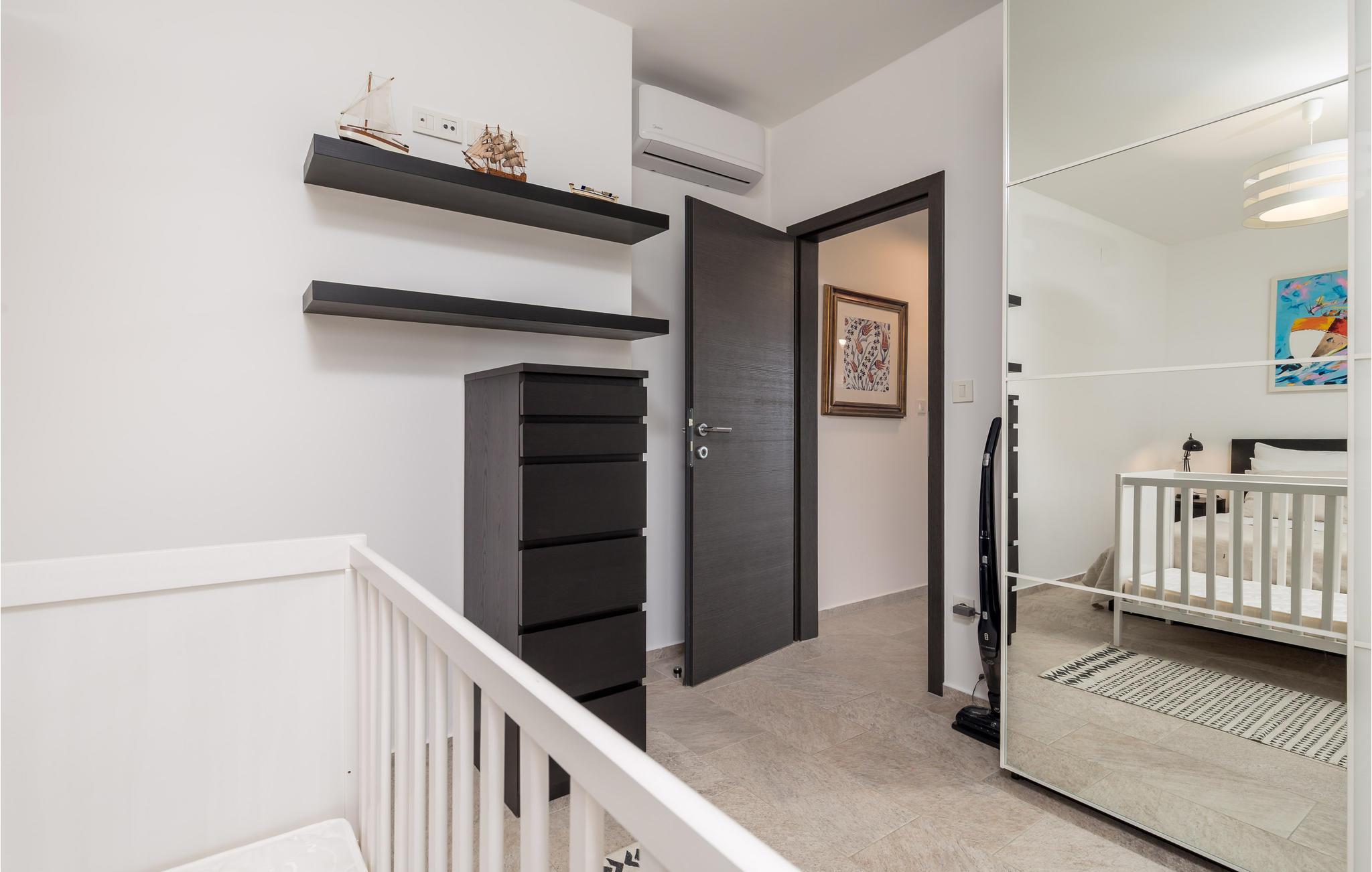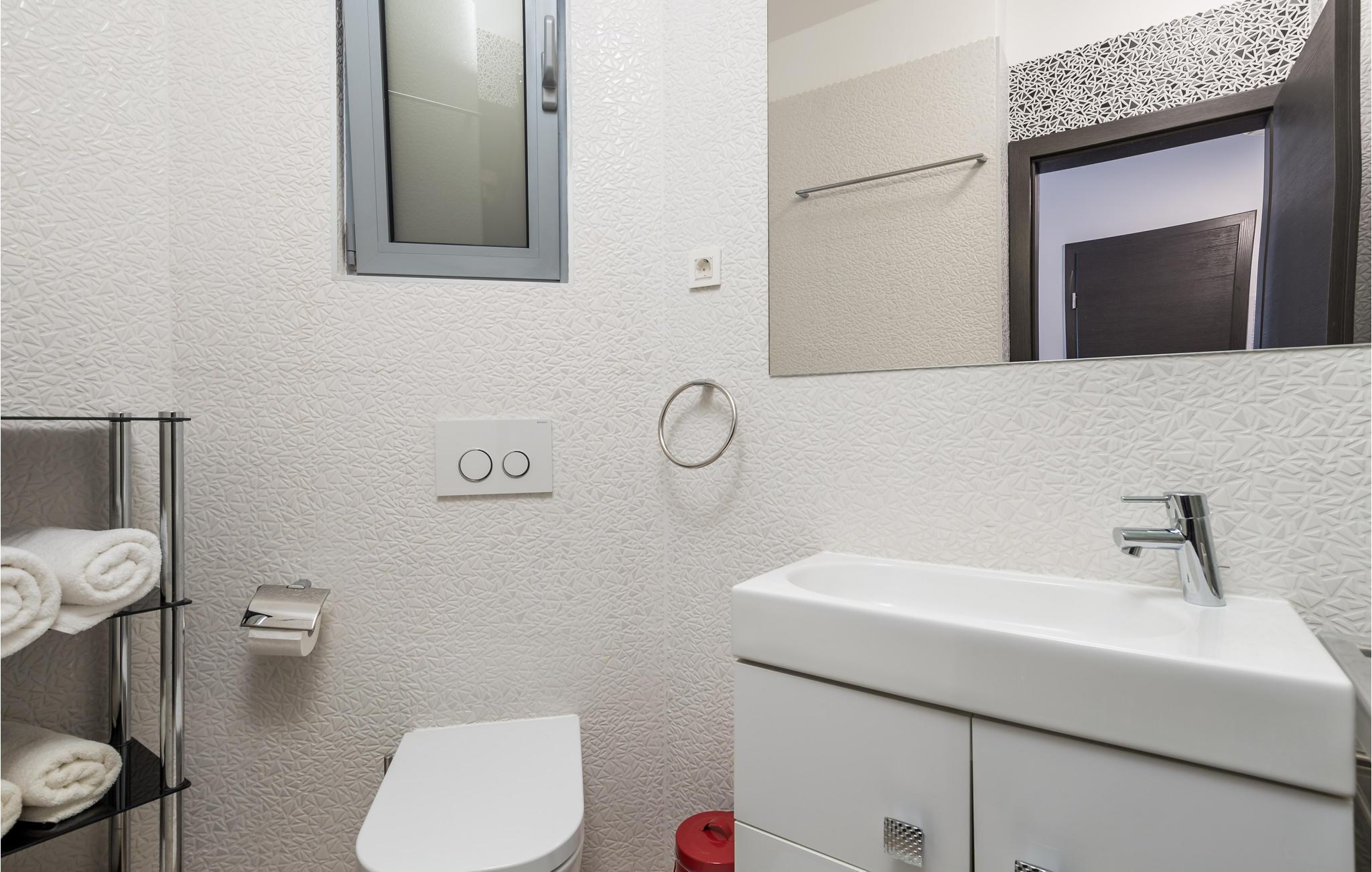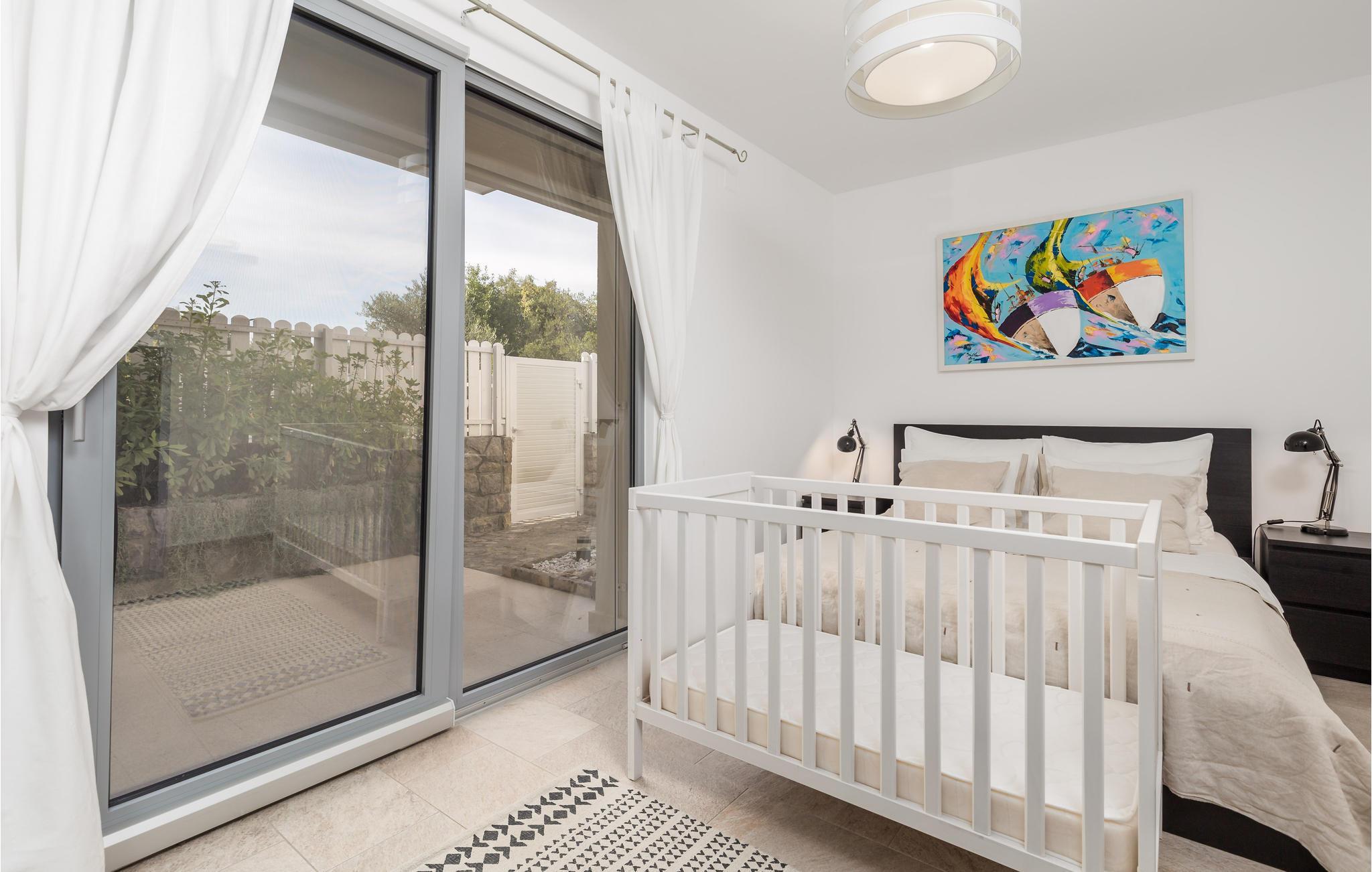 Dette skønne feriehus ligger i feriebyen Krk, på øen af samme navn, der er en del af Kvarner-øgruppen. Huset ligger ovenfor den historiske by Krk, med en skøn udsigt over havet. Husets indre er meget moderne, indrettet med interessante billeder og små fine detaljer. Lige foran stuen er der en overdækket terrasse med en pool der kan opvarmes efter ønske, en plæne til solbad og en grill. I huset er der klimaanlæg og gulvvarme og det rummer i stueplan et stort soveværelse, hyggelig stue med køkken og et badeværelse, mens der er to yderligere soveværelse med badeværelser en suite på første sal. Den interessante ø Krk er fuld af kulturhistorie som I kan se eksempler på overalt. Nyd badelivet på de skønne strande, besøg det berømte Vrbnik med talrige vingodser og den skønne ø Košljun og forkæl jer selv med det fremragende mediterrane køkken og de førsteklasses lokale vine.