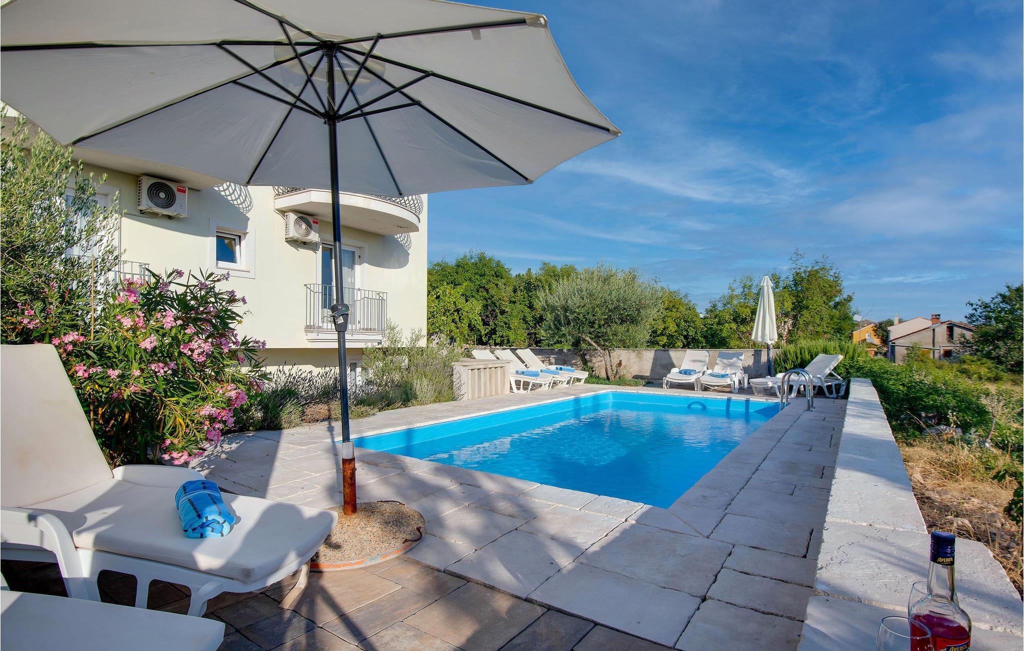 I den lille by Linardici, på øen Krk, ligger dette dobbelthus, hvis ene halvdel er indrettet til en bekvem feriebolig. Den er opdelt i tre lejligheder, der alle har indgang udefra – perfekt til tre familier eller en gruppe venner, der gerne vil holde ferie sammen men bo hver for sig. I kan slappe af sammen i aktivitetsrummet med billardbord, dart og bordfodbold. Tag en forfriskende svømmetur i den fælles pool på de varme dage. Vil I holde en dejlig afslappet ferie, i et langsomt tempo, omgivet af uberørt natur der spiller i blågrønne nuancer, så er den lille maleriske landsby Linardici som skabt for jer.