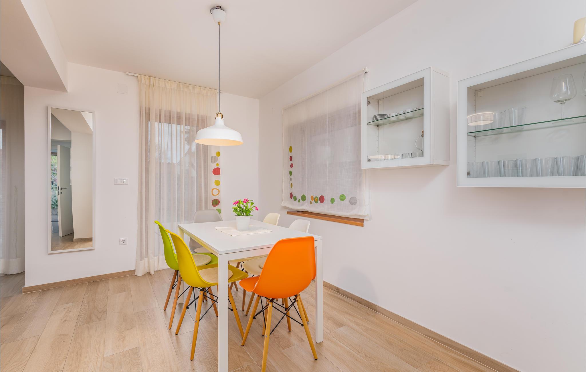 Det består af 2 separate boenheder, der er forbundet med en intern trappe. Dette gør huset ideelt til to familier, der ønsker at tilbringe deres ferie sammen uden at skulle ofre privatlivets fred. I nærheden er der smukke strande og det krystalklare hav, så vandhundene kan godt glæde sig.